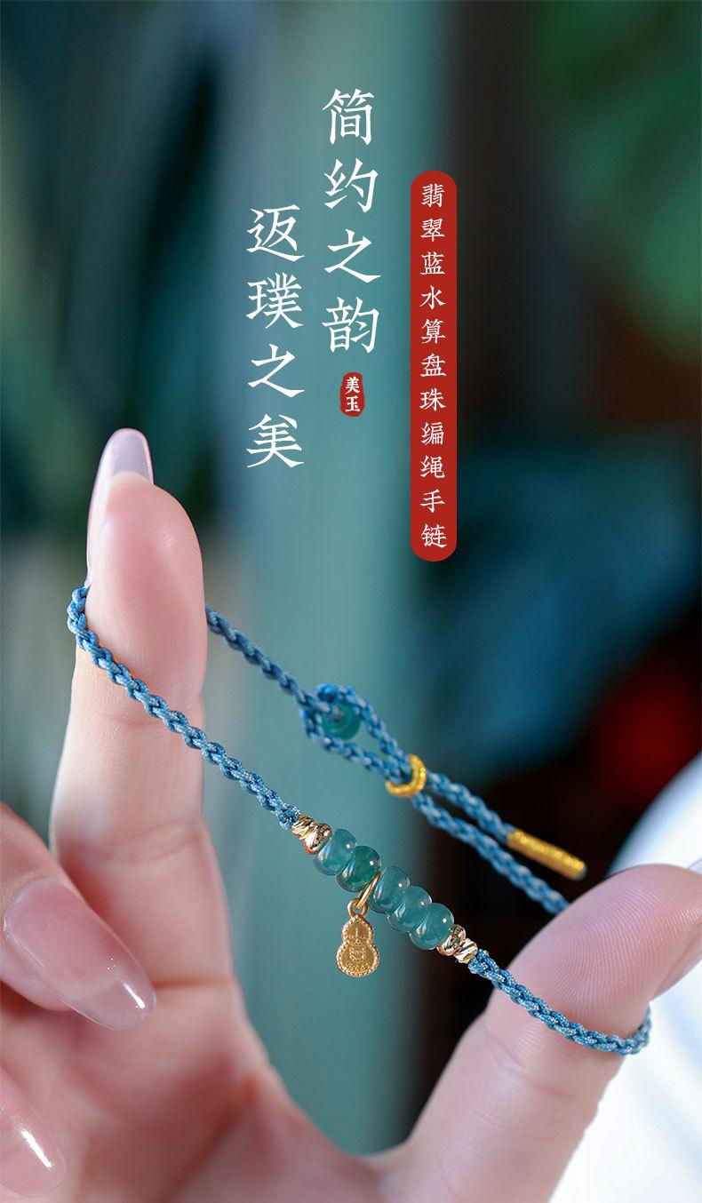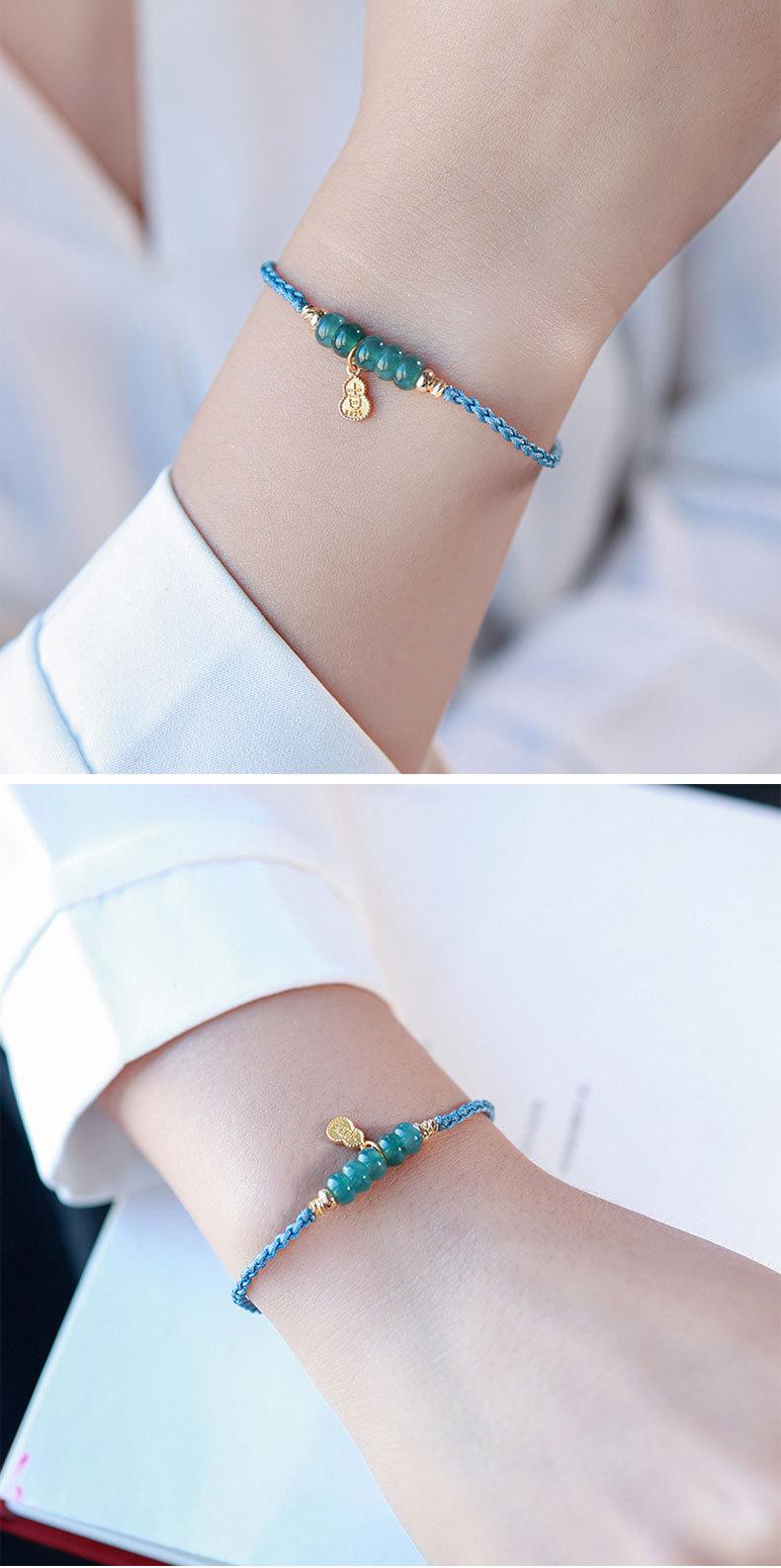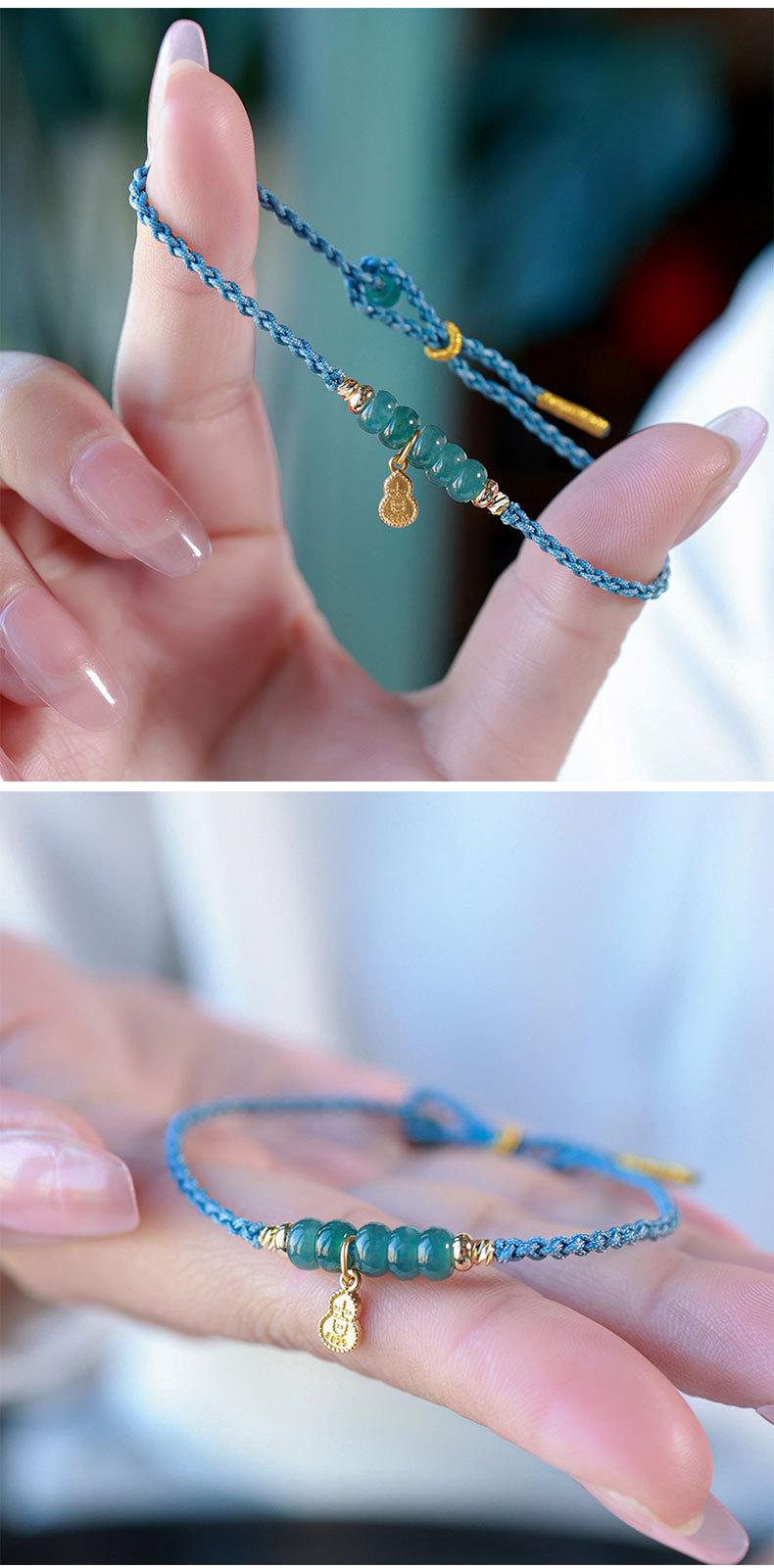 Pulsera de jade de agua azul natural fresca y dulce, pulsera retro china nueva, pulsera antigua de cuerda con cuentas de ábaco