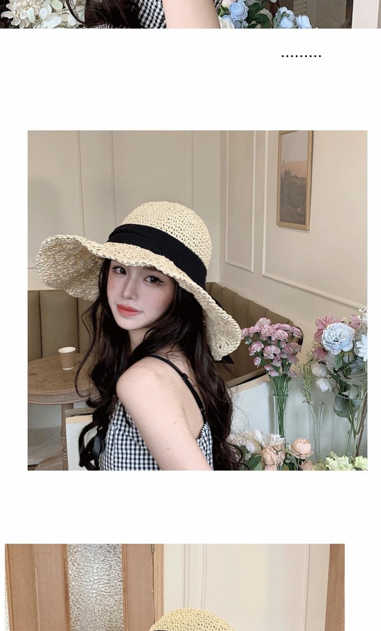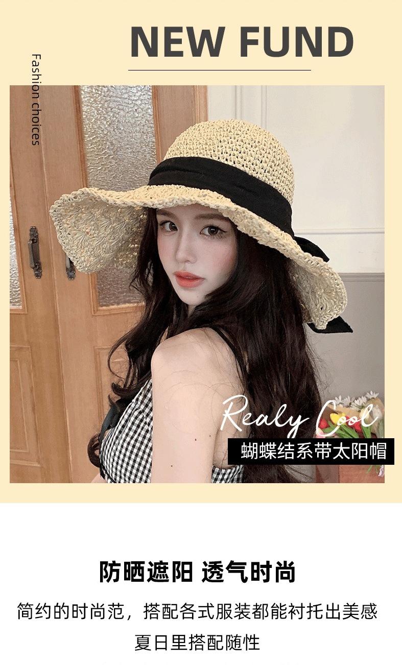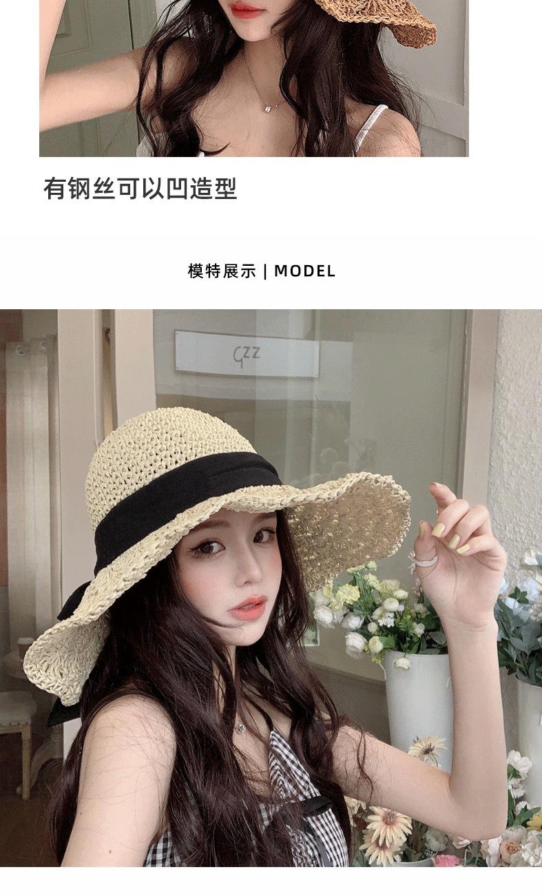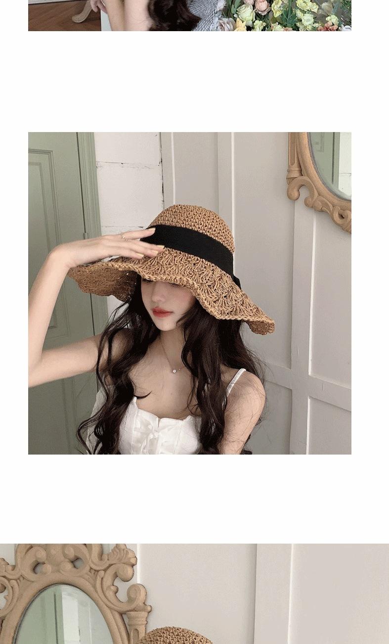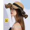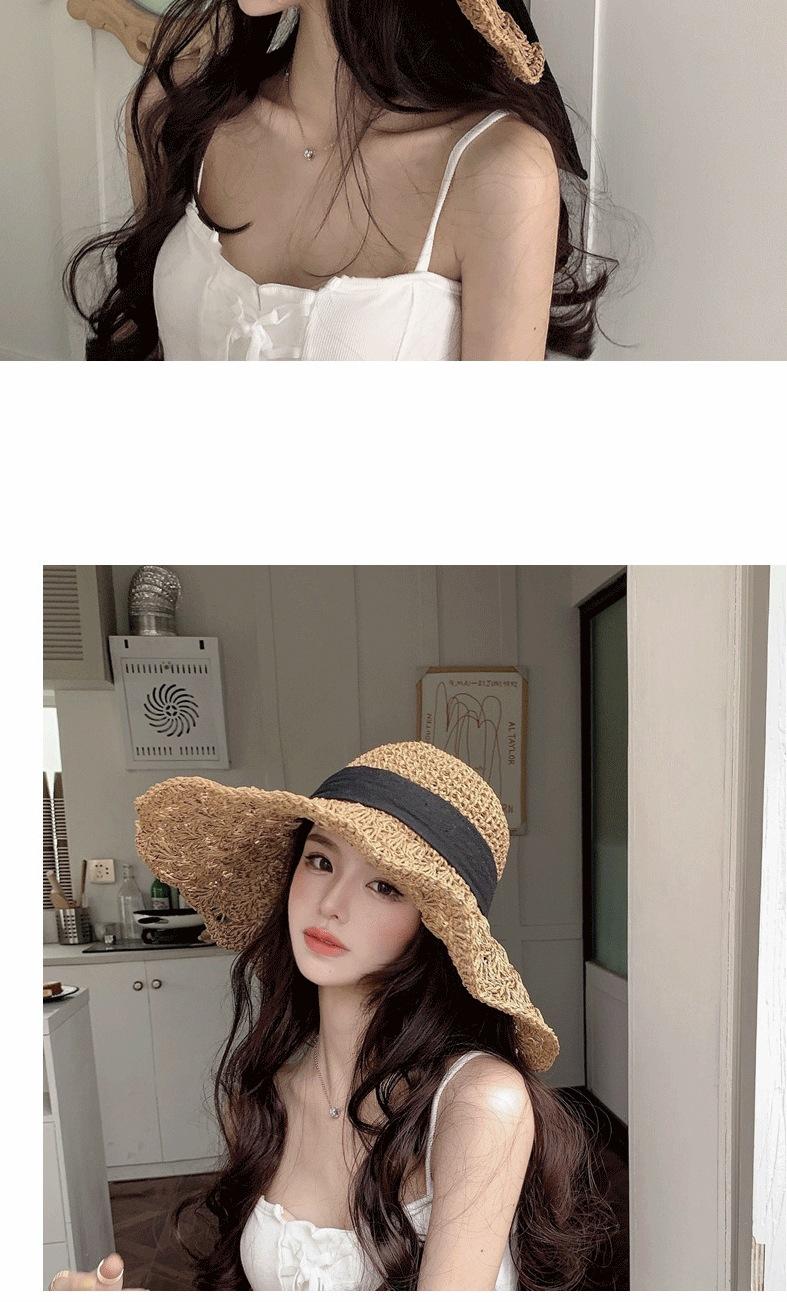 Sombrero de Paja Tejida de Nuevo Estilo para Mujer Verano Junto al Mar Ala Grande Sombrero de Playa Cabeza Grande Ondulado Vacaciones Sombrero Fresco Sombrero Protector Solar