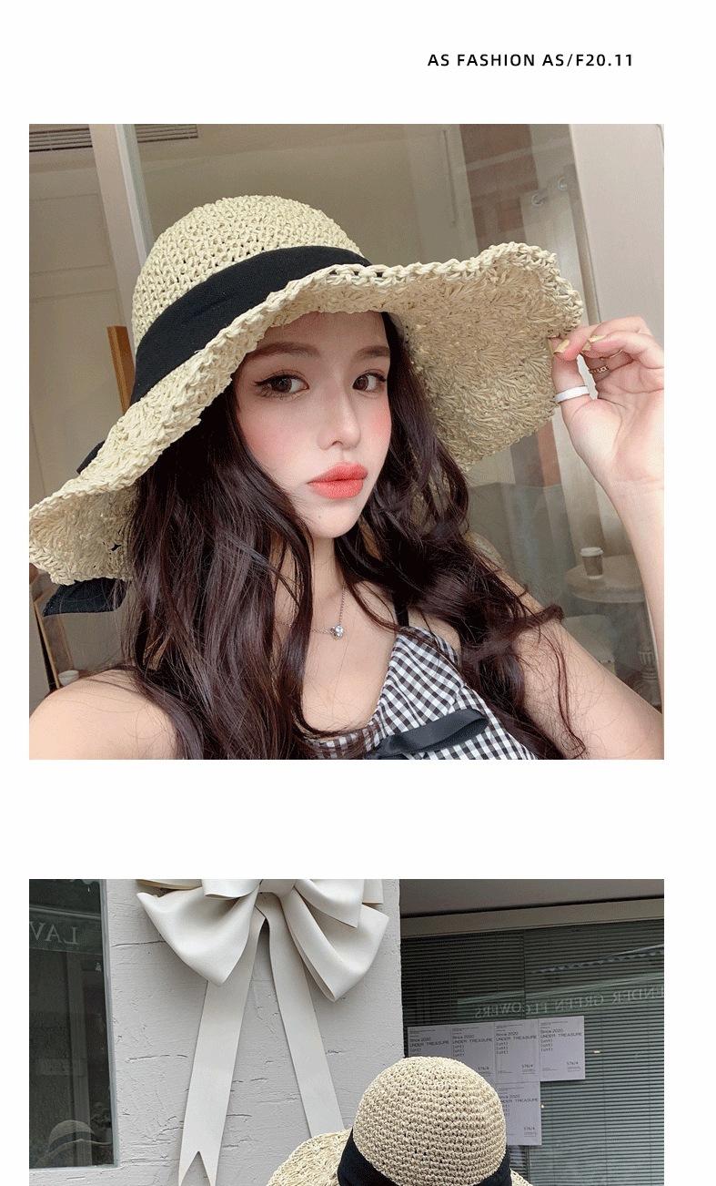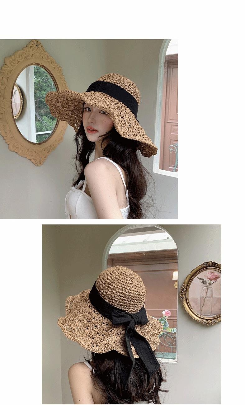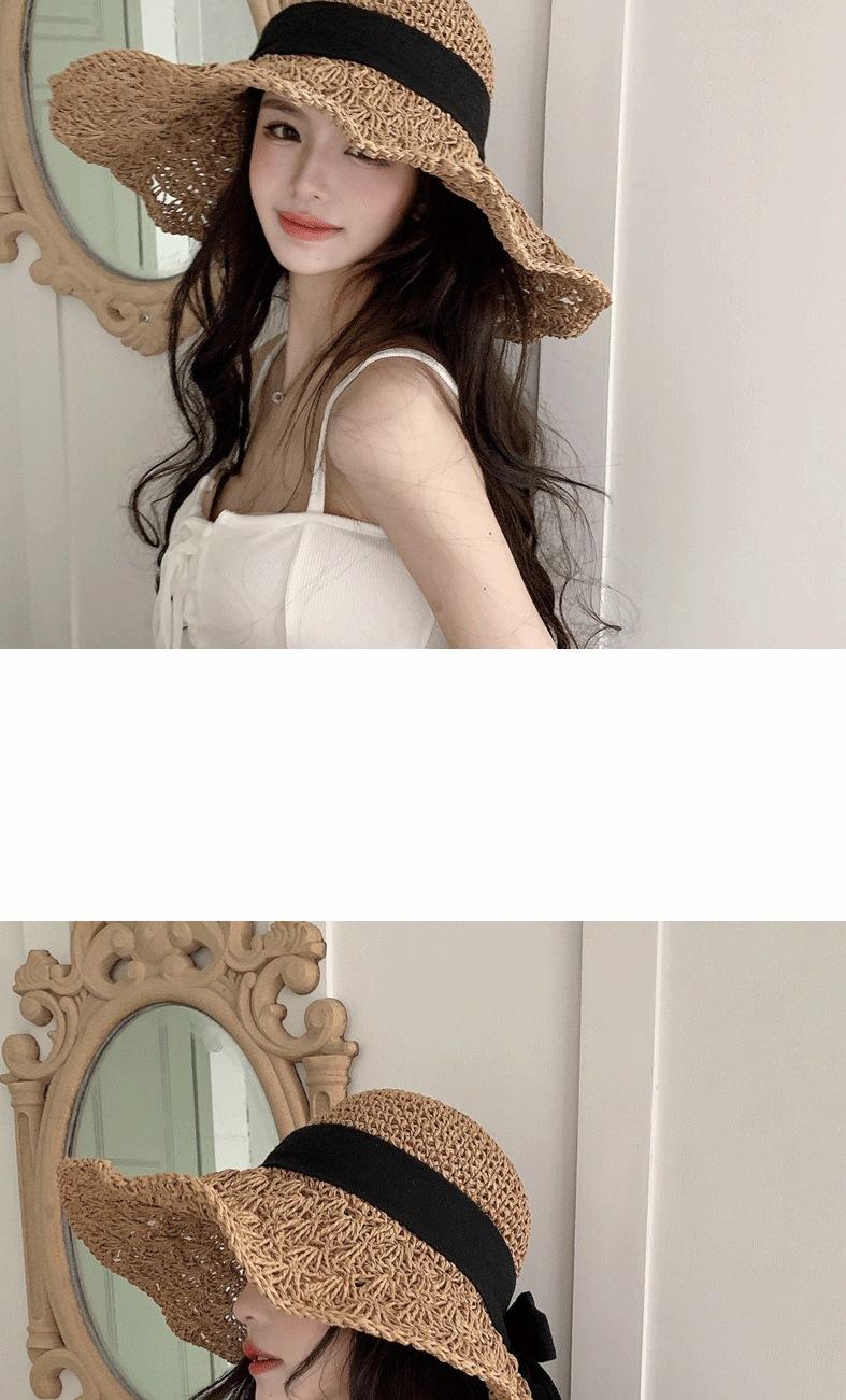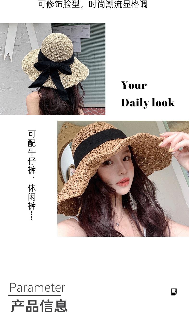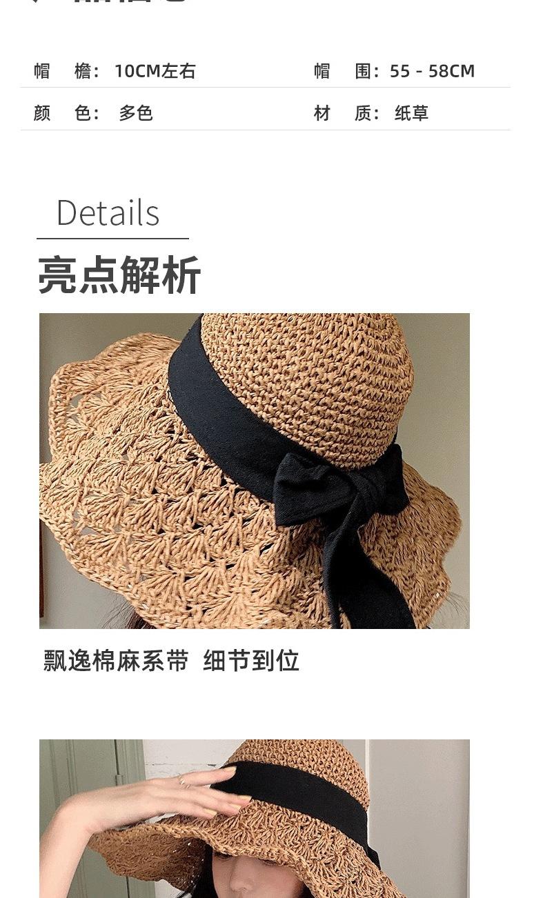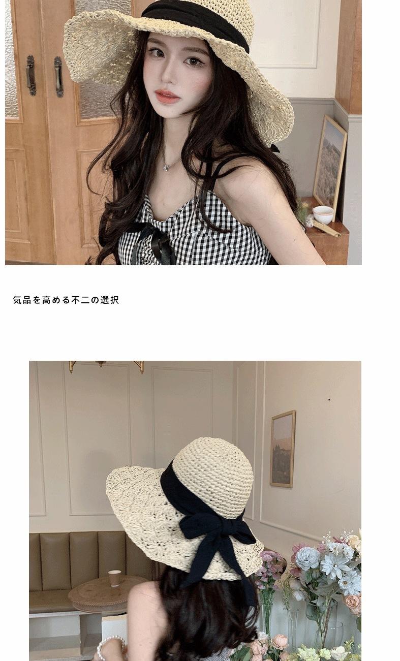 Sombrero de Paja Tejida de Nuevo Estilo para Mujer Verano Junto al Mar Ala Grande Sombrero de Playa Cabeza Grande Ondulado Vacaciones Sombrero Fresco Sombrero Protector Solar