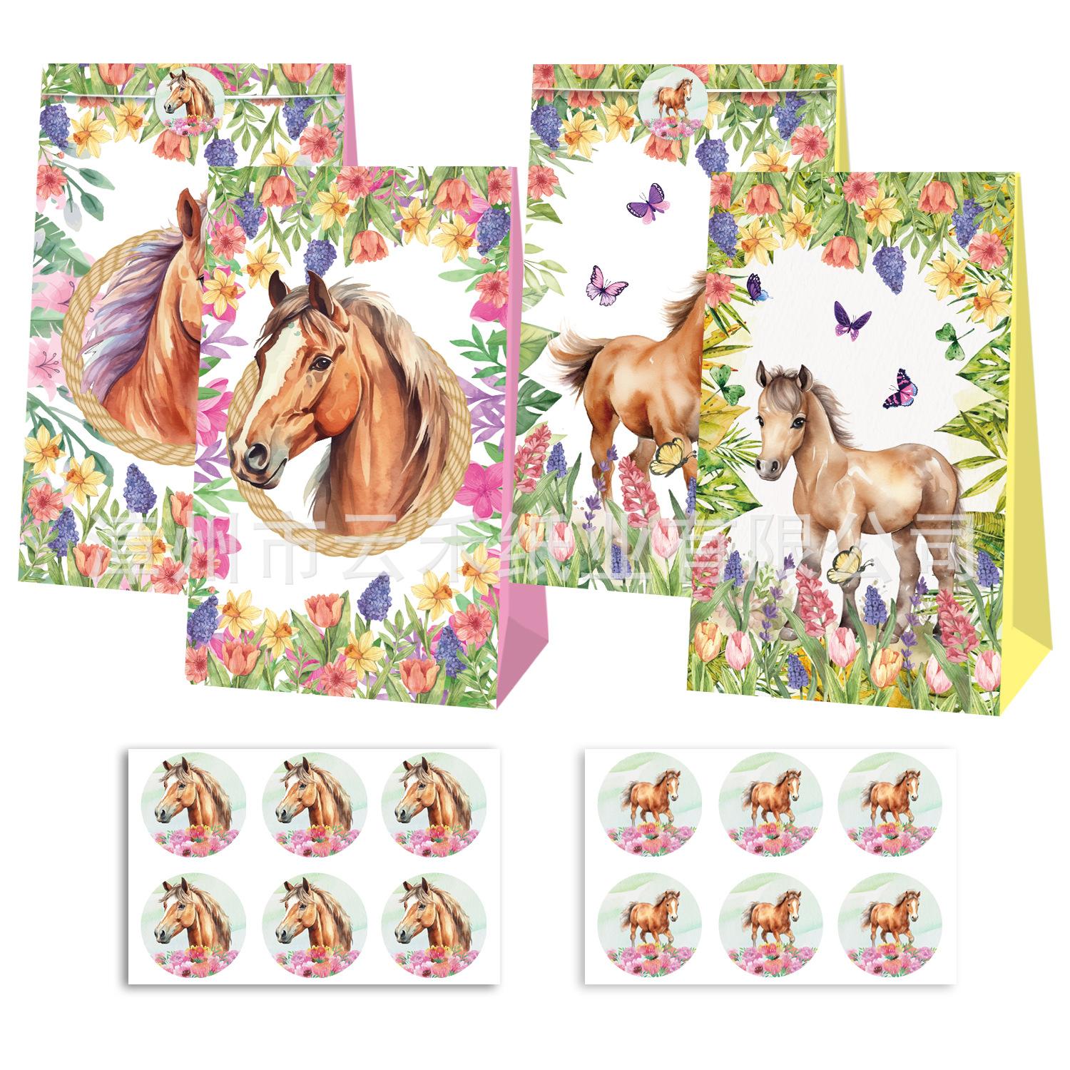 Bolsa de regalo de dulces con temática de caballos, original y popular, para fiestas de cumpleaños, decoración, bolsa de papel para palomitas de maíz