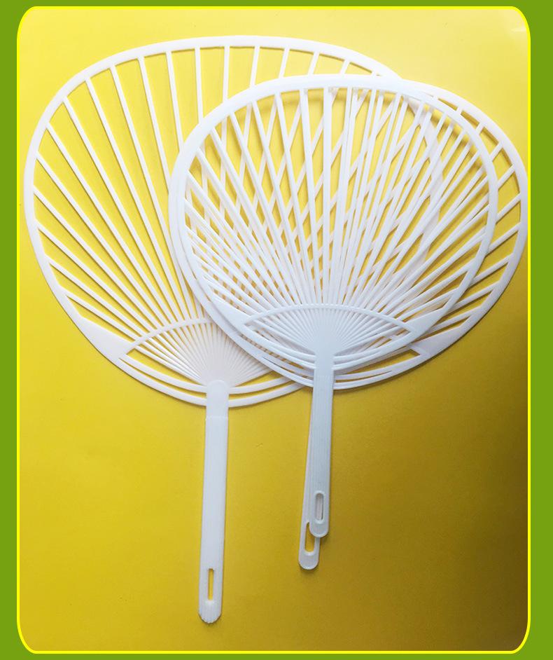 Abanico publicitario grande blanco nuevo material esqueleto redondo abanico con marco de hueso pegamento abanico personalizable plástico esqueleto