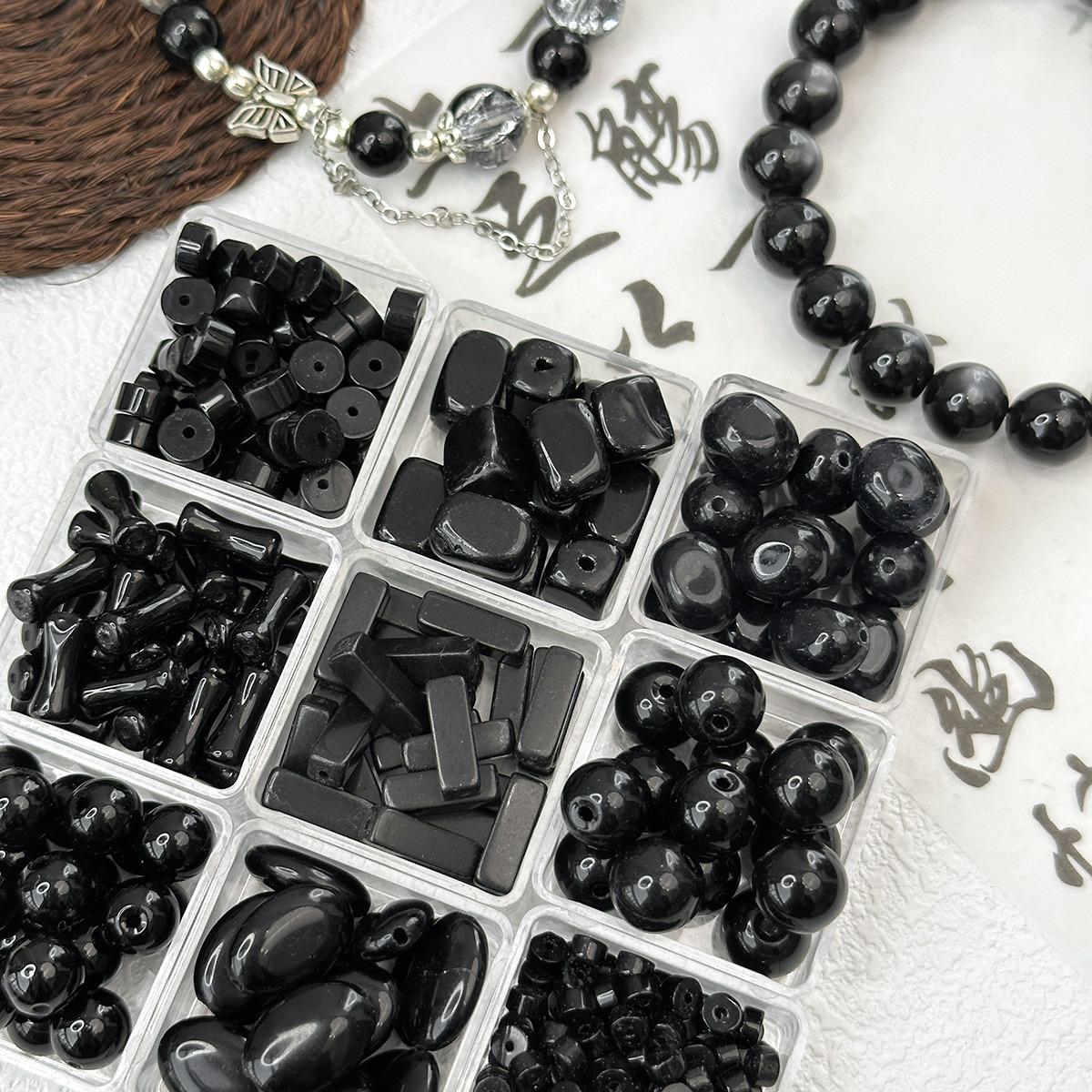 1#4mm black spinel (20 pieces), 3#Black round 4mm (10 pieces), 4#Black round 6mm (10 pieces), 5#Black round 8m...