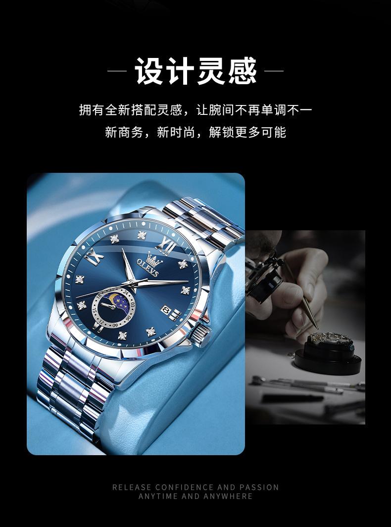 Nuevos relojes de moda para hombre de Oli, calendario de diamantes, fabricantes comerciales clásicos, relojes de cuarzo transfronterizos, relojes para hombre