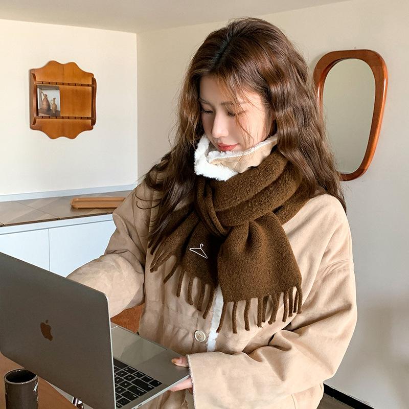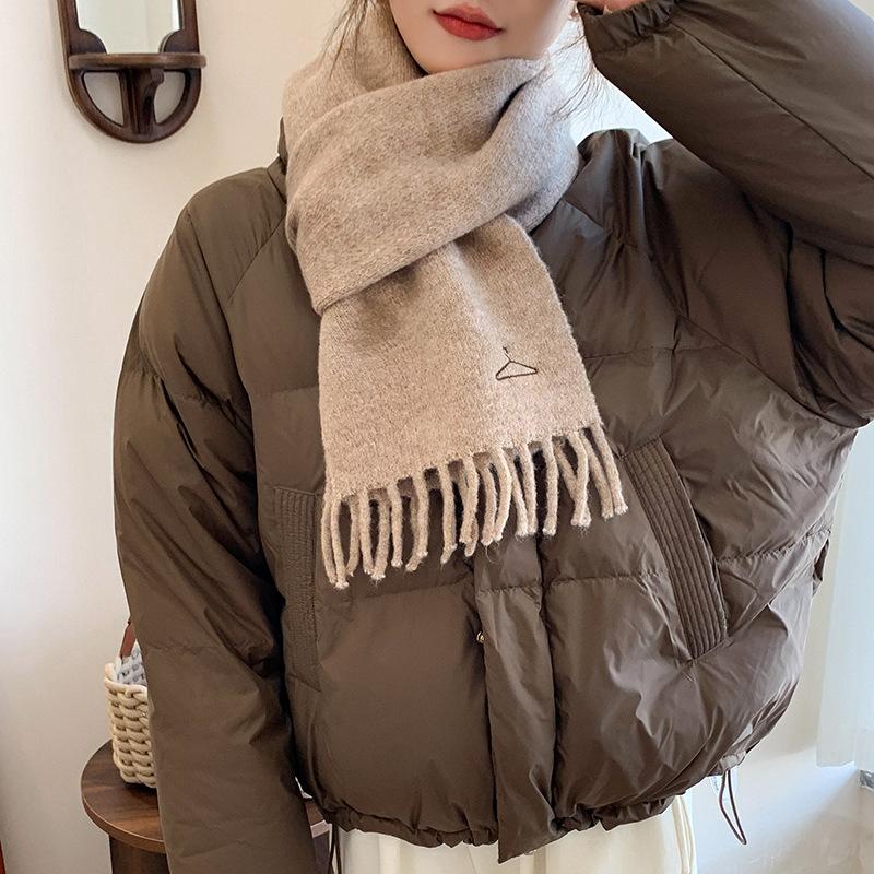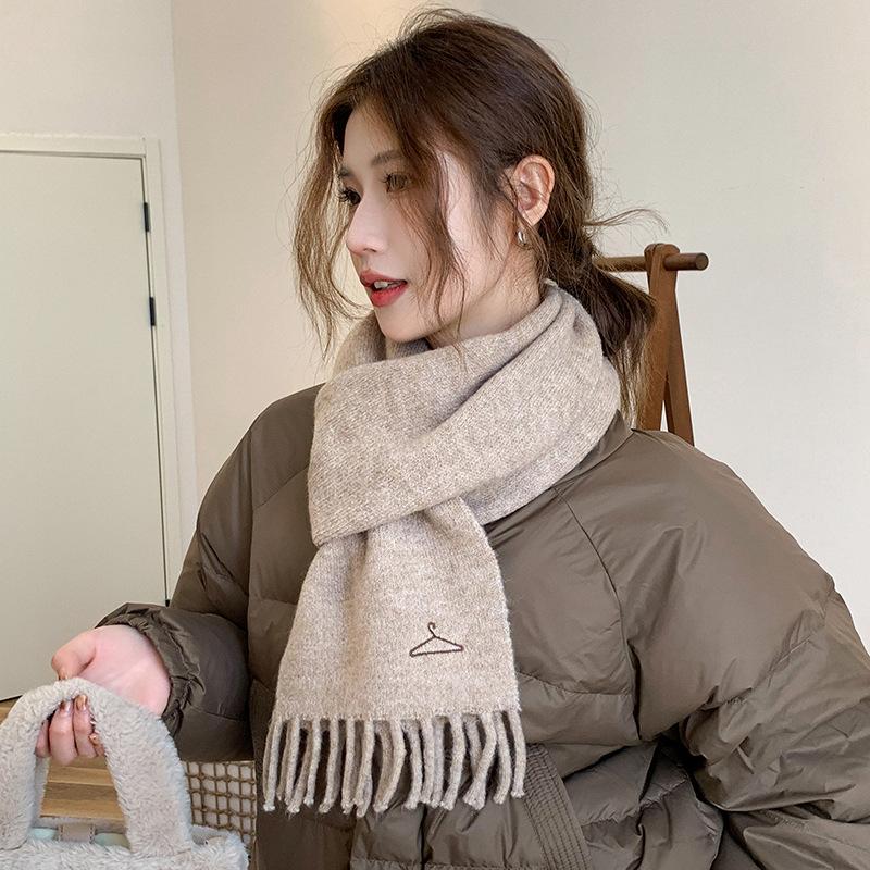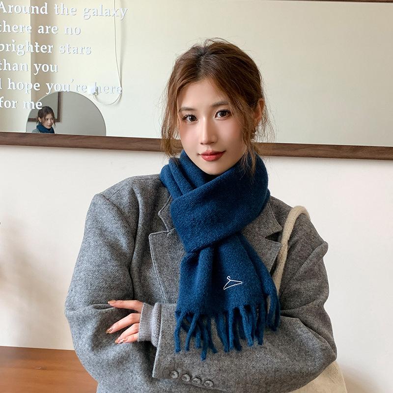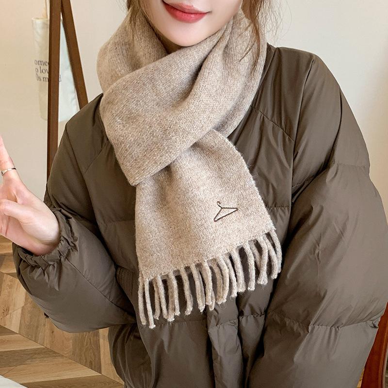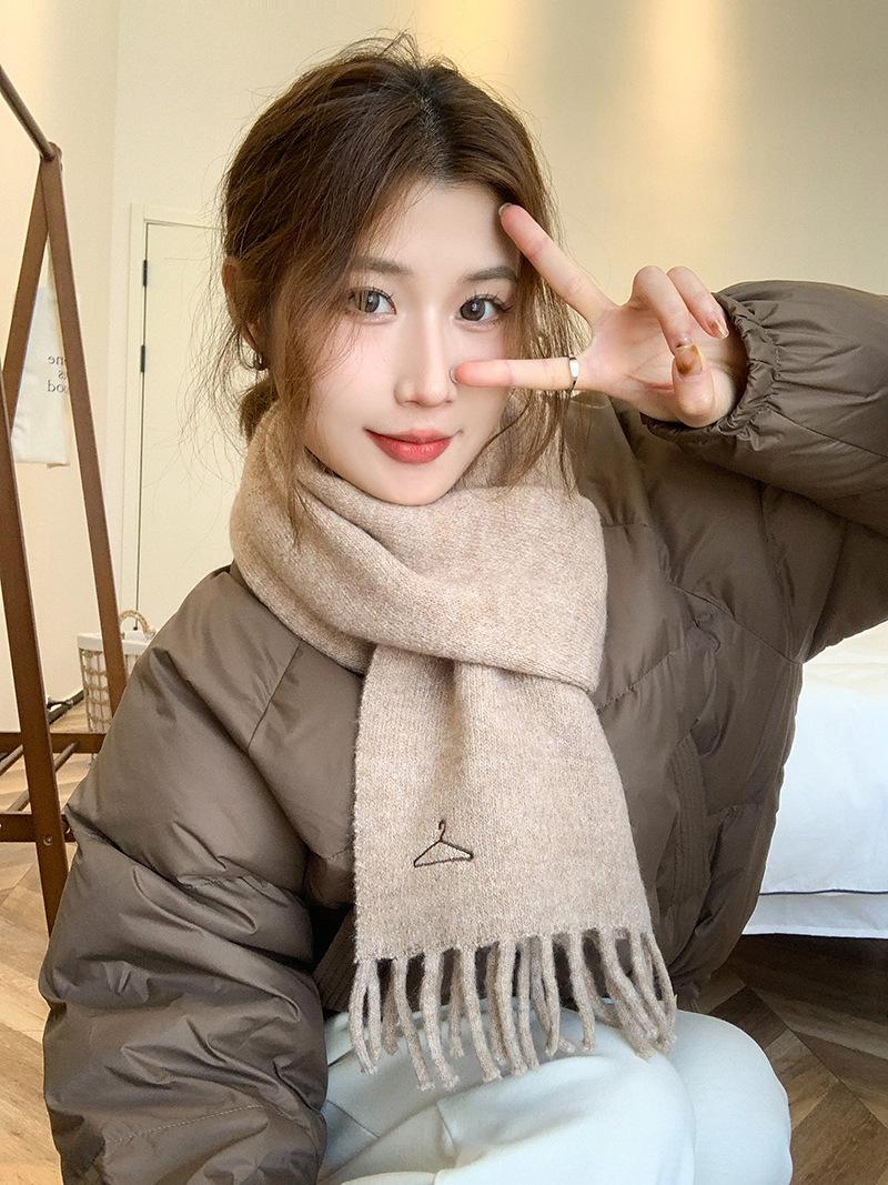 Bufanda de Cachemira de Color Sólido Simple y Versátil Otoño e Invierno Niña Dulce Japonesa y Coreana a Prueba de Frío Borla Bordada Bufanda Cálida