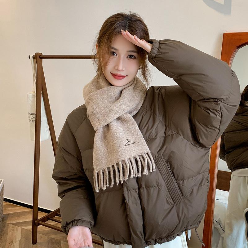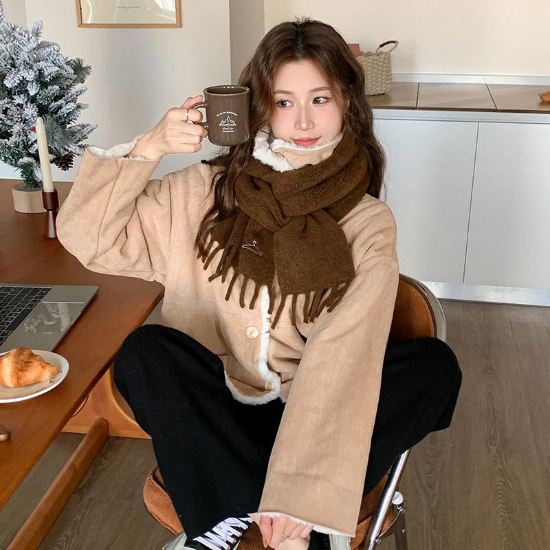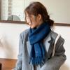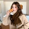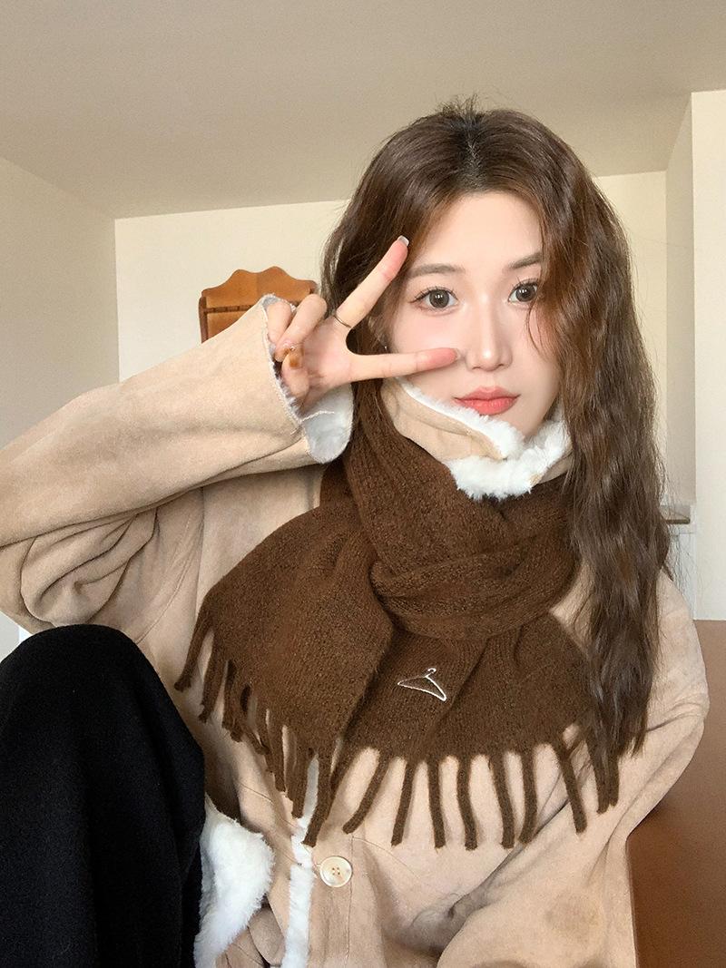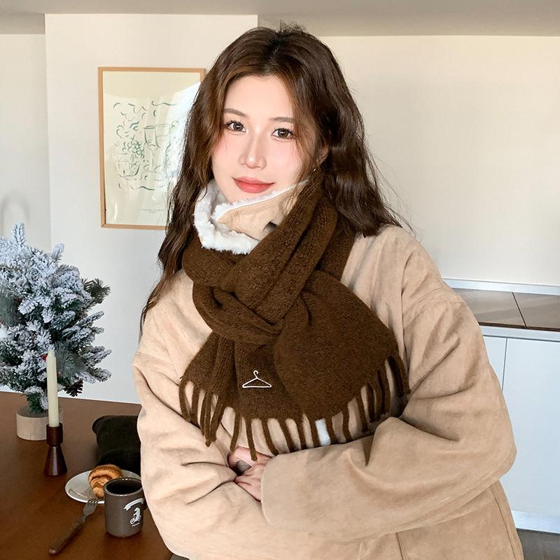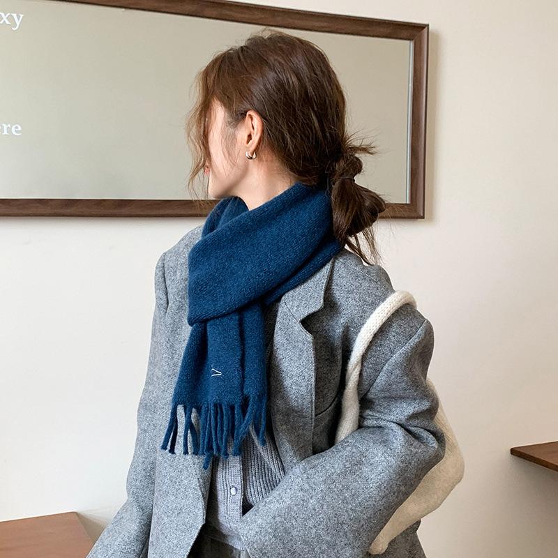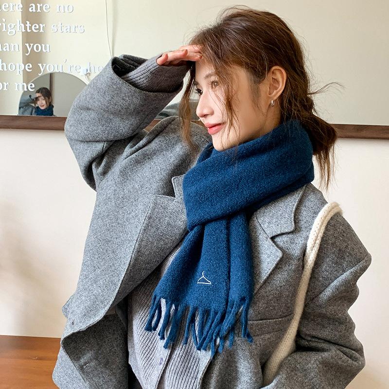 Bufanda de Cachemira de Color Sólido Simple y Versátil Otoño e Invierno Niña Dulce Japonesa y Coreana a Prueba de Frío Borla Bordada Bufanda Cálida