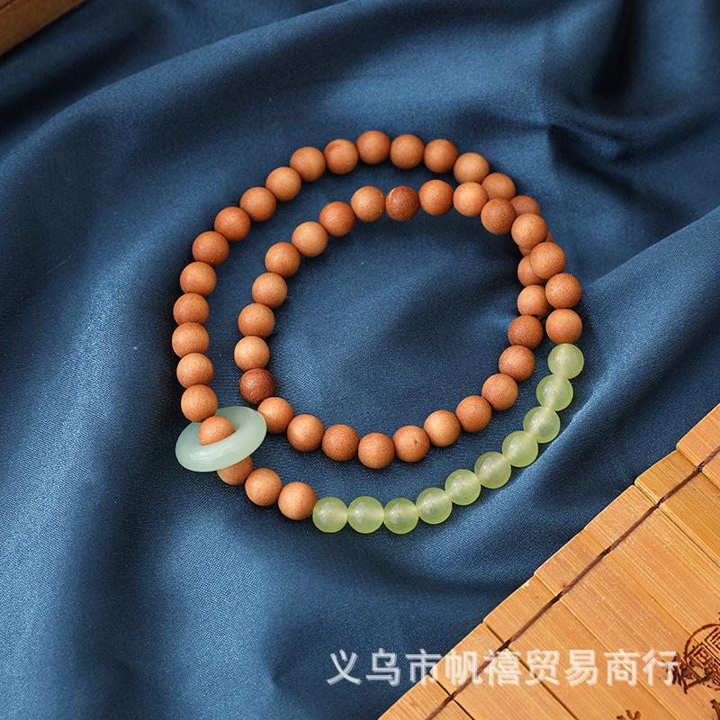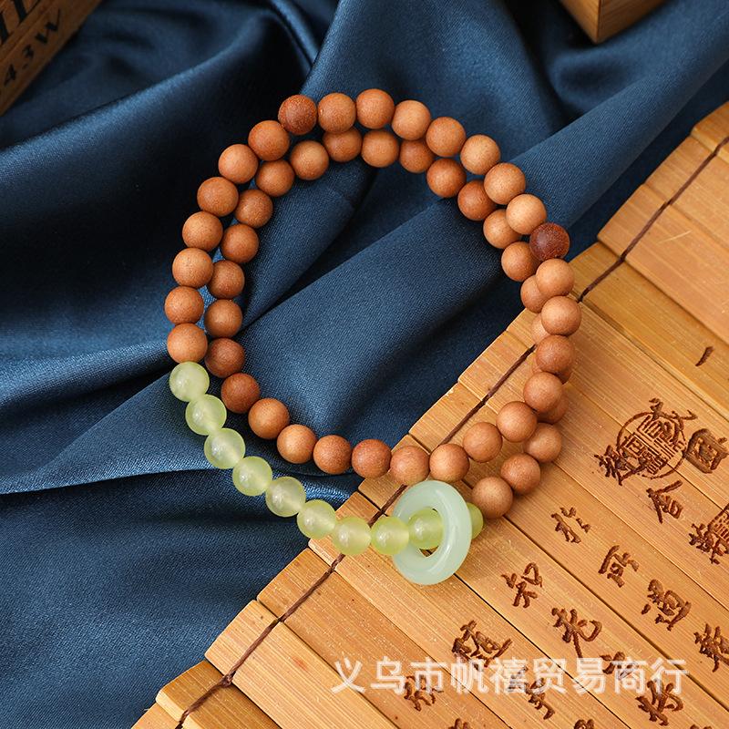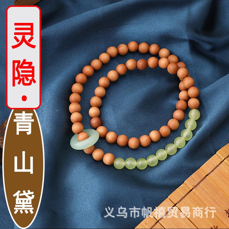 Lingyin Qingshan Dai con pulsera de doble aro sándalo natural imitación piedra uva anillo giratorio Hotan sustituto de suministro en vivo
