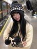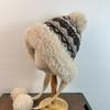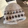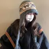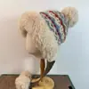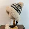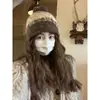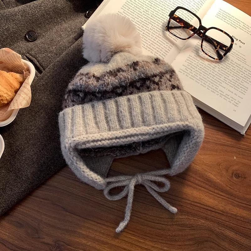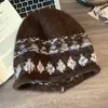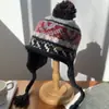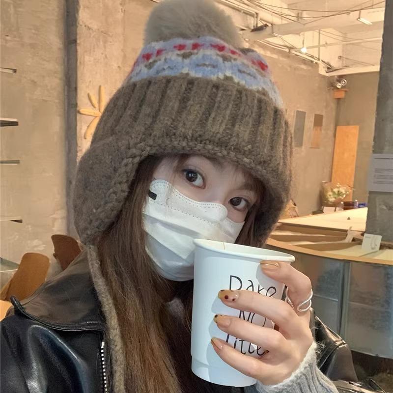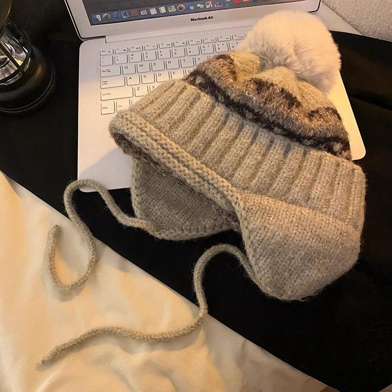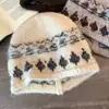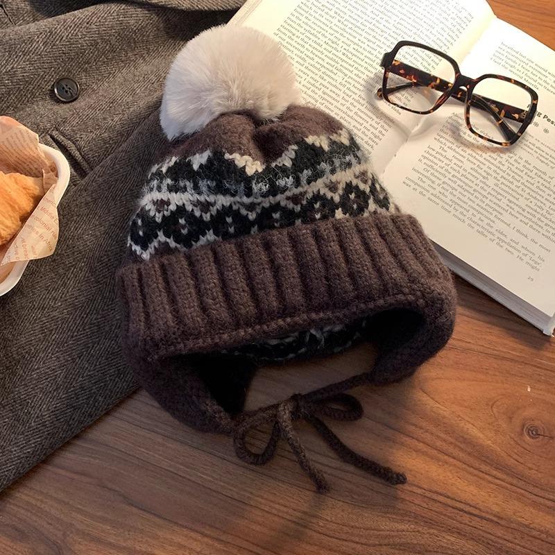 M040 fair isle ear protection beanie mocha color, M040 fair isle ear protection beanie brown, M040 fair isle e...
