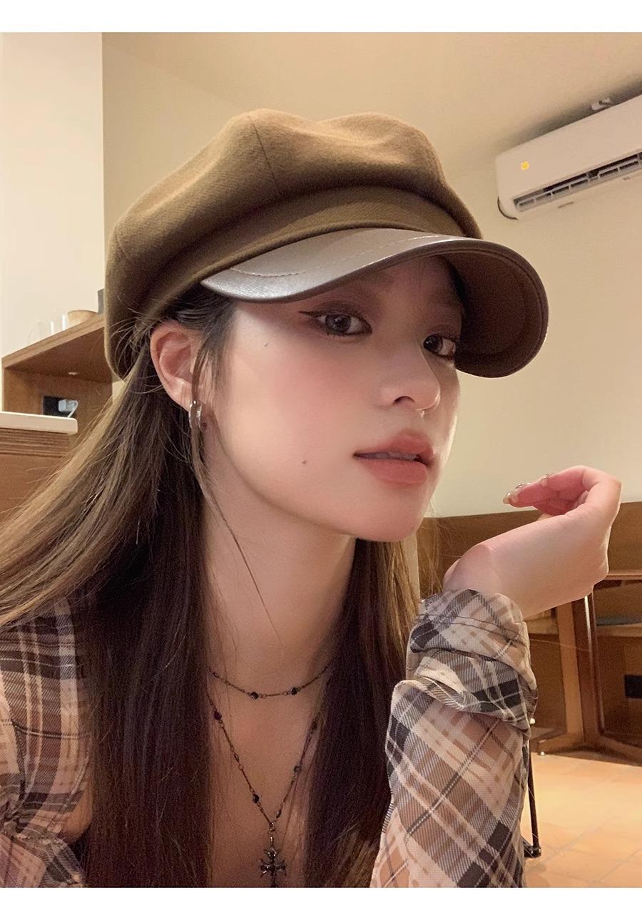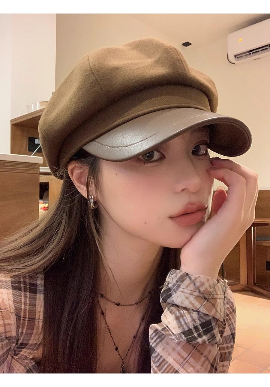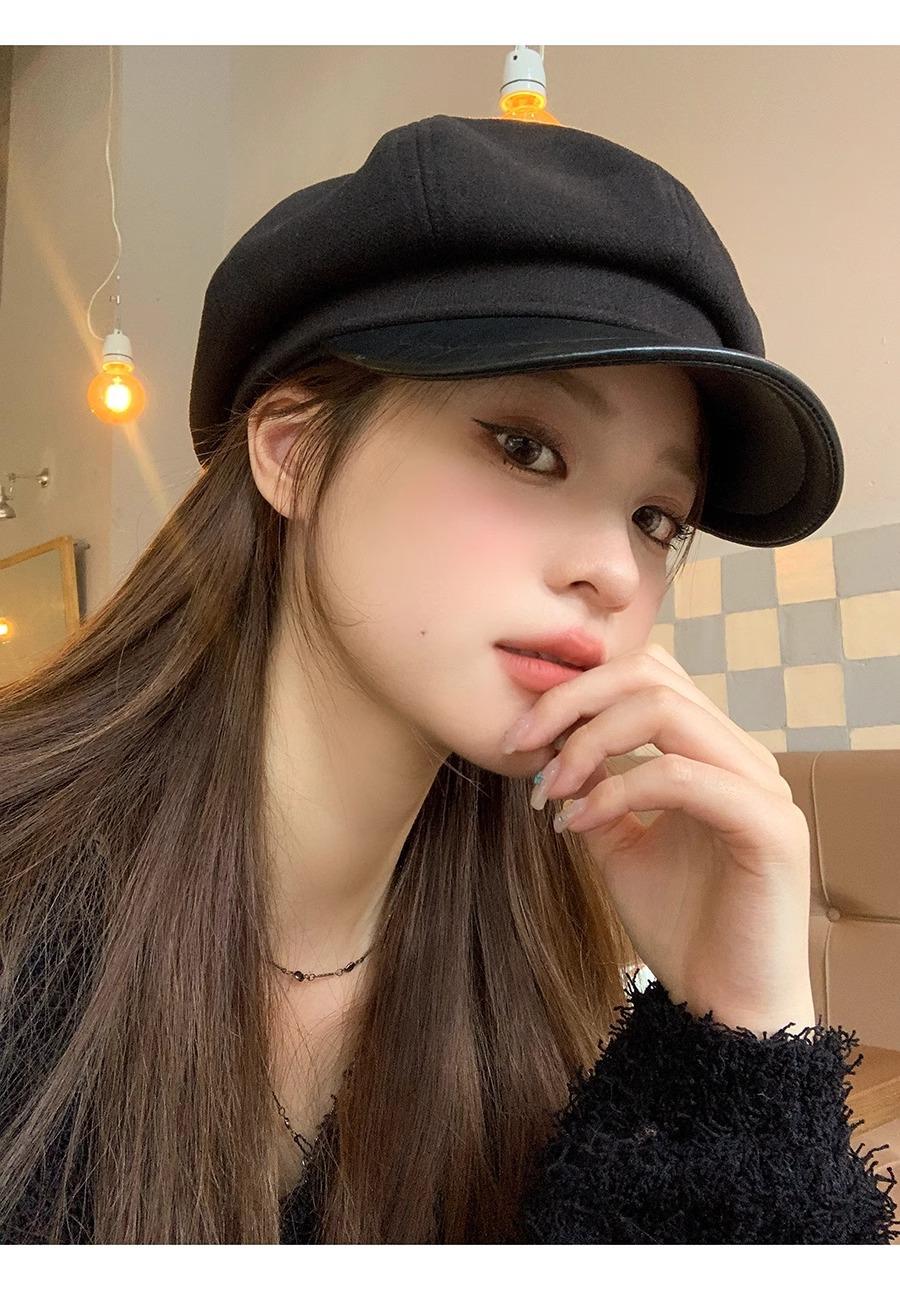 Boina de estilo coreano para mujer, gorro octogonal pequeño para otoño e invierno, estilo retro informal, estilo británico, estilo vendedor de periódicos, gorro de pintor
