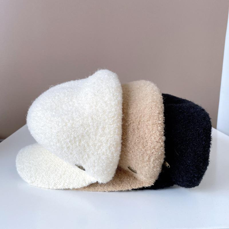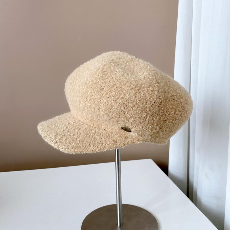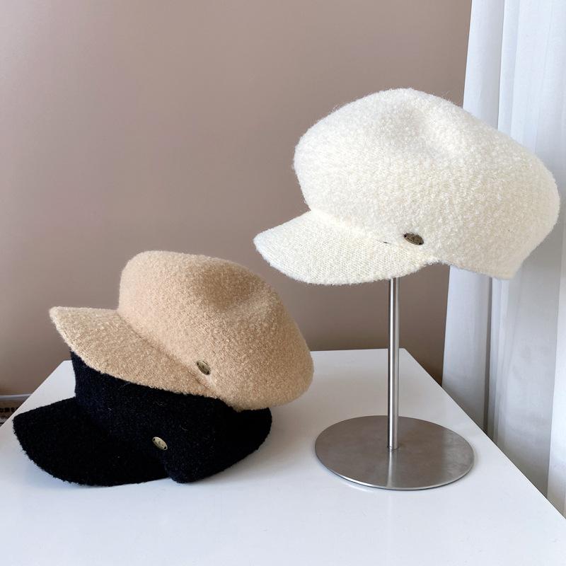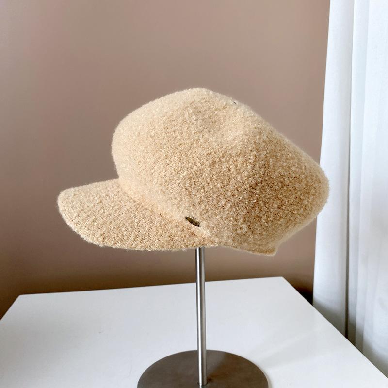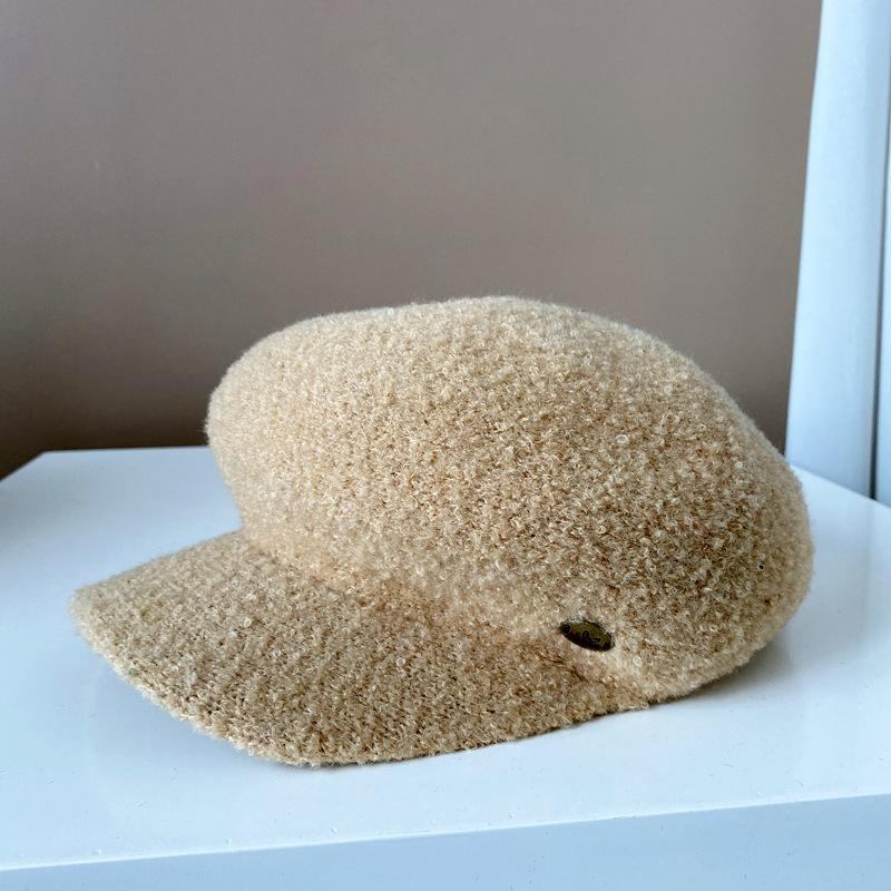 Gorra de felpa de estilo japonés para mujer, cálida gorra de vendedor de periódicos para otoño e invierno, boina lisa de color sólido, gorra octogonal británica que combina con todo.