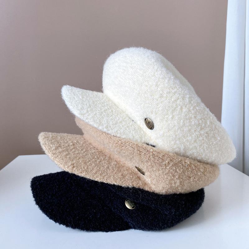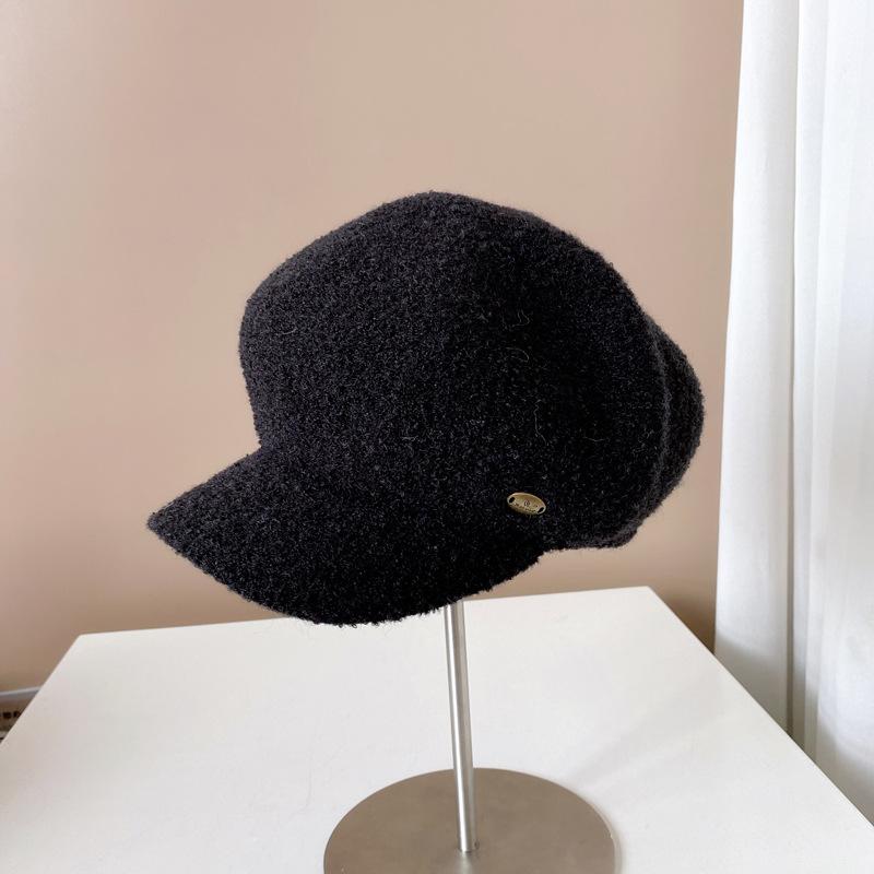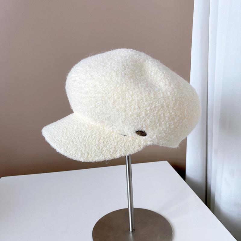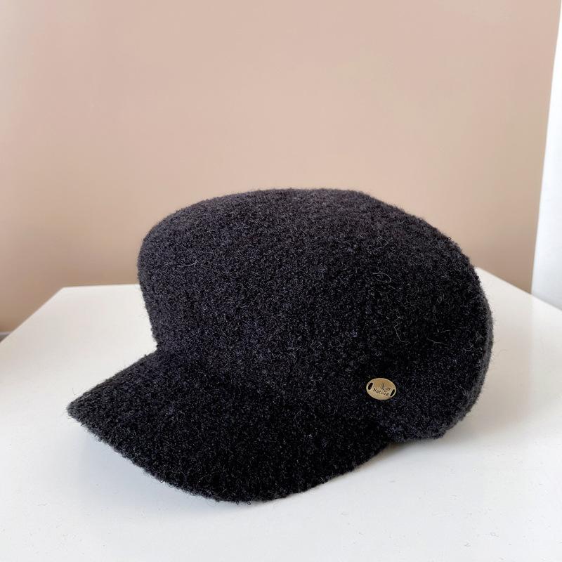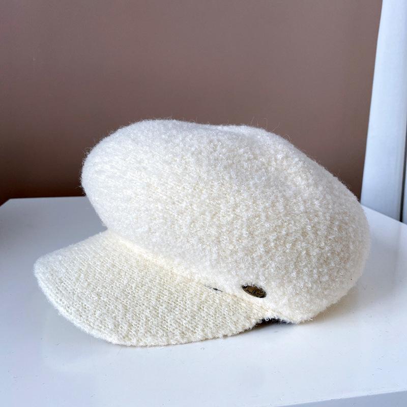Gorra de felpa de estilo japonés para mujer, cálida gorra de vendedor de periódicos para otoño e invierno, boina lisa de color sólido, gorra octogonal británica que combina con todo.
