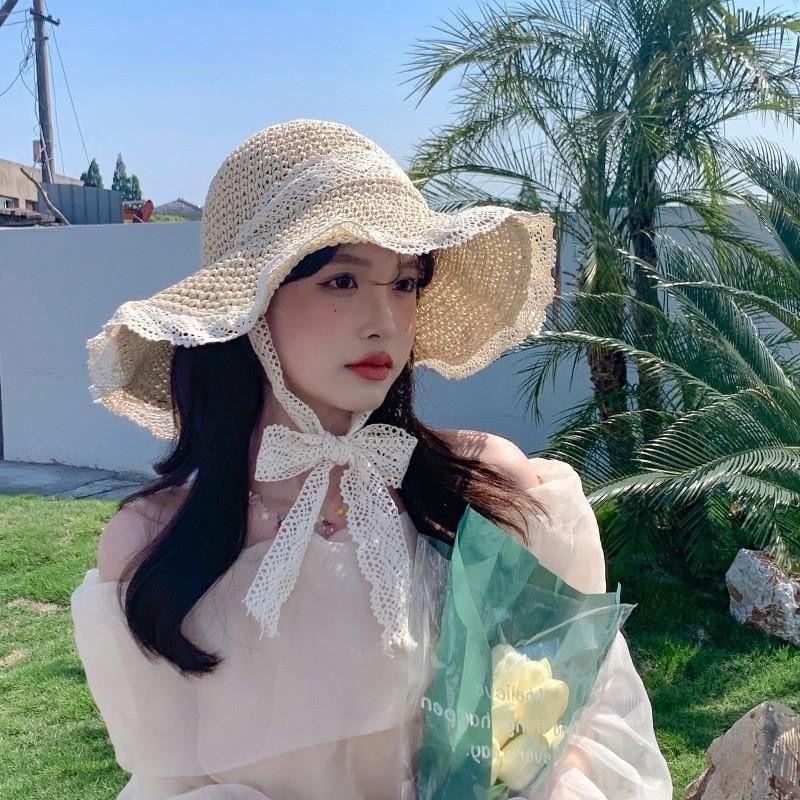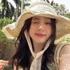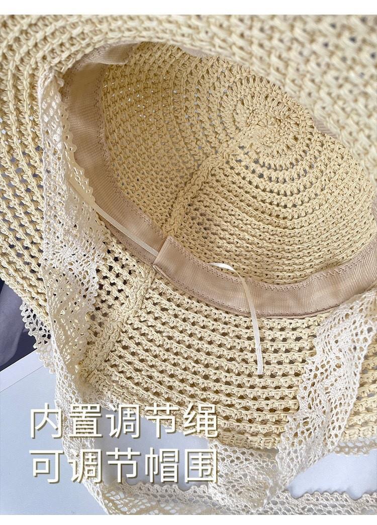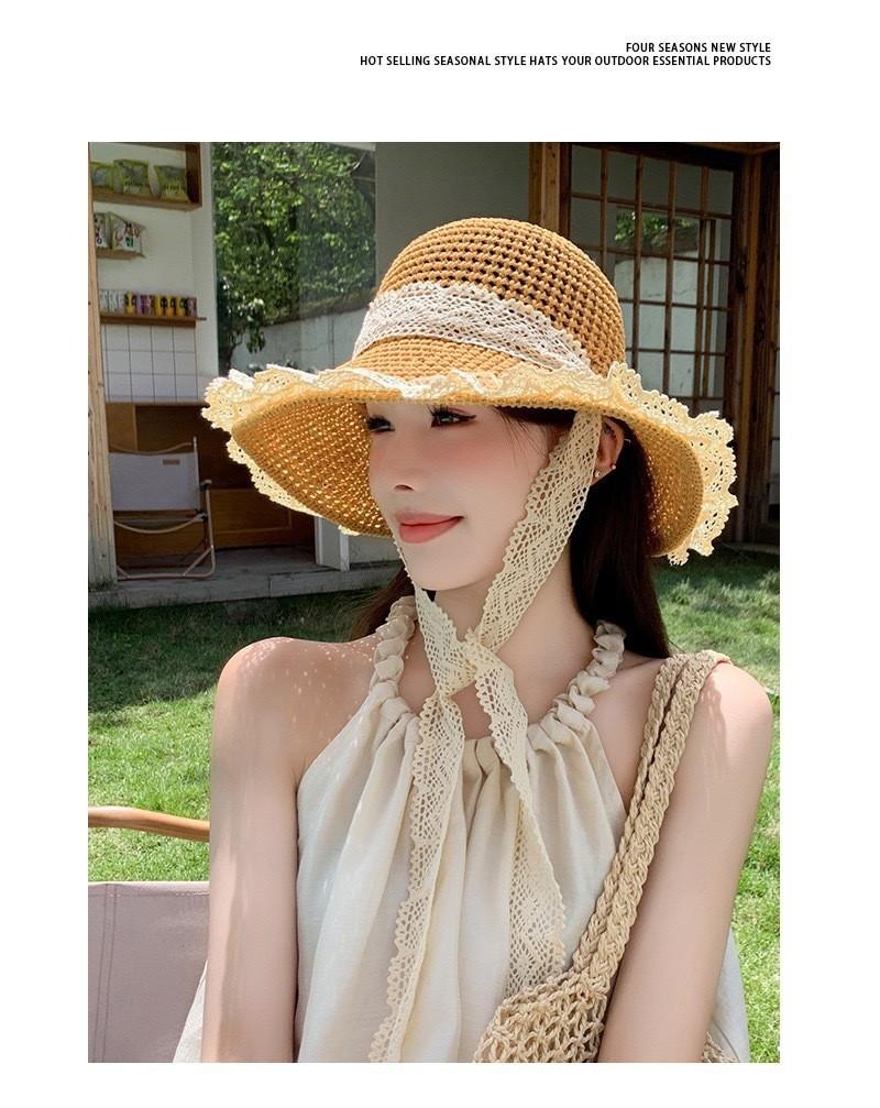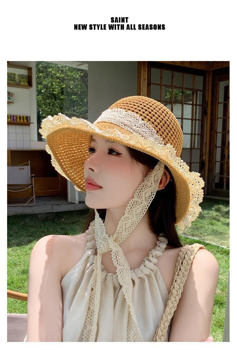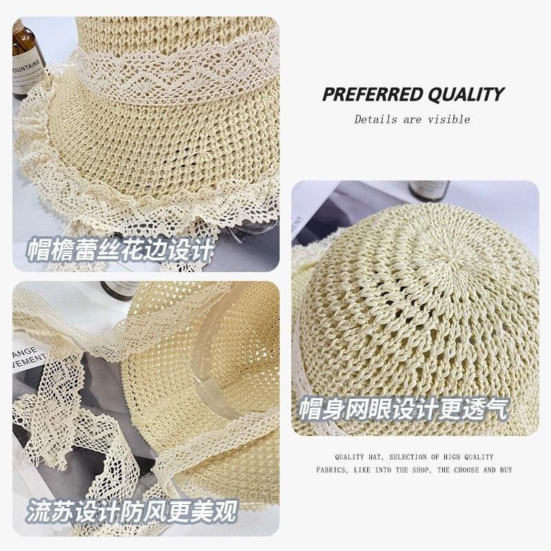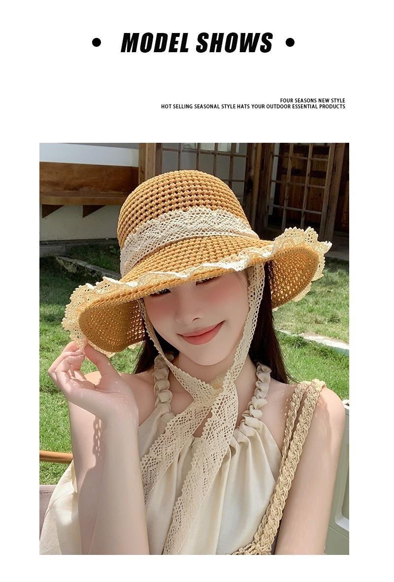 Sombrero de Paja Sombrero de Playa Sombrero de Paja con Cordones Ins Sombrero de Sol de Viaje para Mujer Protección Solar Sombrero de Sol de Playa Sombrero de Sol de Encaje