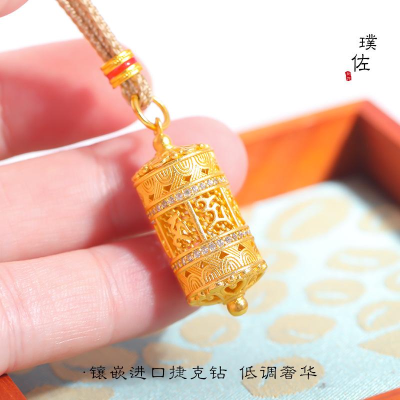 Colgante de cubo de la verdad de seis caracteres con incrustaciones de diamantes en oro de arena vietnamita de larga duración, accesorios de bricolaje, collar, cadena de suéter, accesorios para mujeres