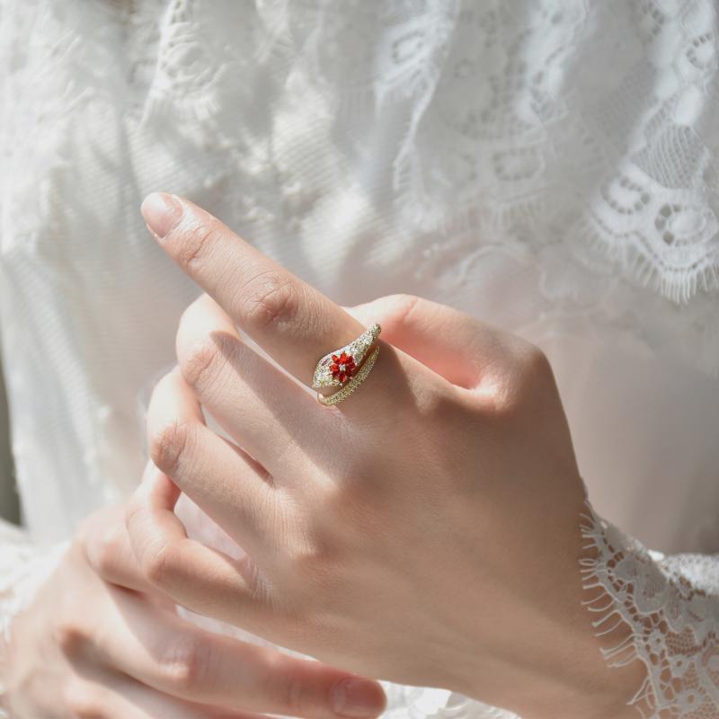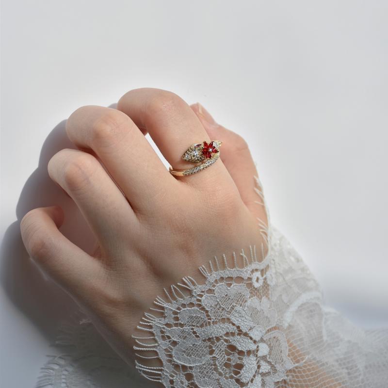 Europa y Estados Unidos nueva moda personalidad cobre micro engaste anillo de circonita mujeres chapado oro 18K anillo de cobra al por mayor