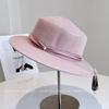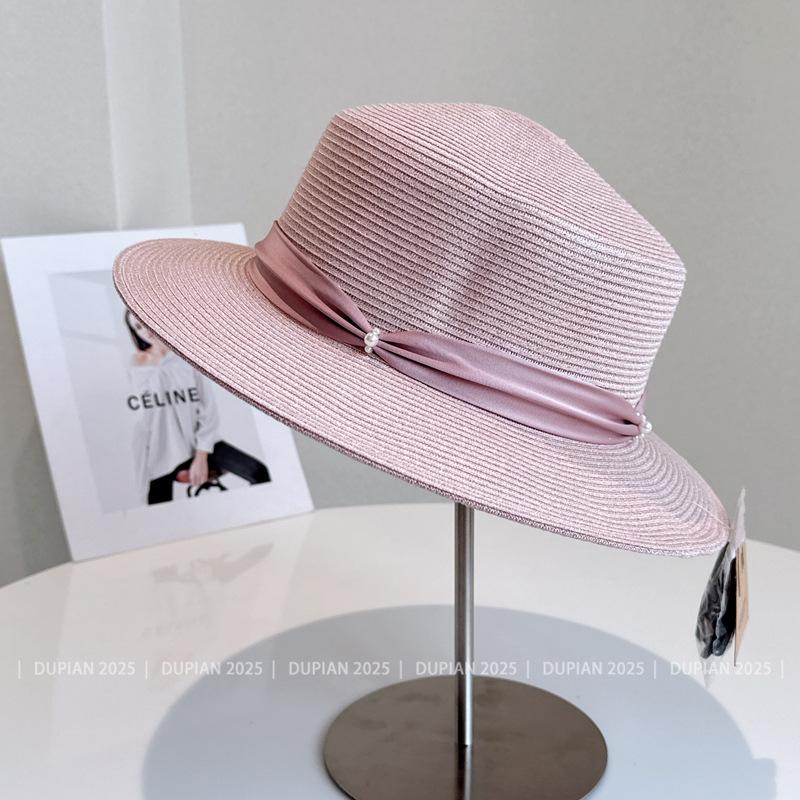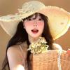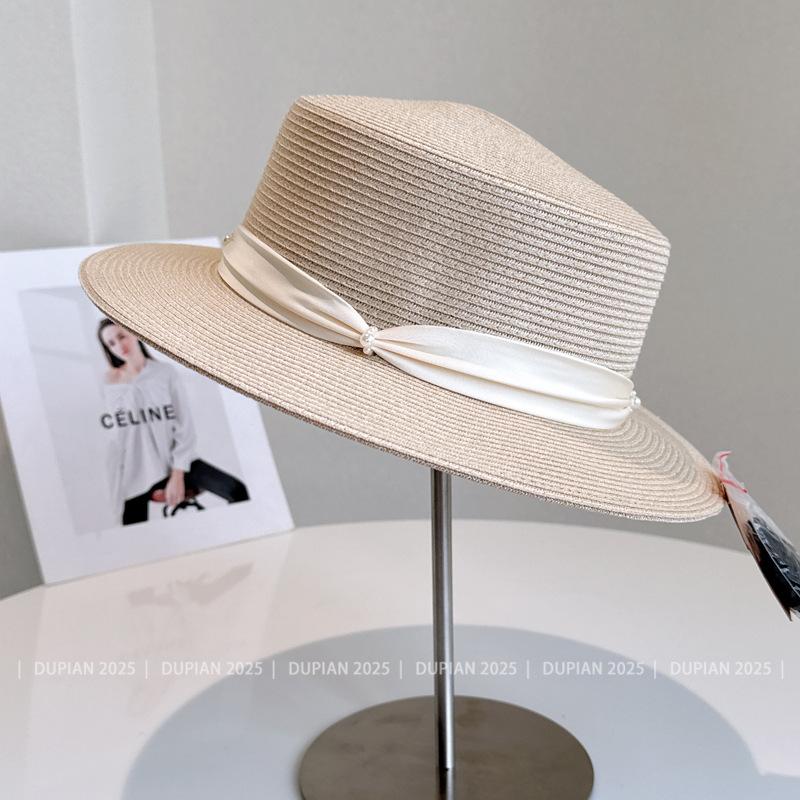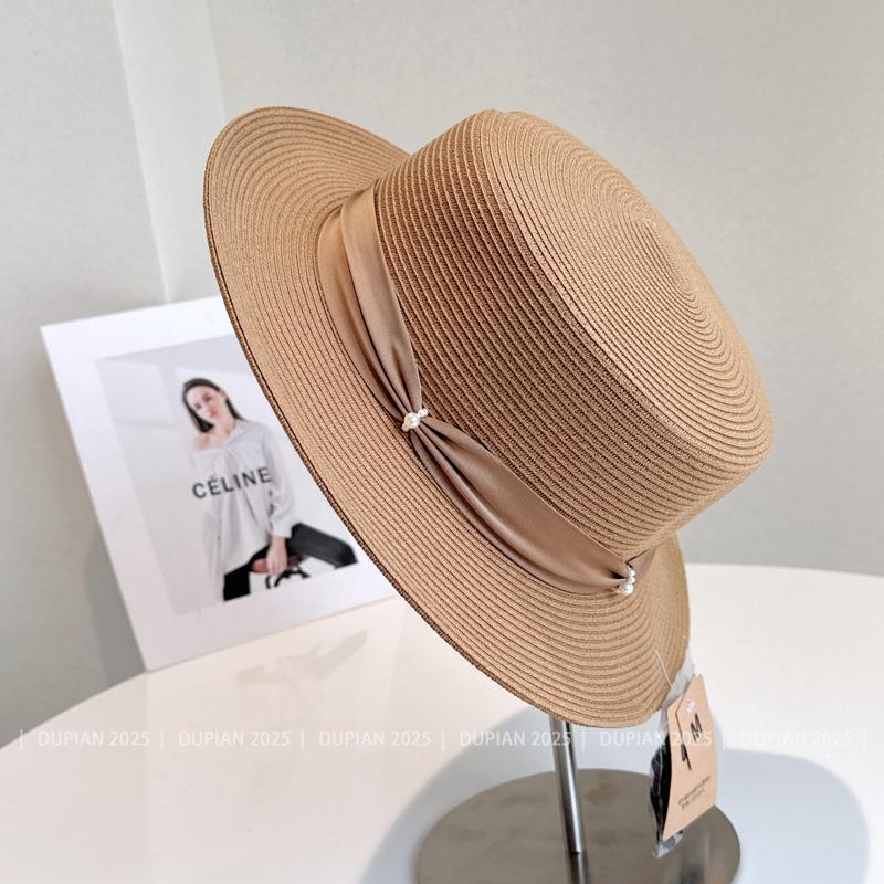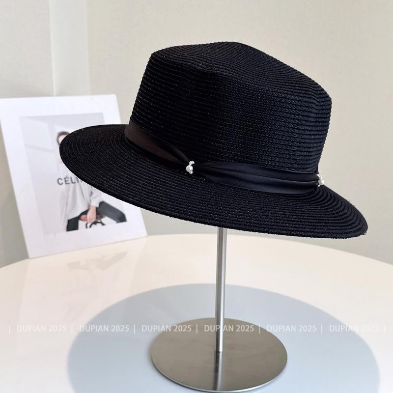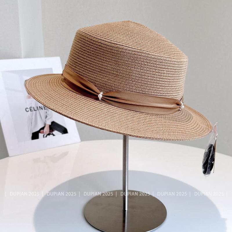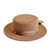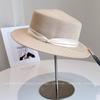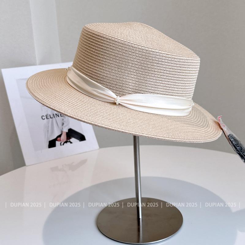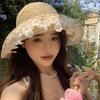 Sombrero de copa plana de lino sintético con lazo de perla estilo hada para mujer, sombrero de verano para viaje, protector solar, sombrero de playa francés para la costa.