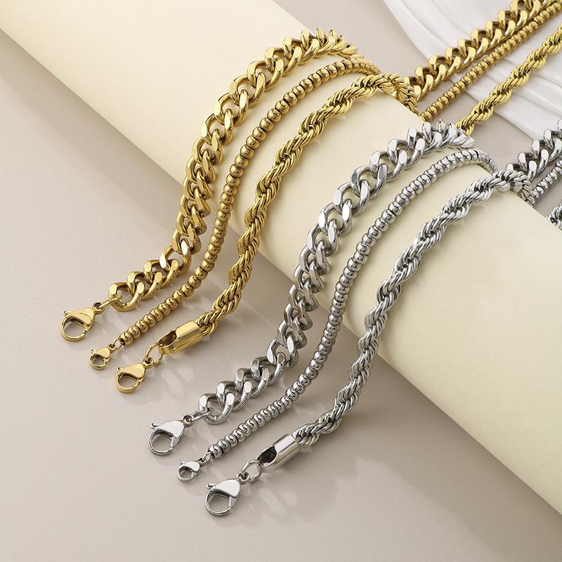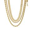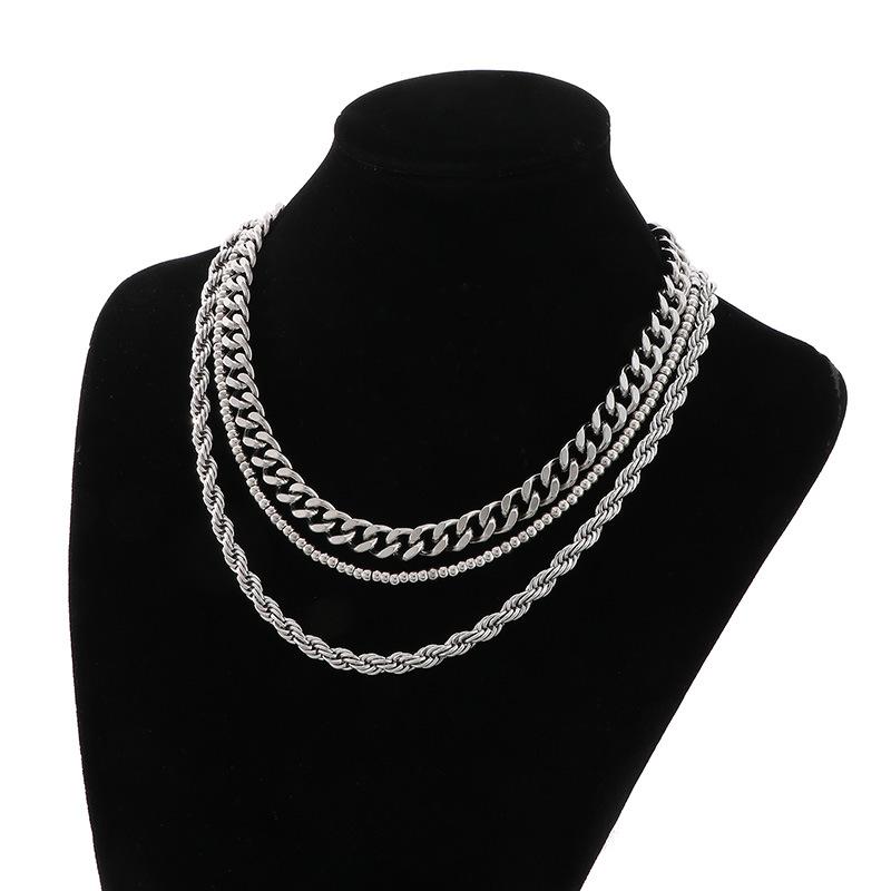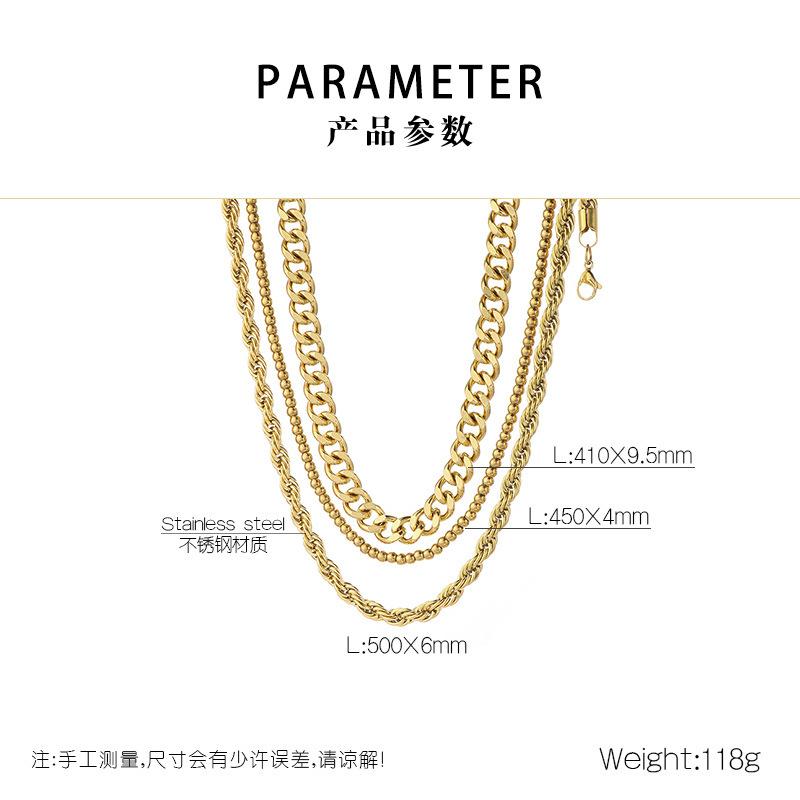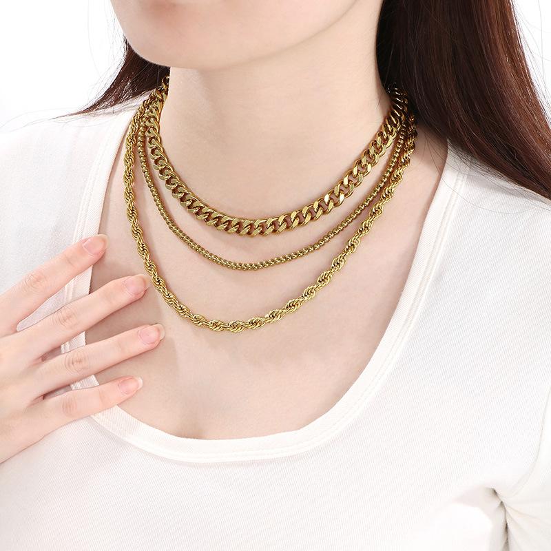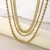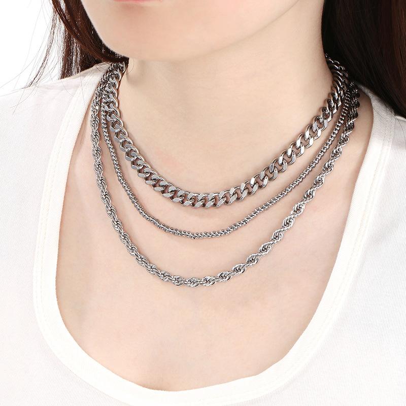 Collar de tres piezas, estilo europeo y americano, de acero inoxidable, cadena cubana, cadena torcida, cadena de cuentas, collar multicapa apilado para mujer