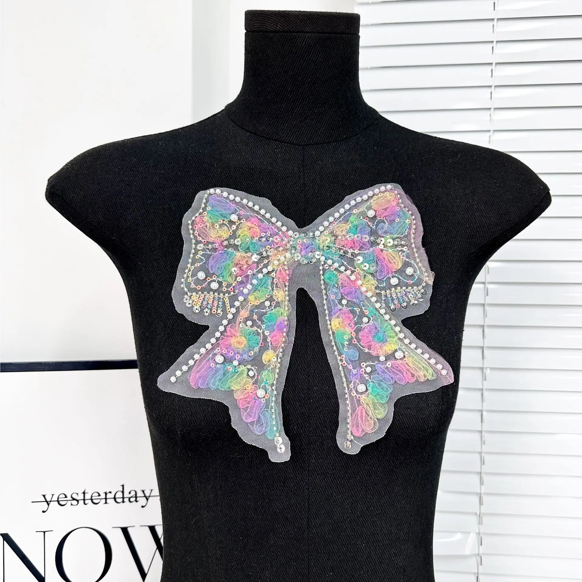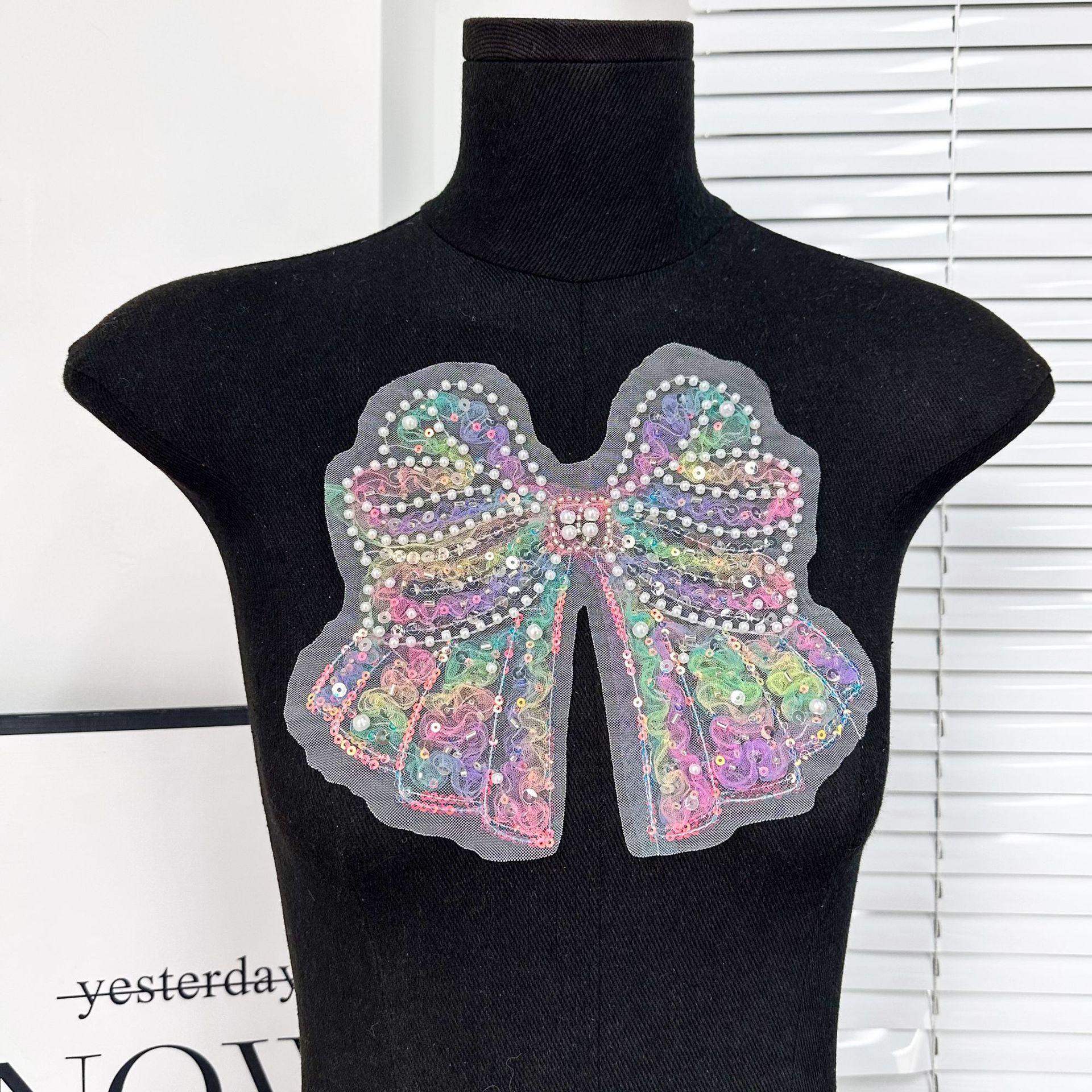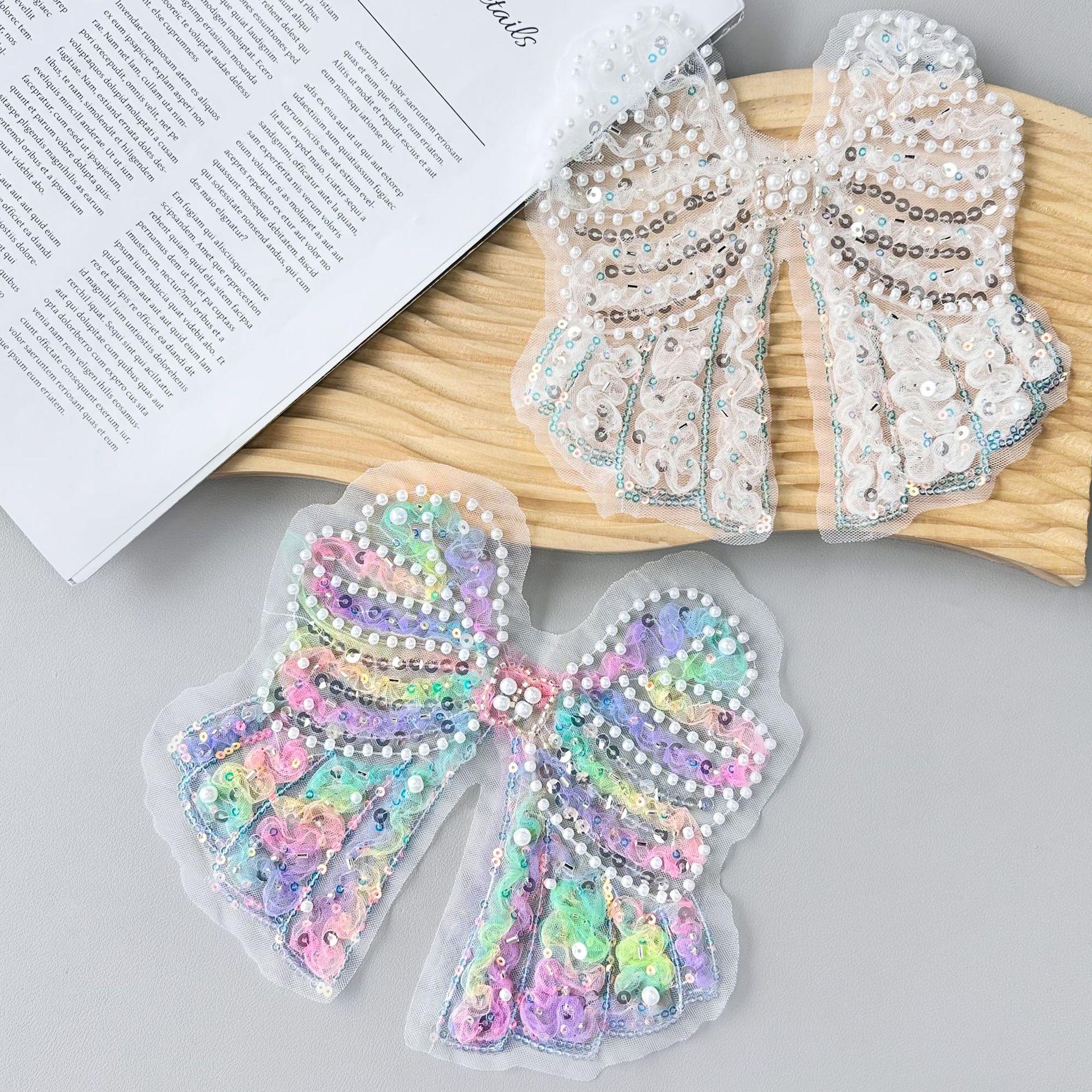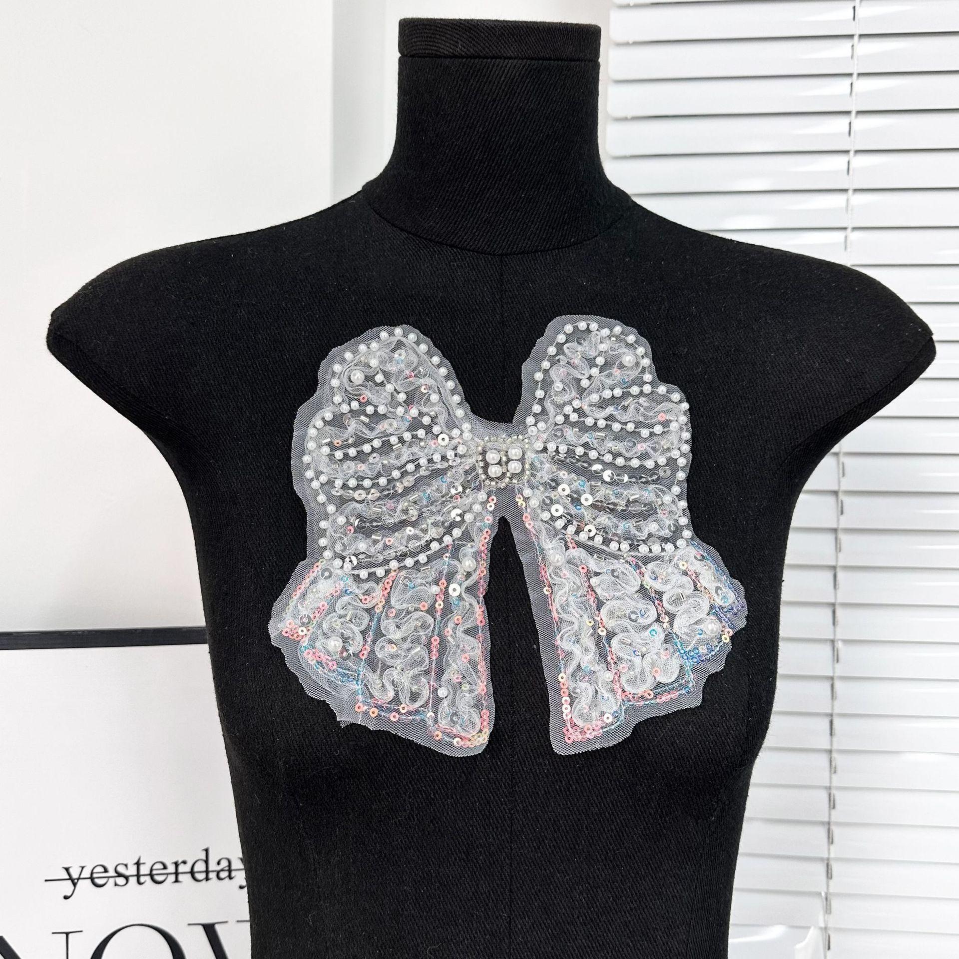 Encaje Lazo Malla Bicolor Cuentas Lentejuela Adhesivo de Tela Nuevo de Mujer Combinación con Todo Falda Suéter Decoración Accesorios de Ropa