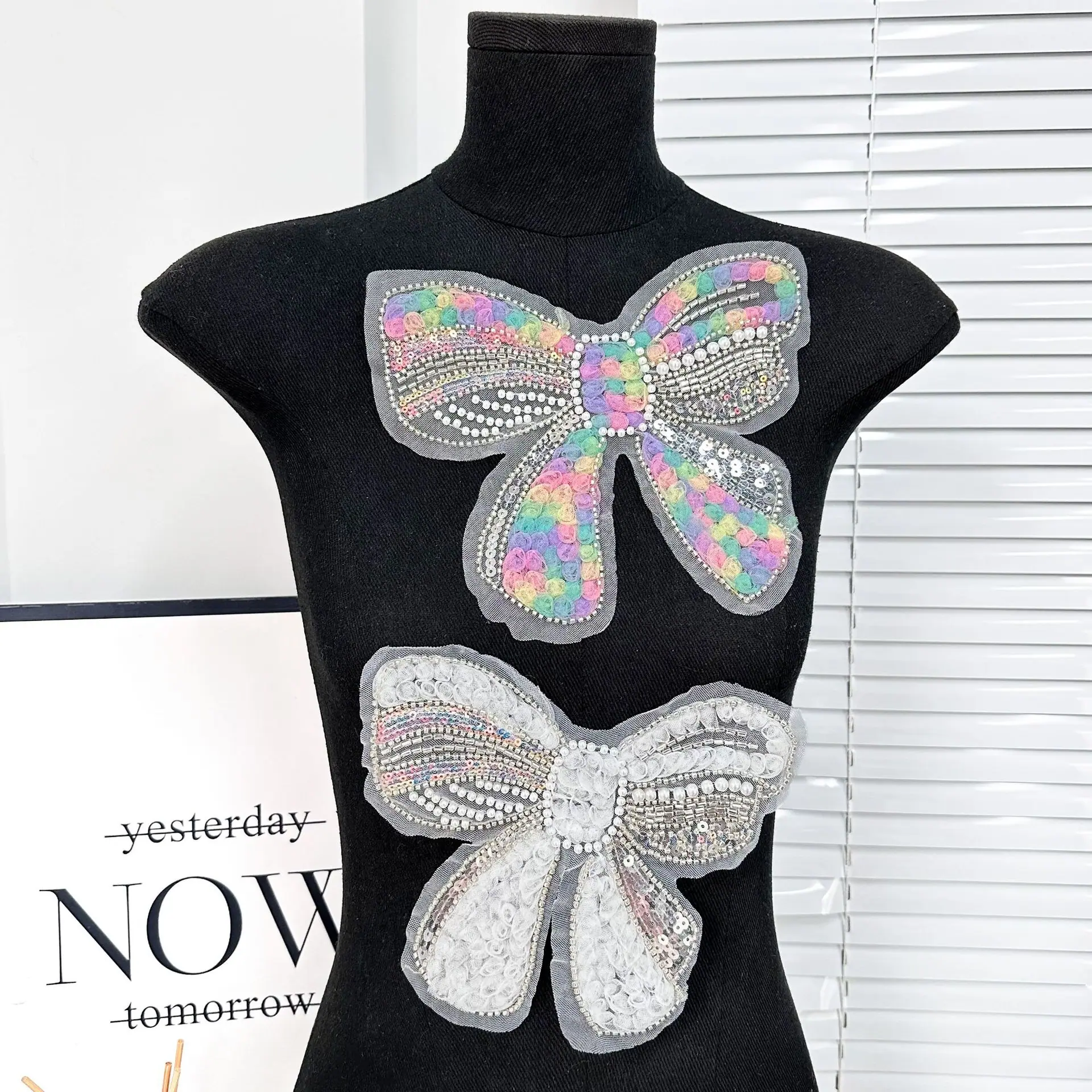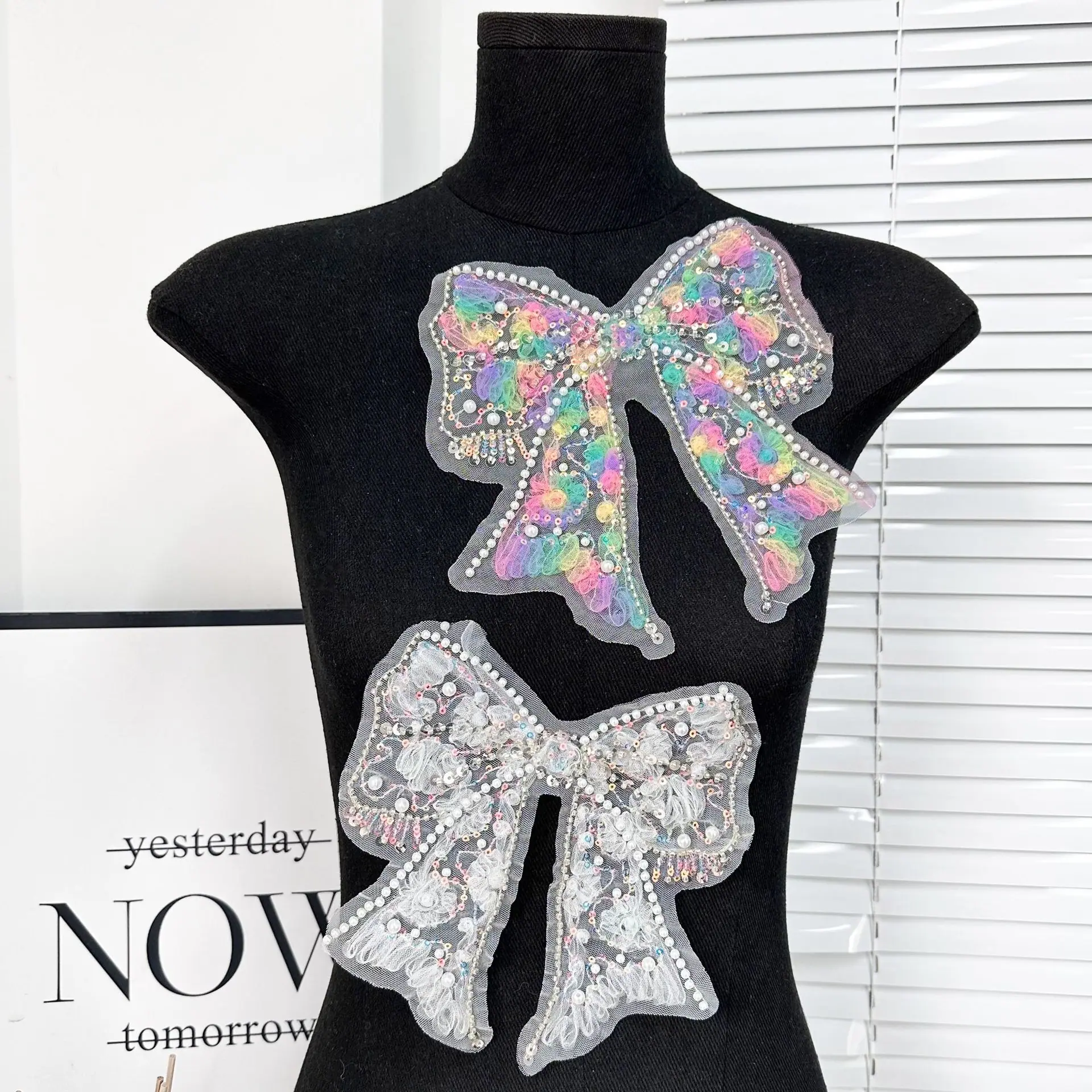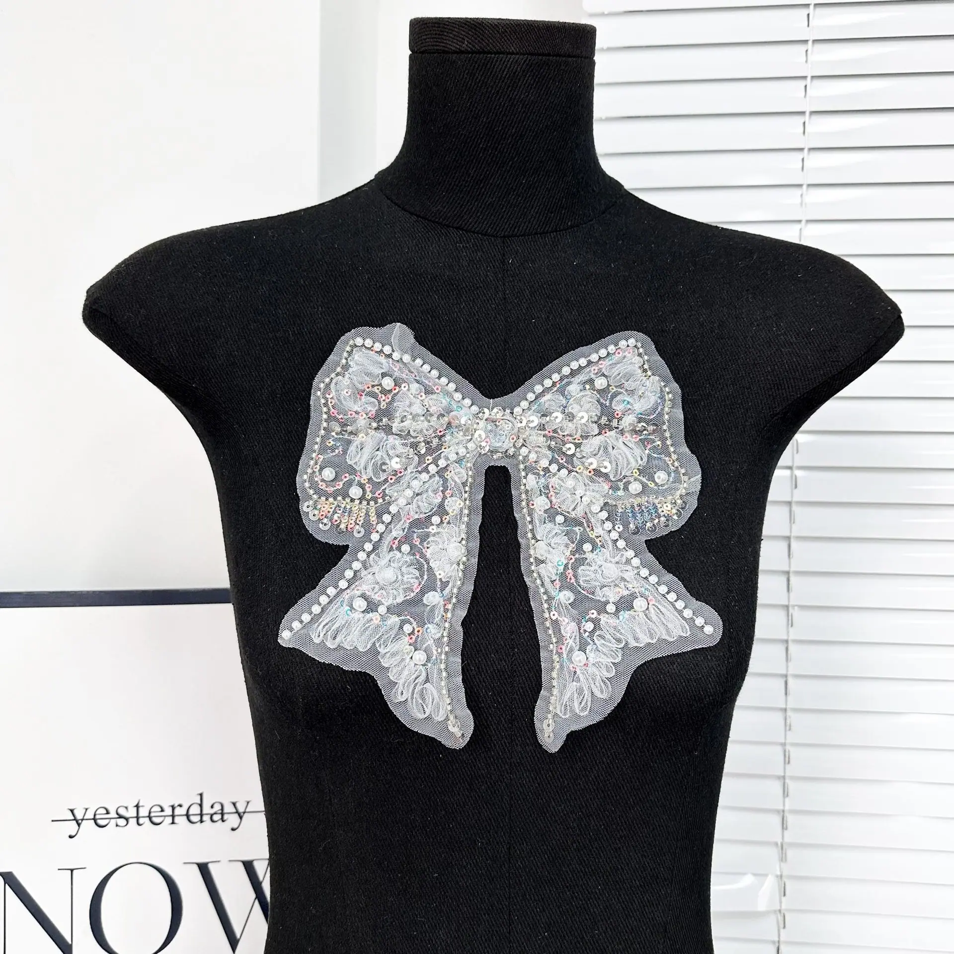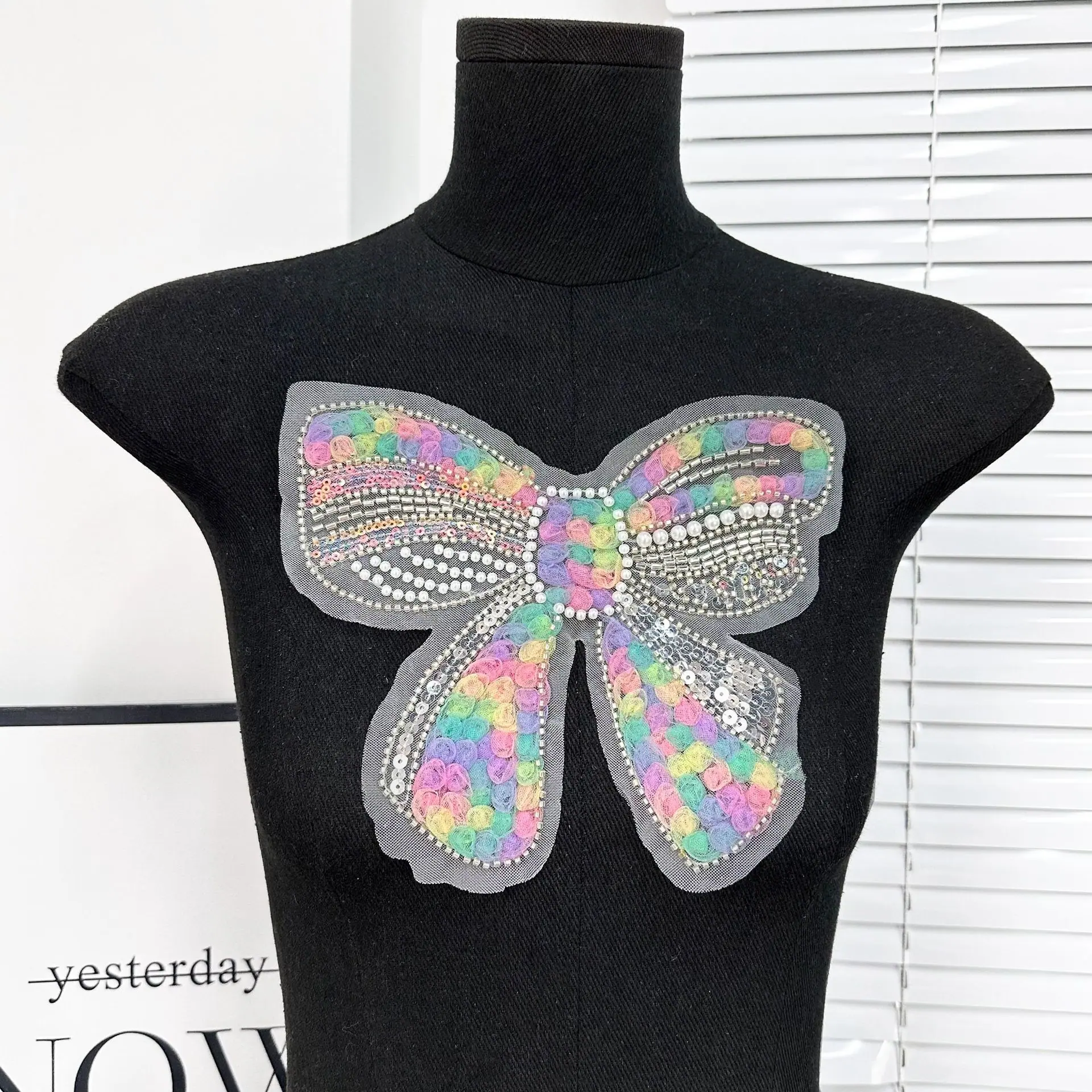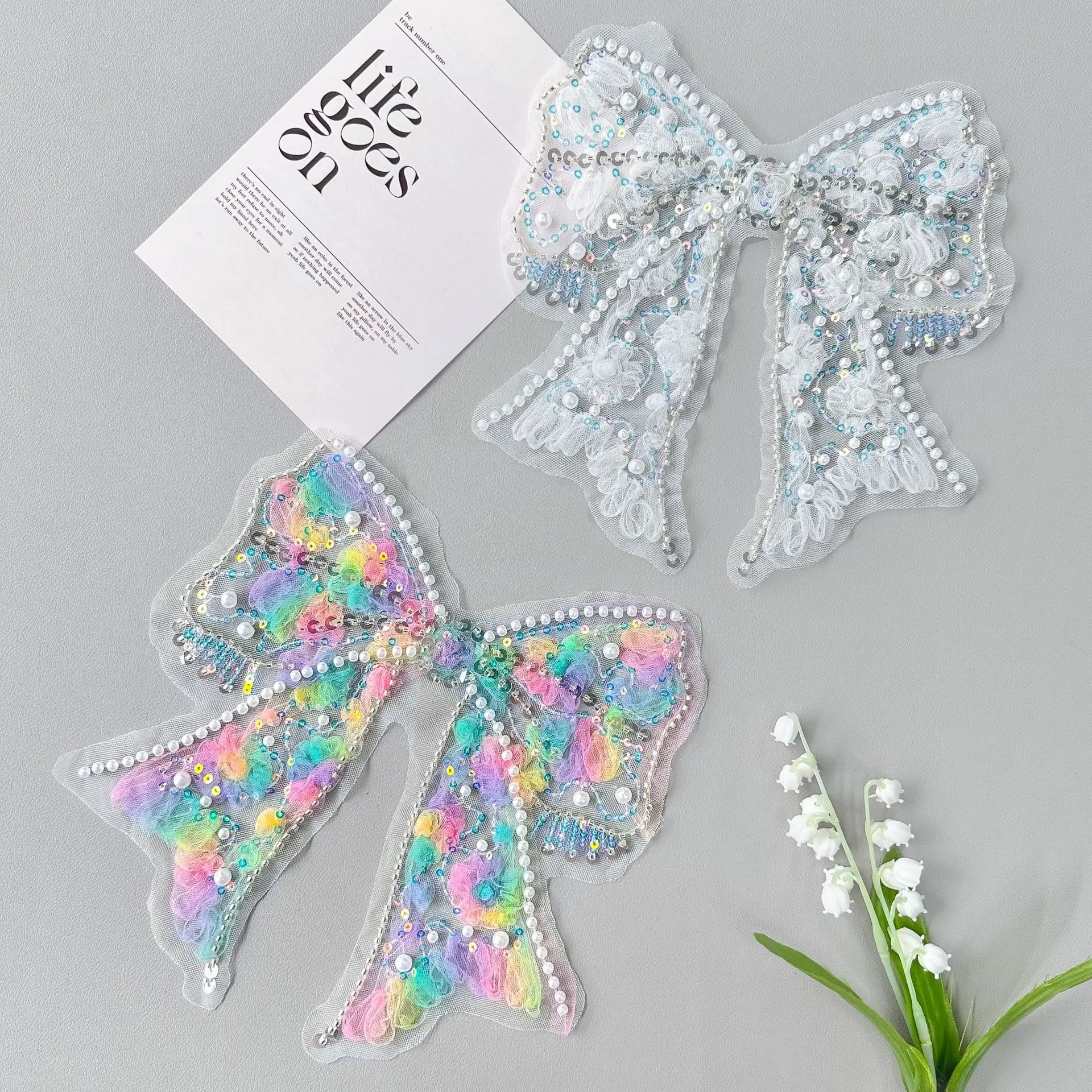 Encaje Lazo Malla Bicolor Cuentas Lentejuela Adhesivo de Tela Nuevo de Mujer Combinación con Todo Falda Suéter Decoración Accesorios de Ropa