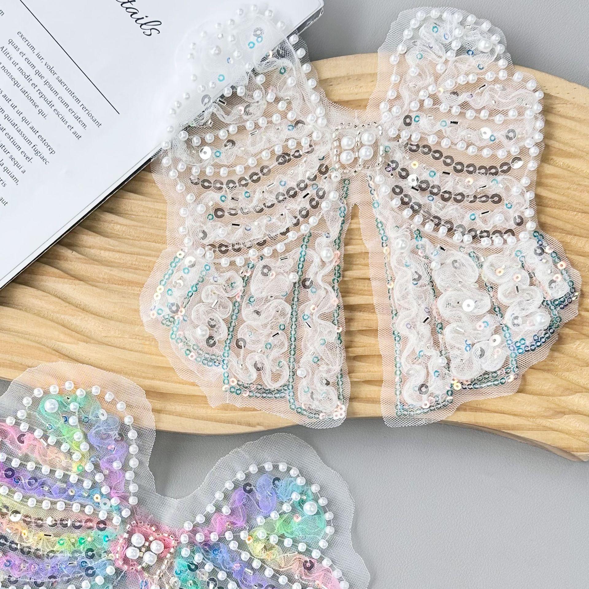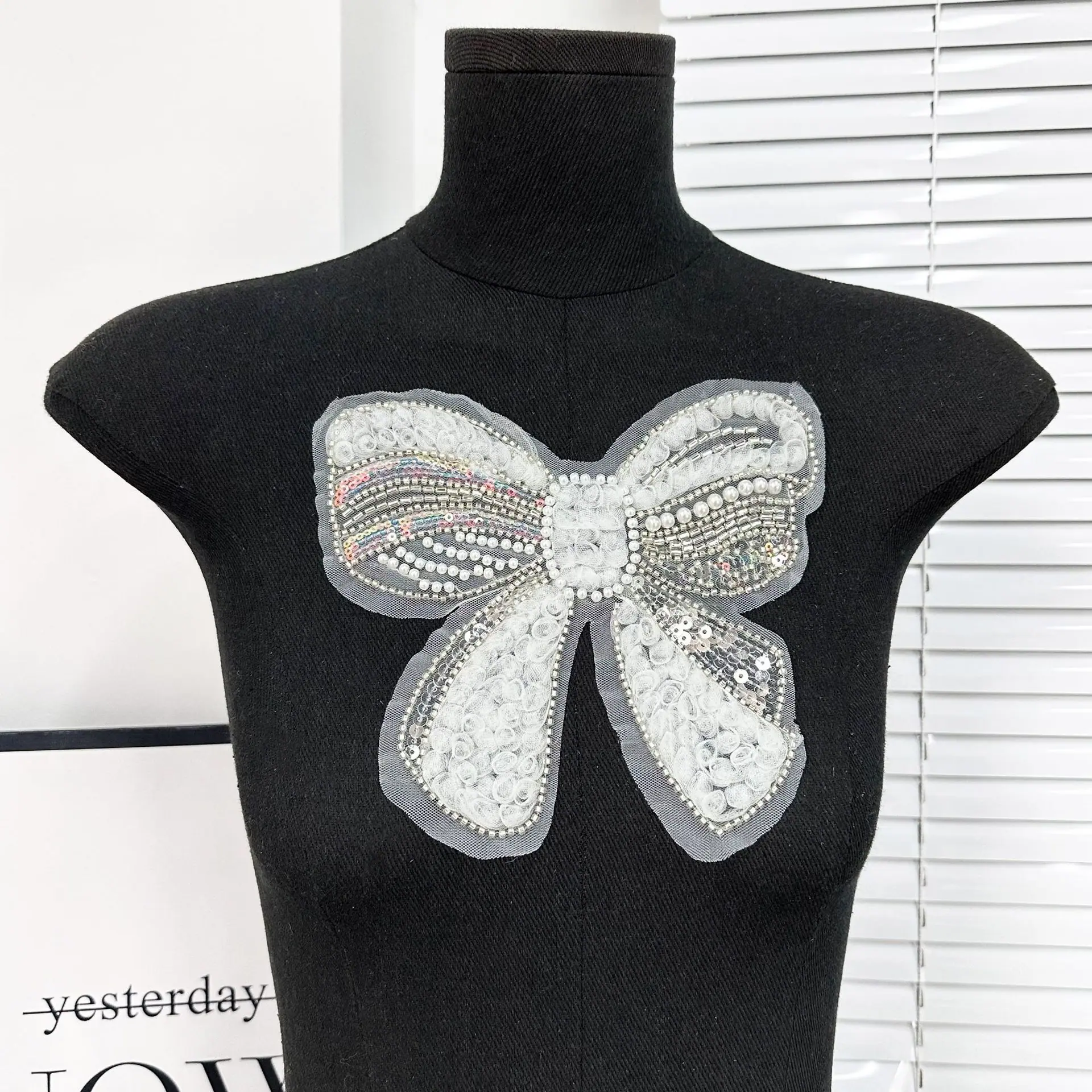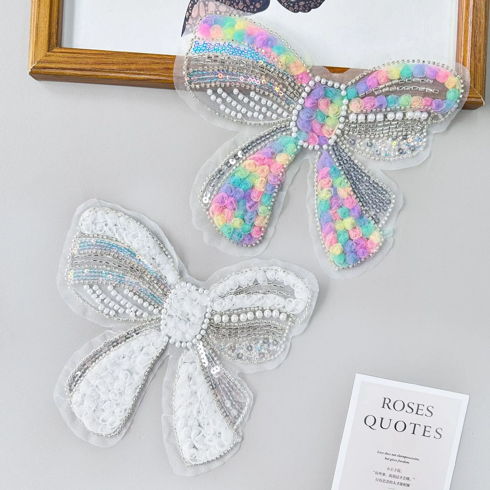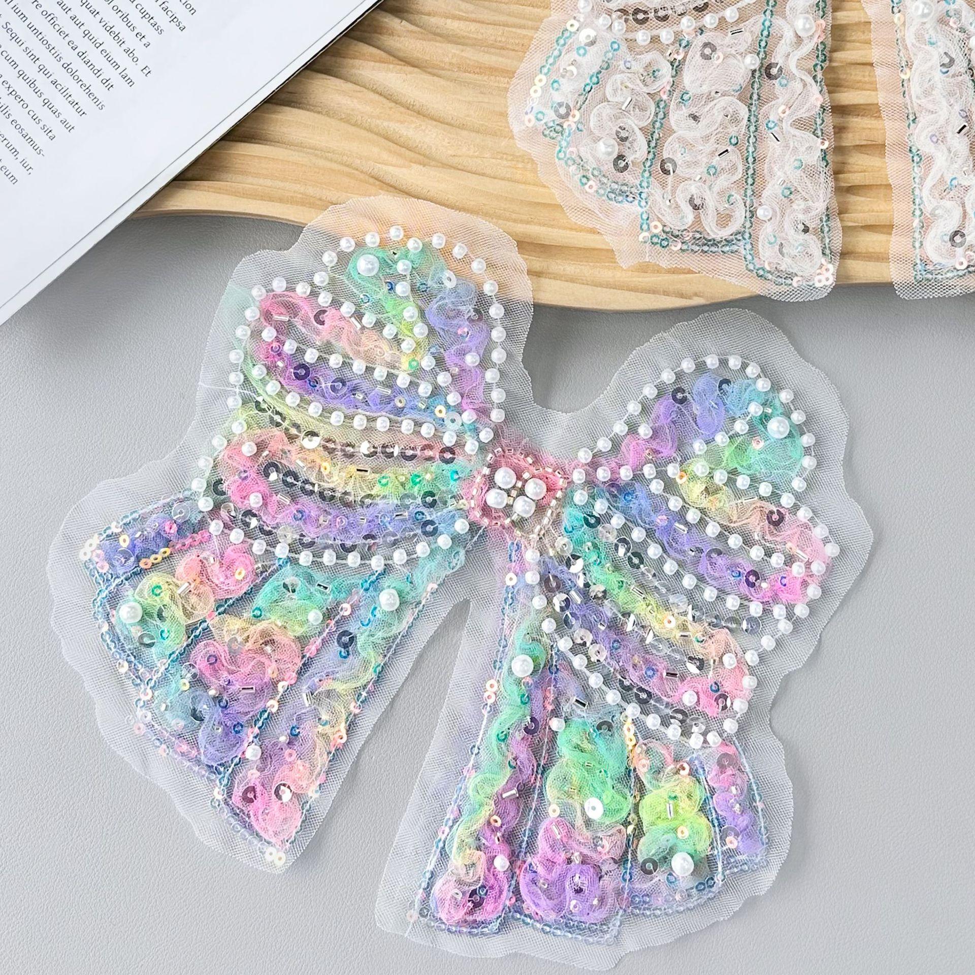 Encaje Lazo Malla Bicolor Cuentas Lentejuela Adhesivo de Tela Nuevo de Mujer Combinación con Todo Falda Suéter Decoración Accesorios de Ropa