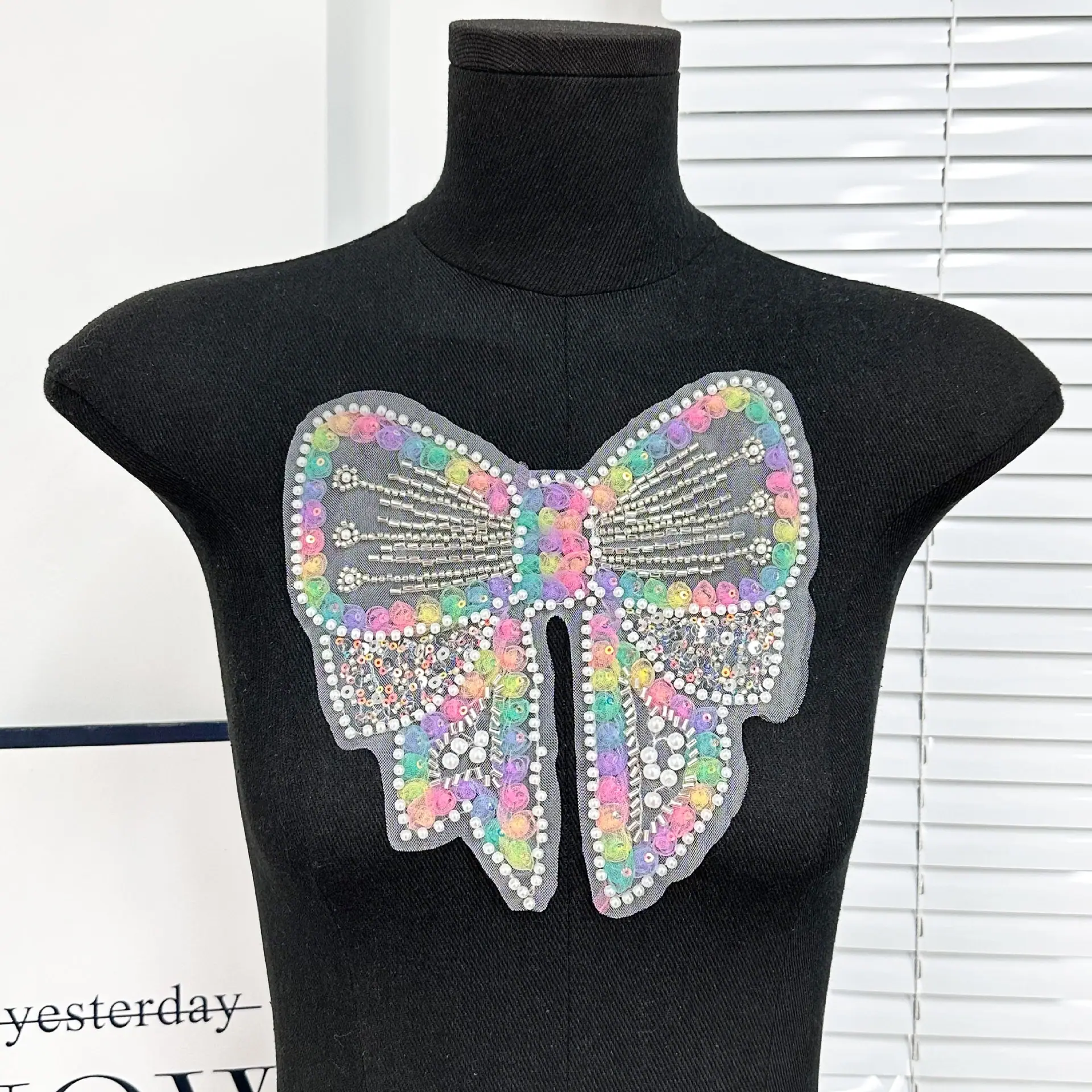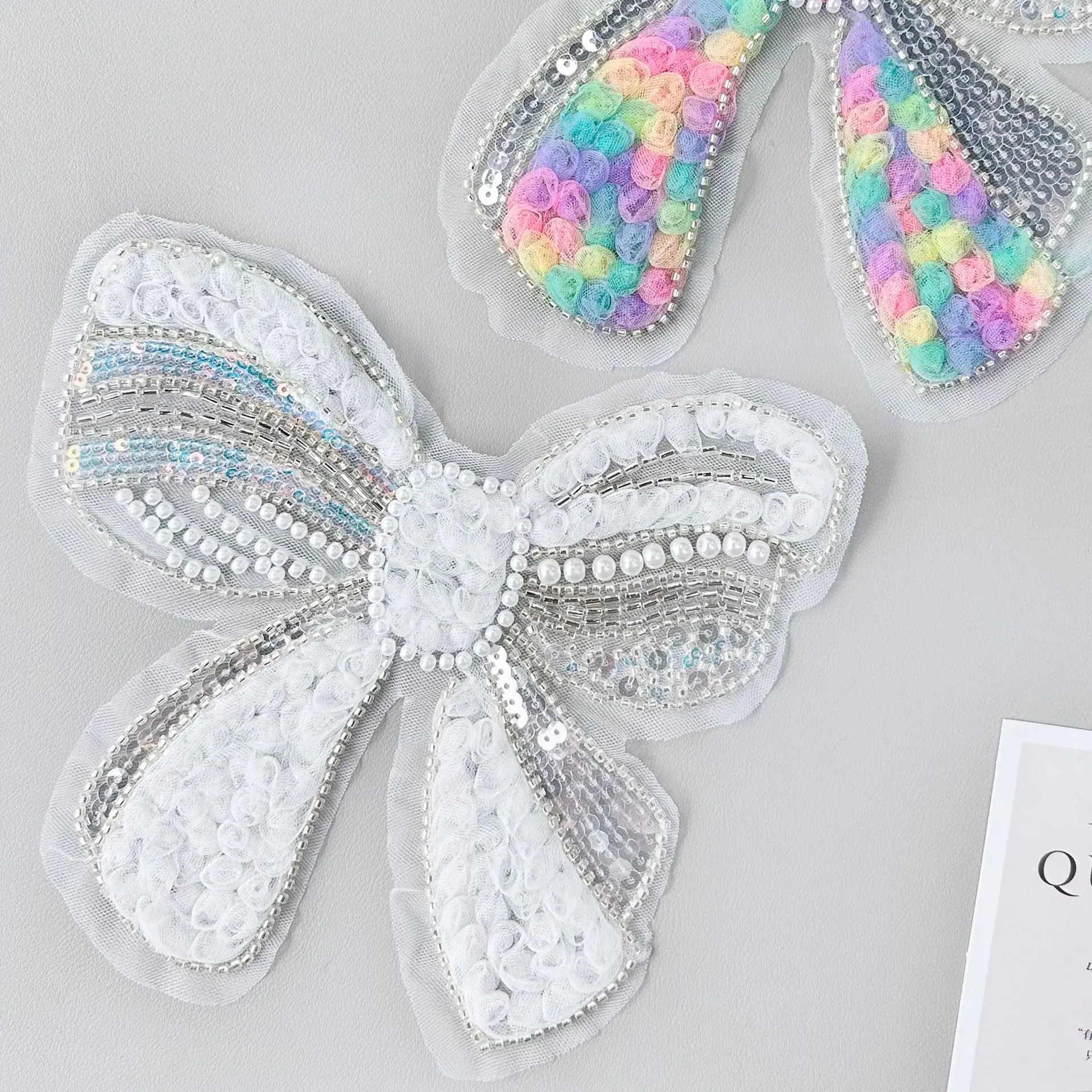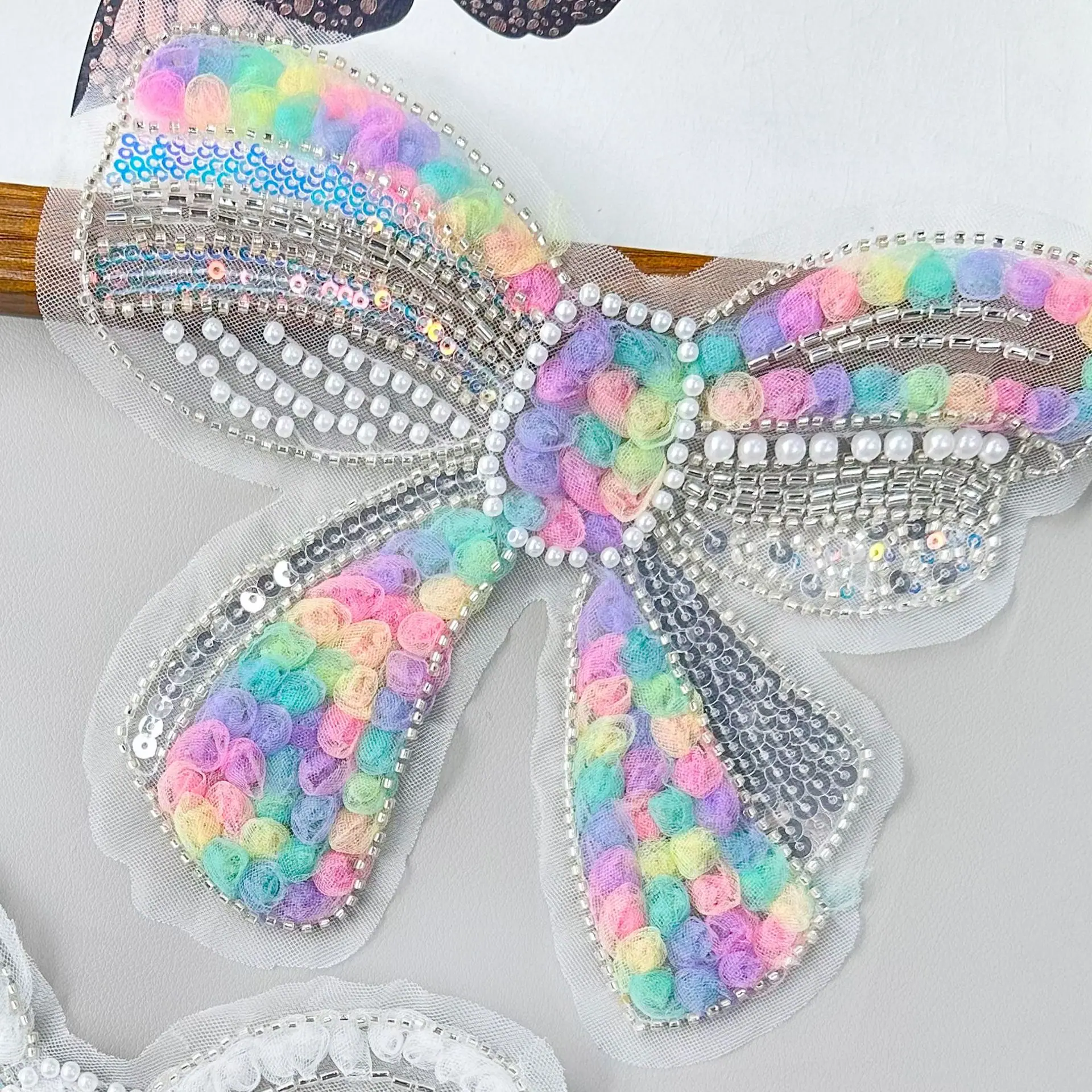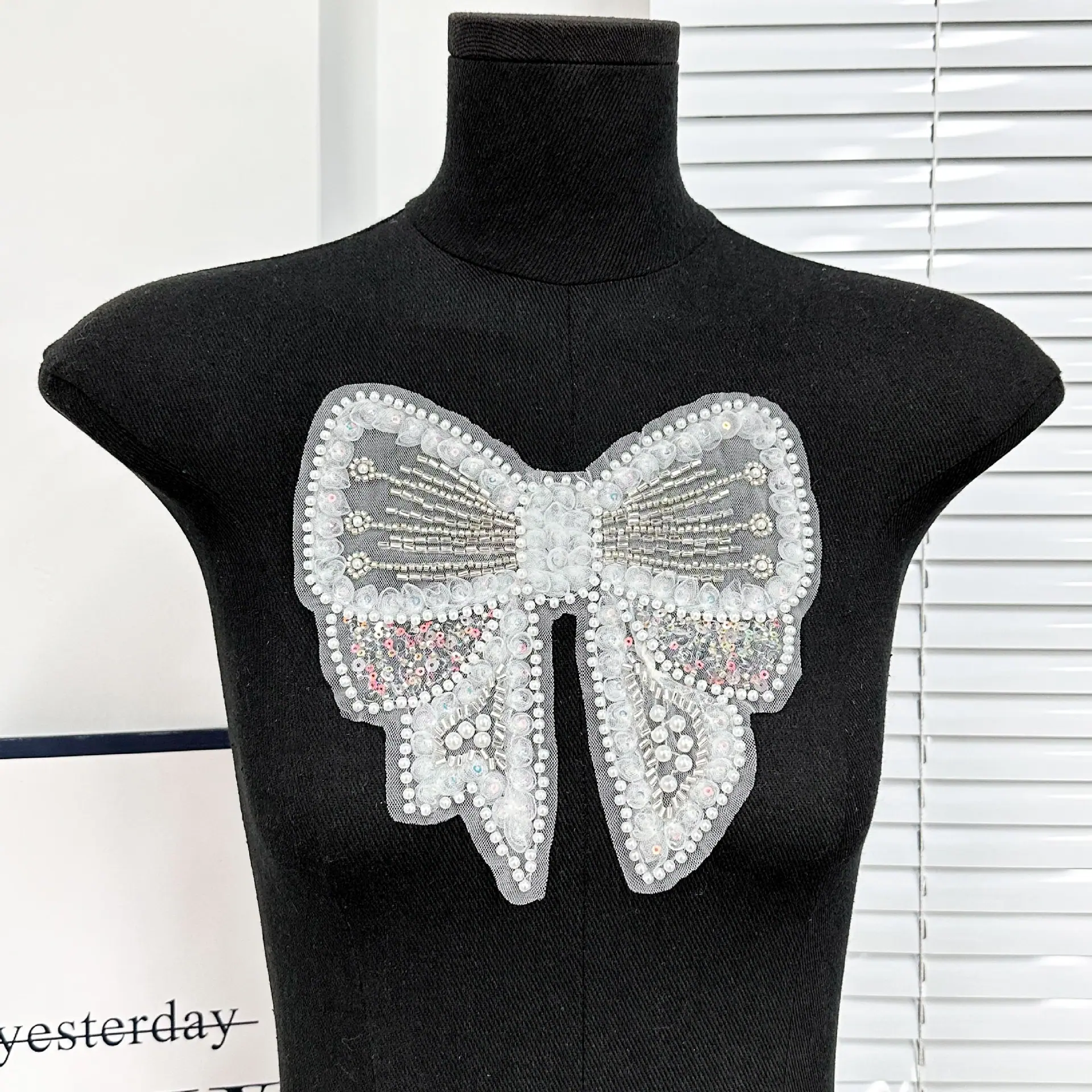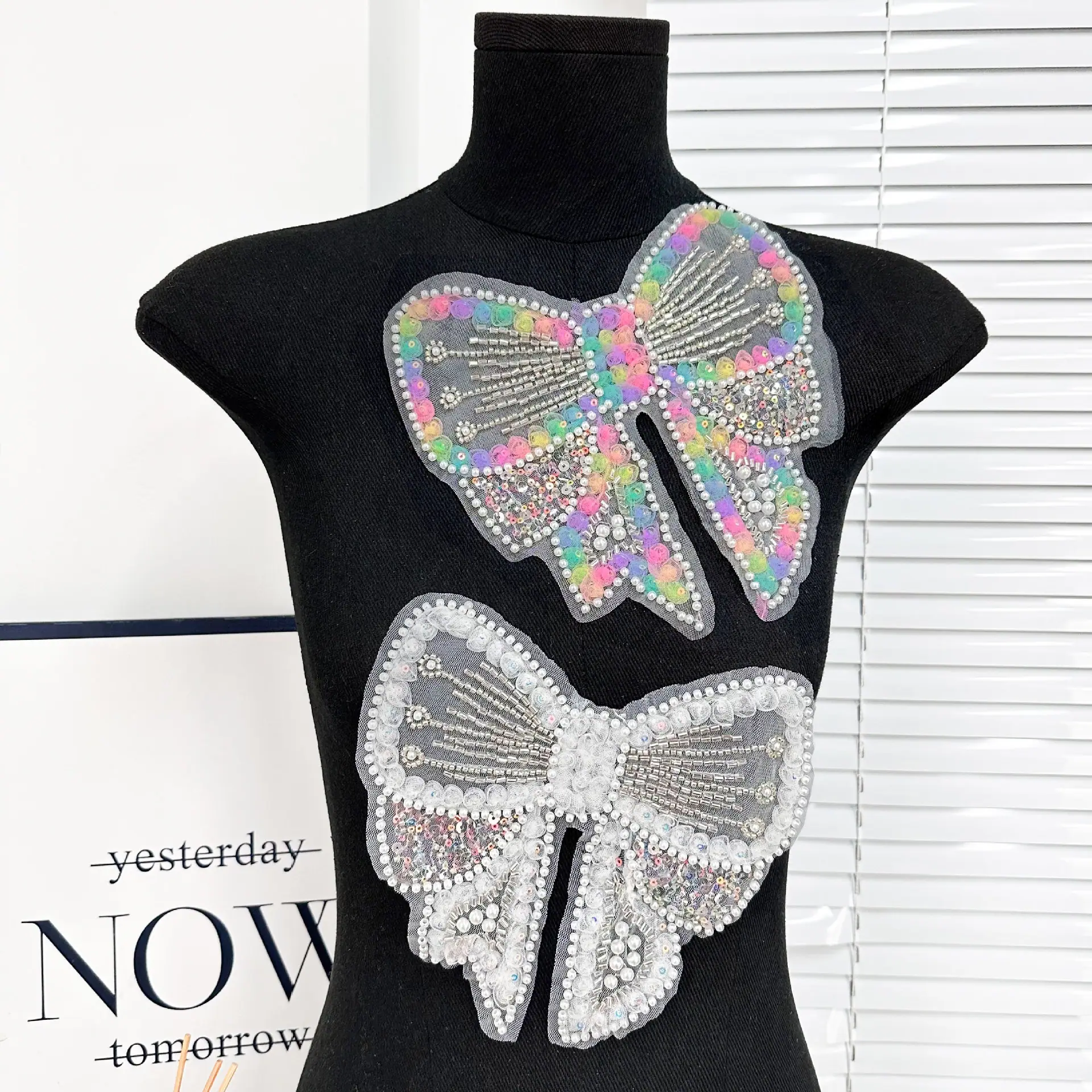 Encaje Lazo Malla Bicolor Cuentas Lentejuela Adhesivo de Tela Nuevo de Mujer Combinación con Todo Falda Suéter Decoración Accesorios de Ropa