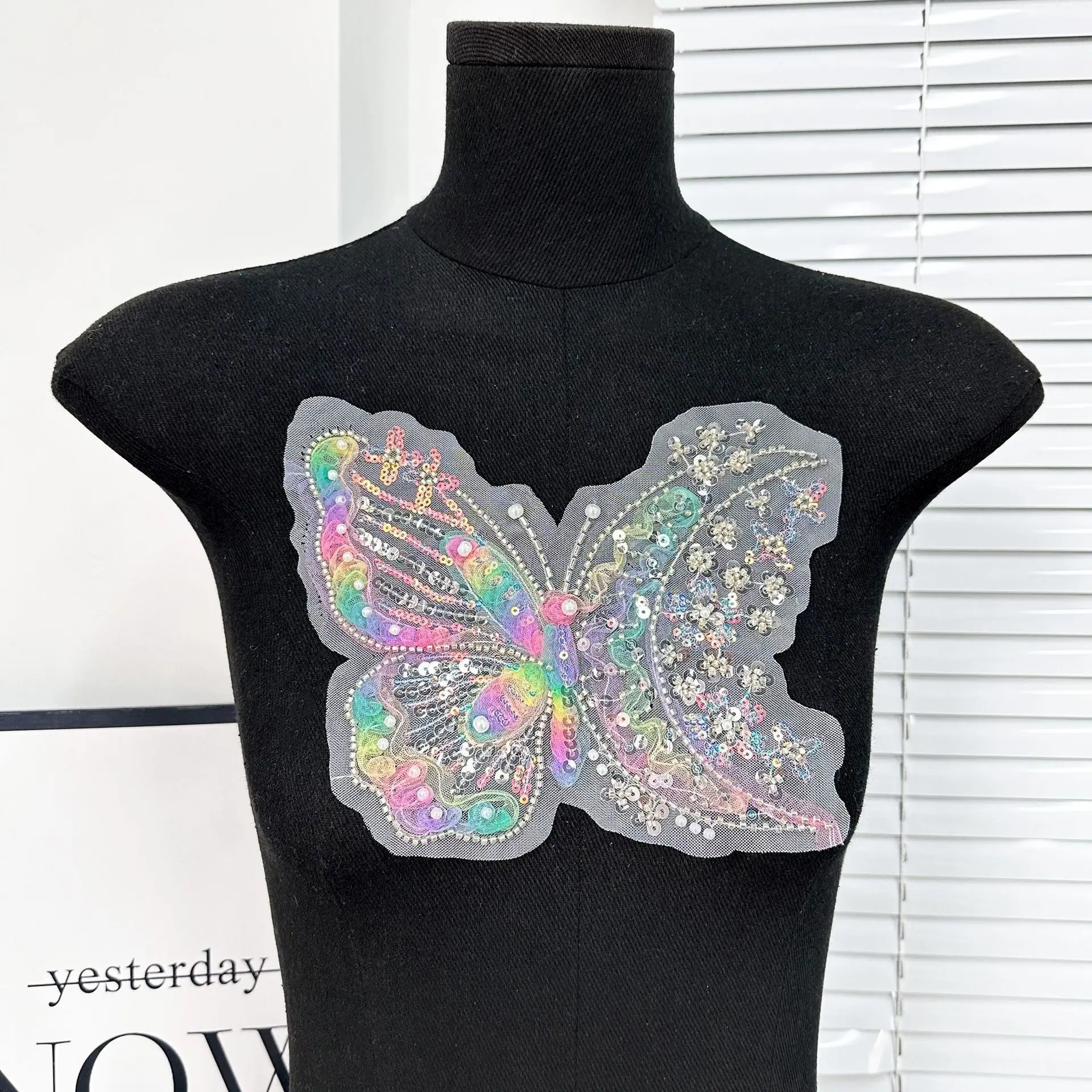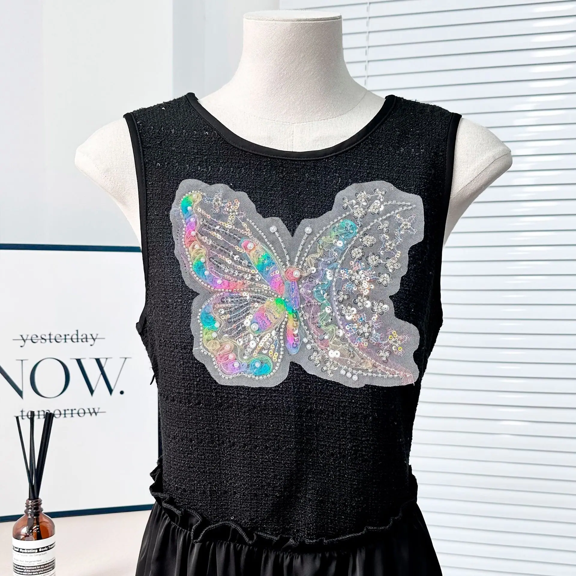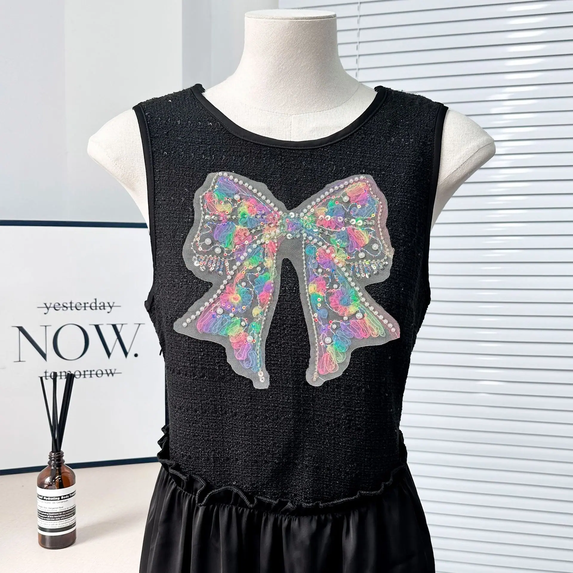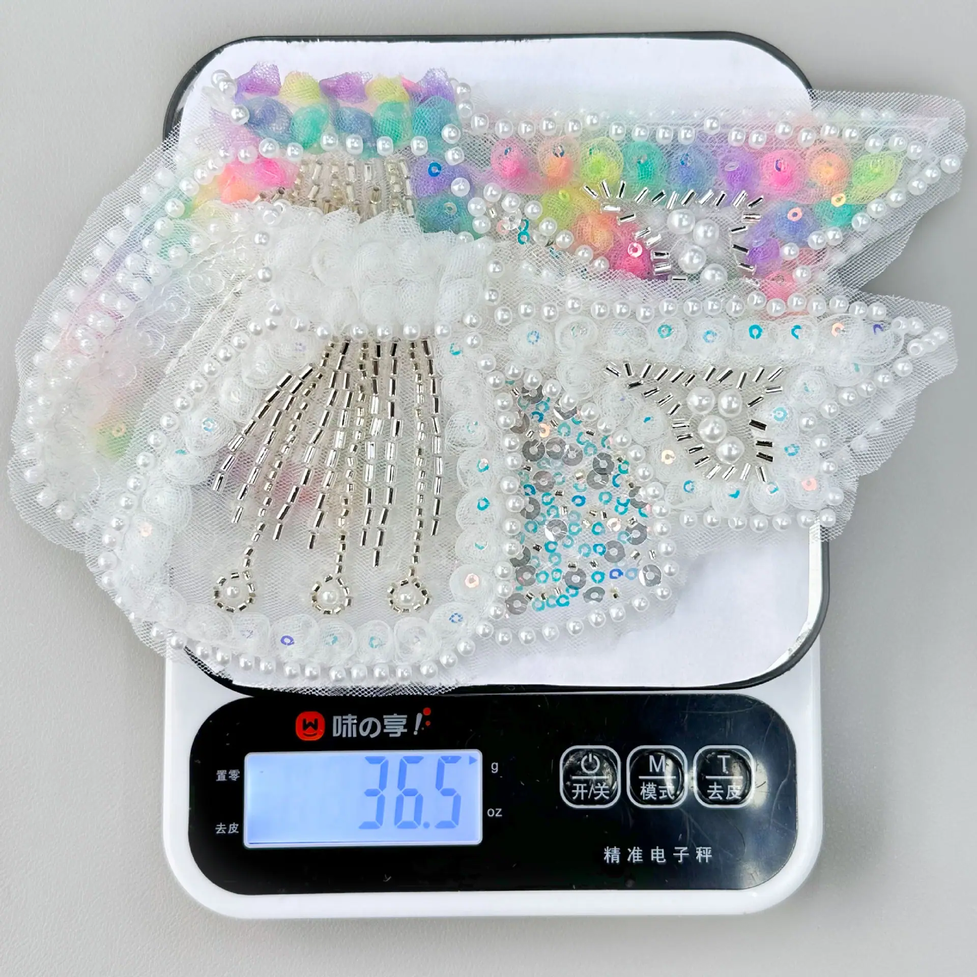 Encaje Lazo Malla Bicolor Cuentas Lentejuela Adhesivo de Tela Nuevo de Mujer Combinación con Todo Falda Suéter Decoración Accesorios de Ropa