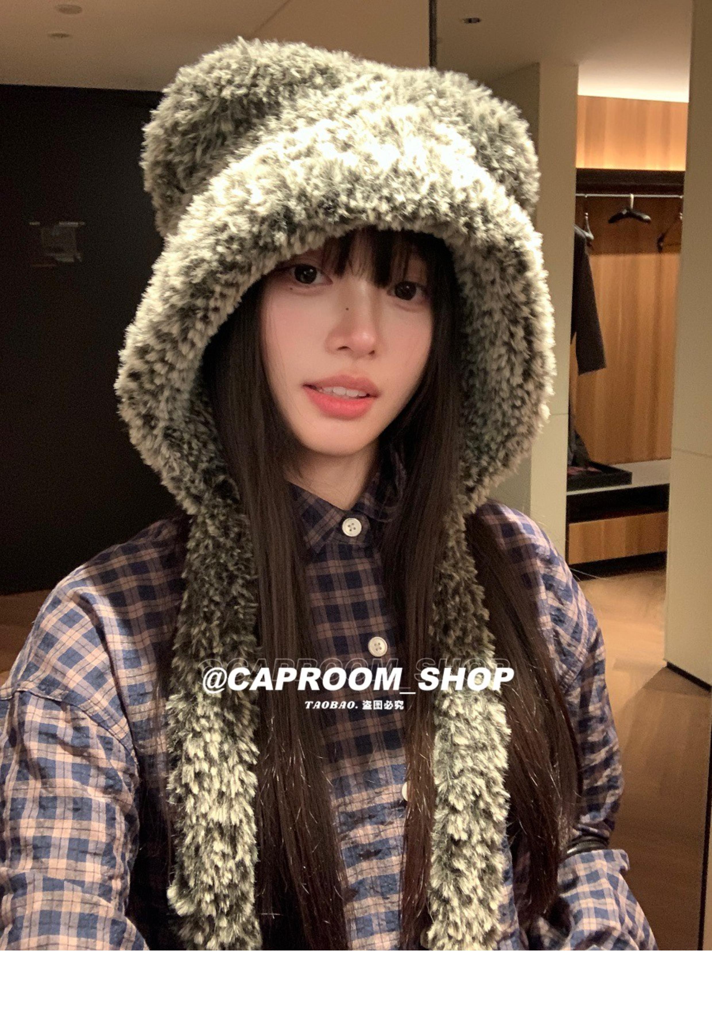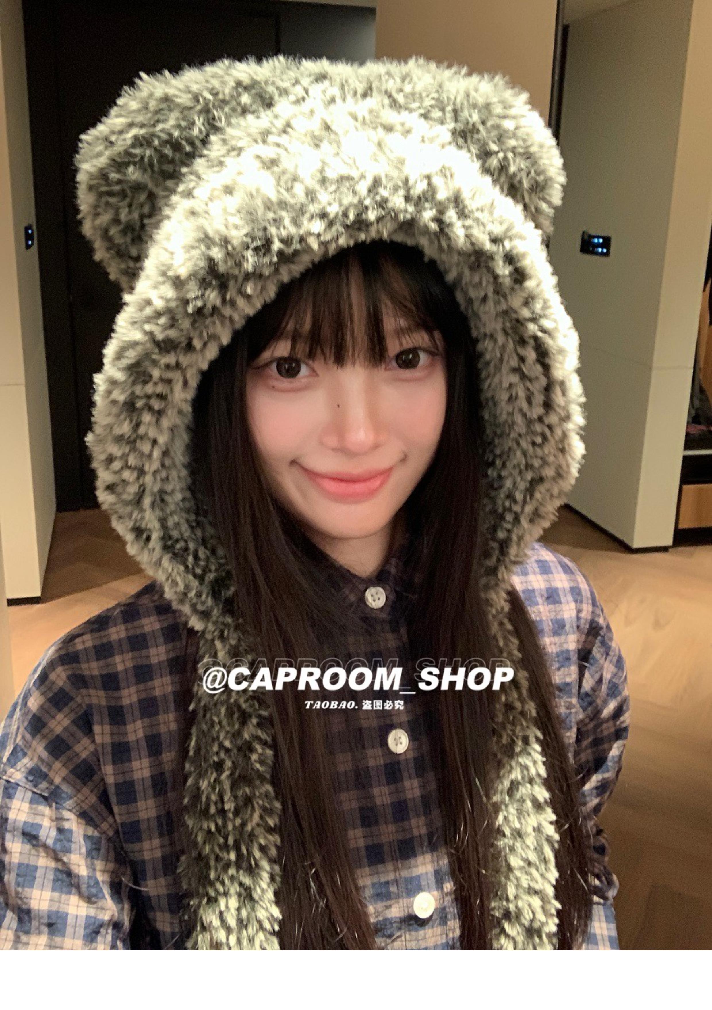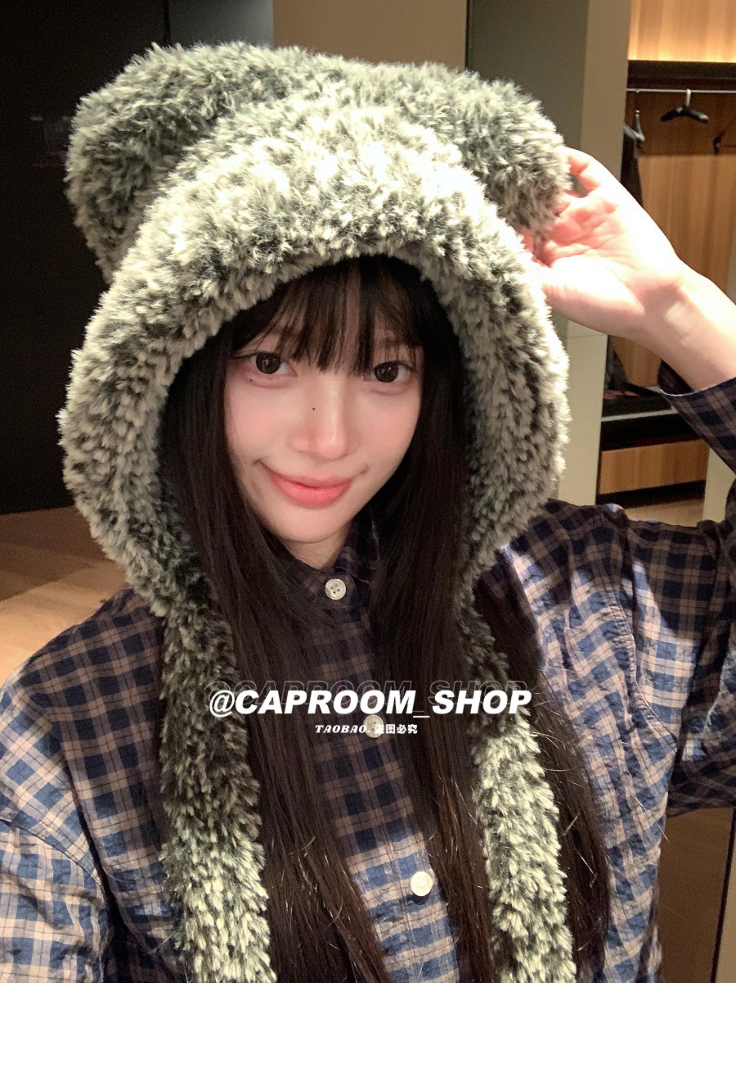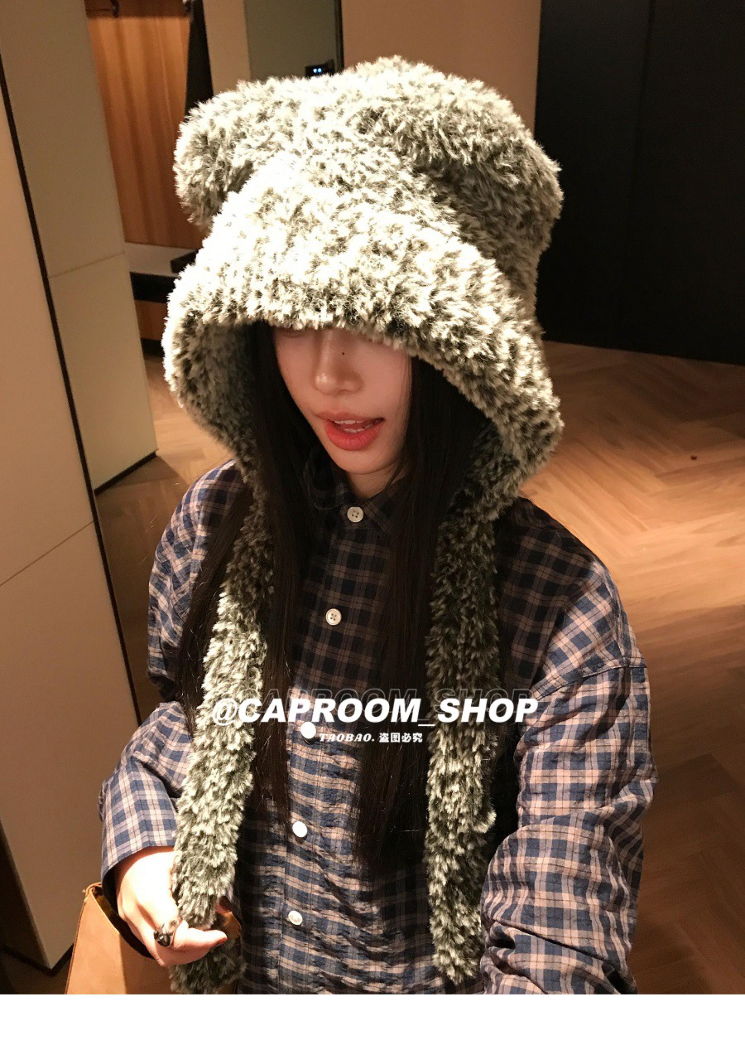 Gorro de invierno para mujer con orejas de oso, esponjoso y grueso, con cabeza grande y protección para las orejas, ideal para ciclismo de cara pequeña.