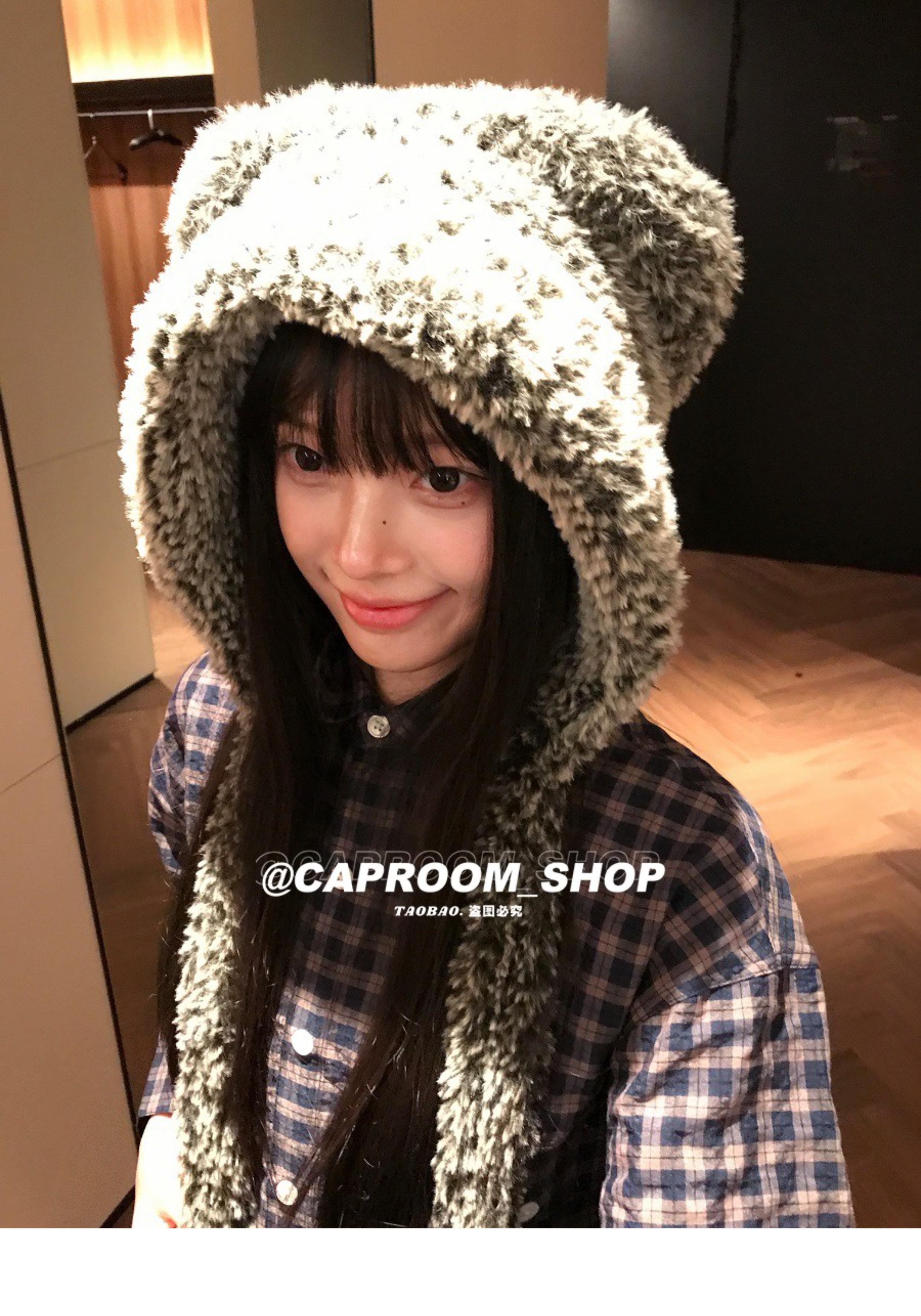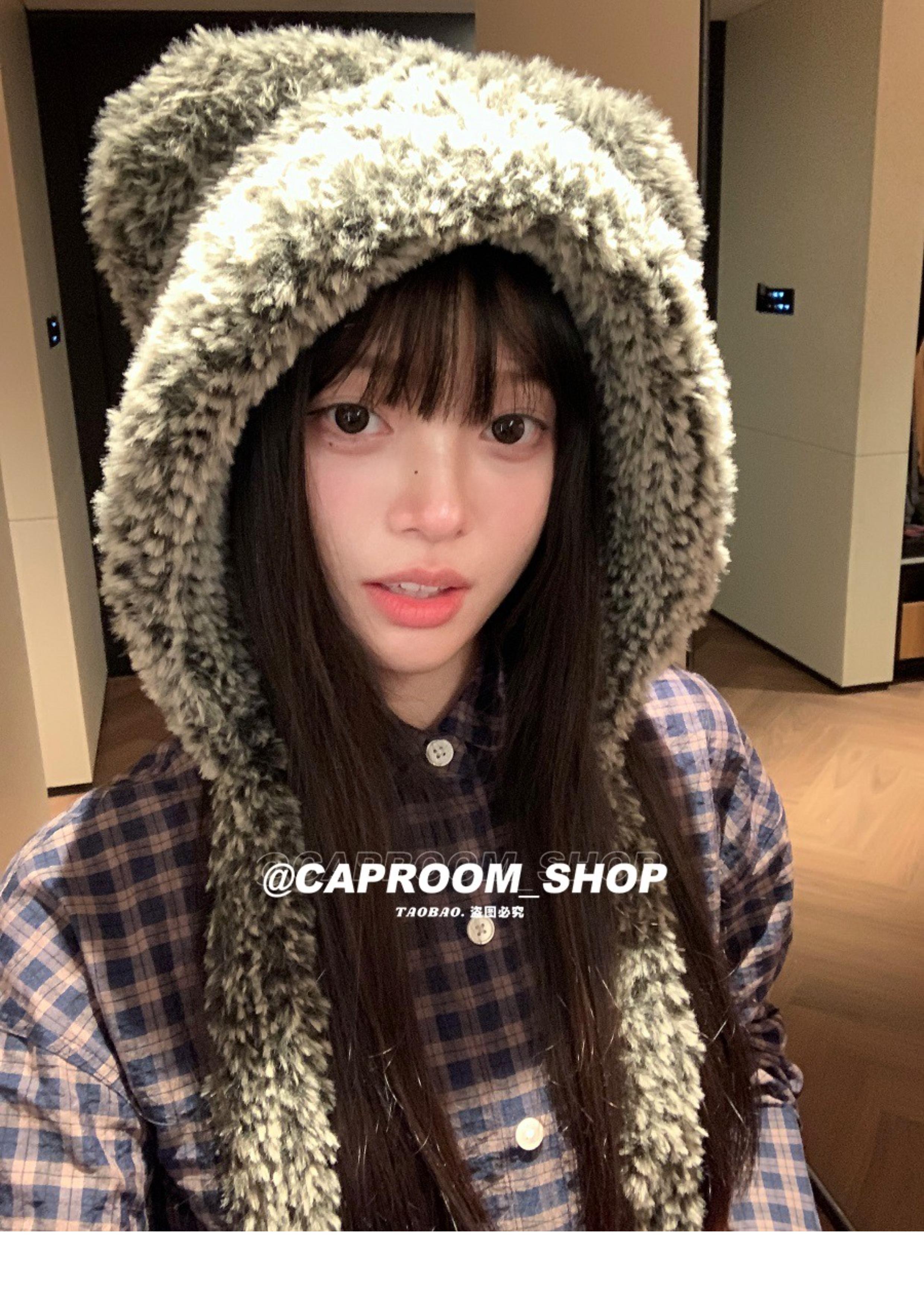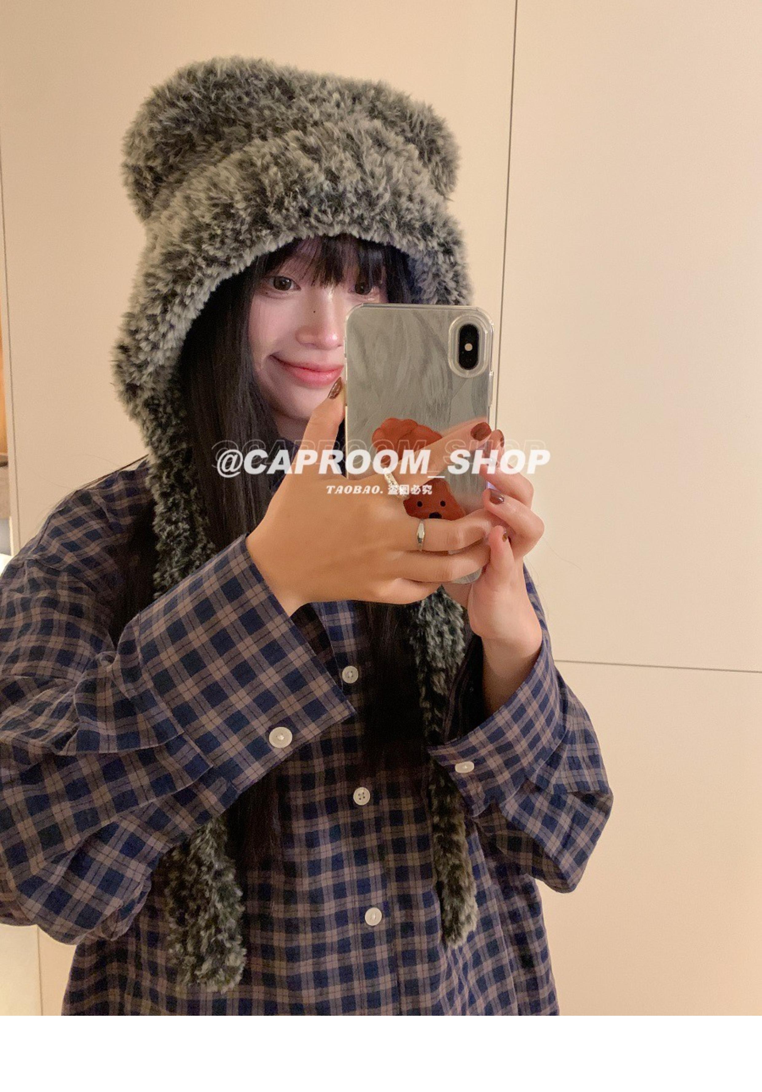 Gorro de invierno para mujer con orejas de oso, esponjoso y grueso, con cabeza grande y protección para las orejas, ideal para ciclismo de cara pequeña.