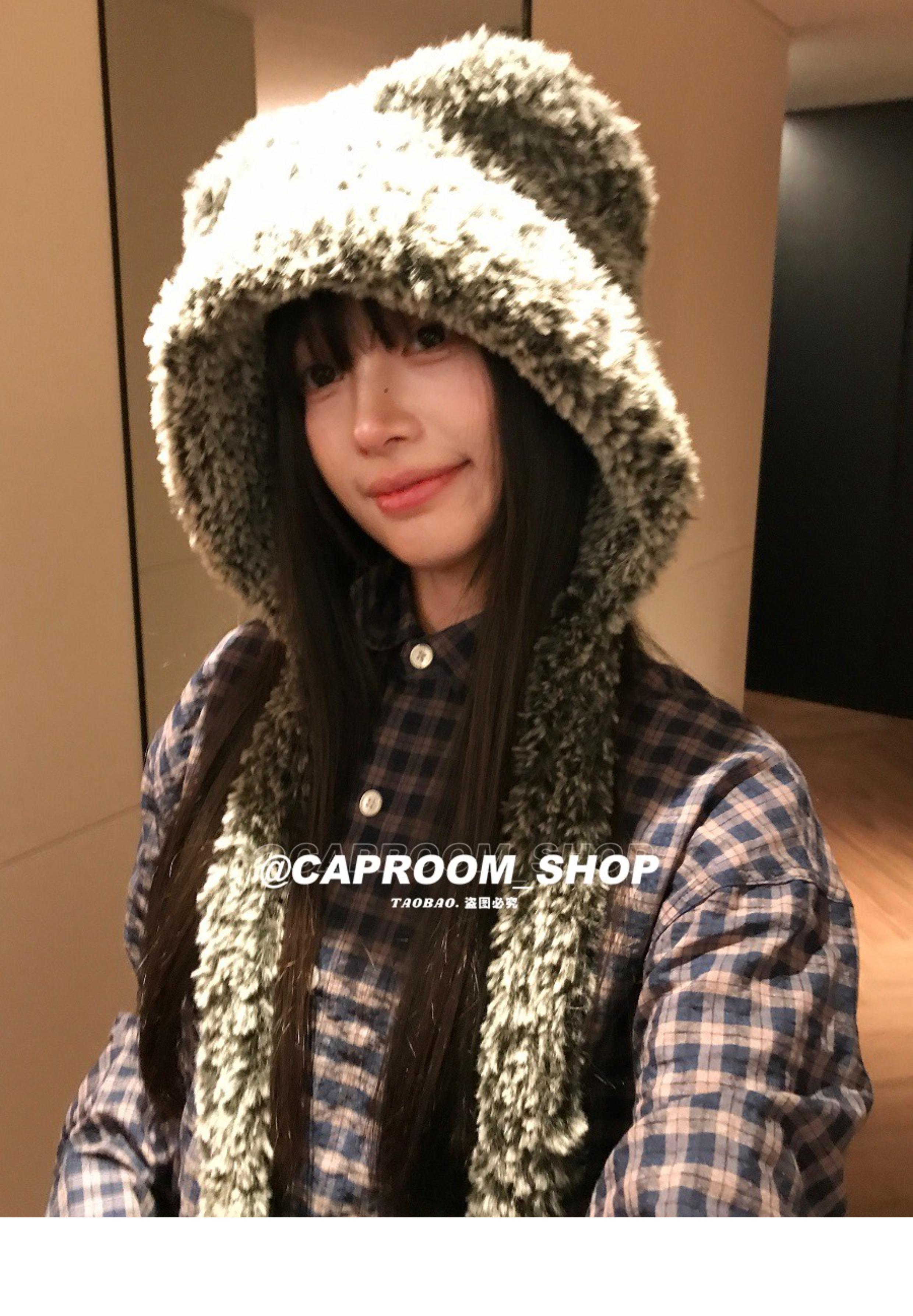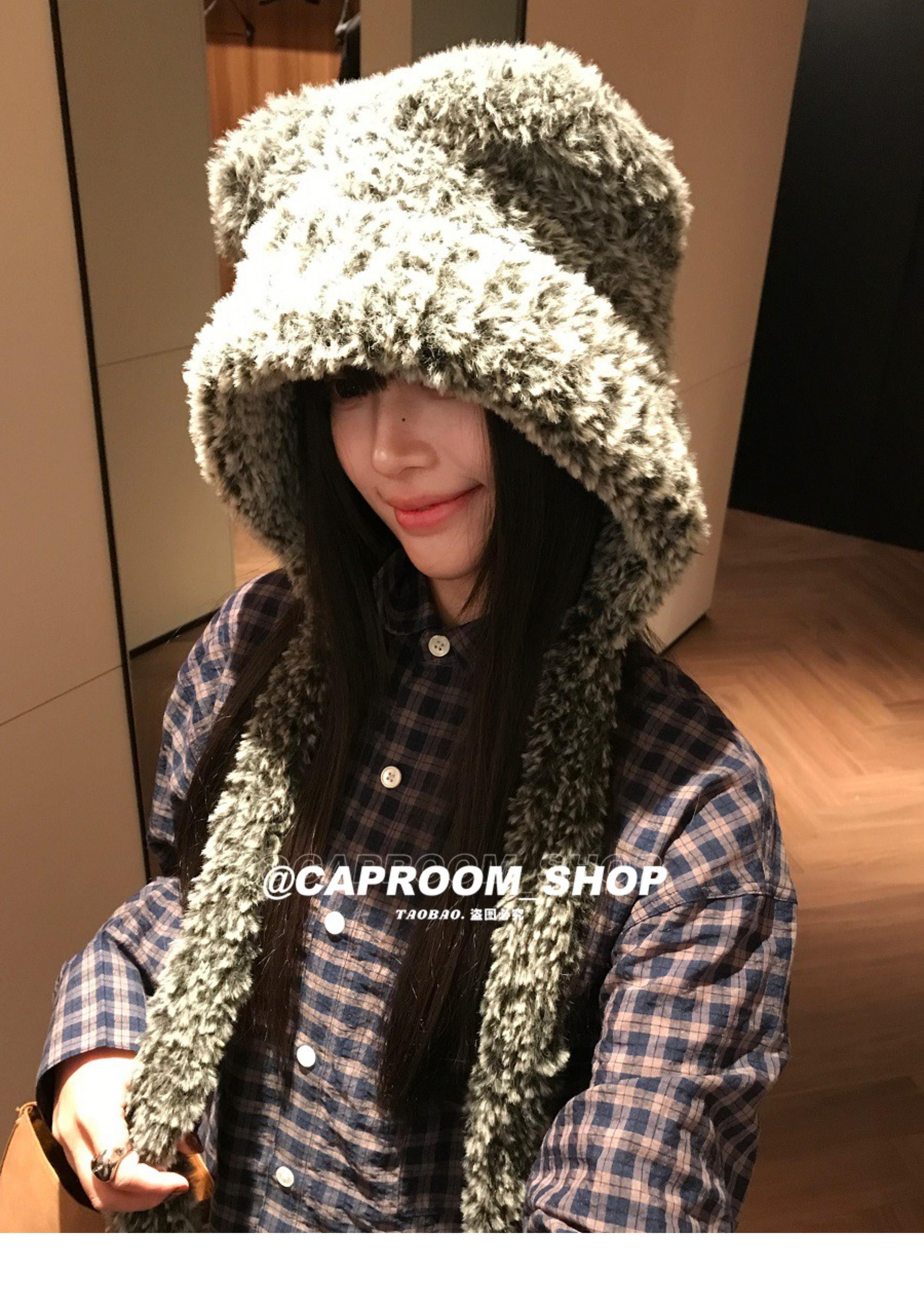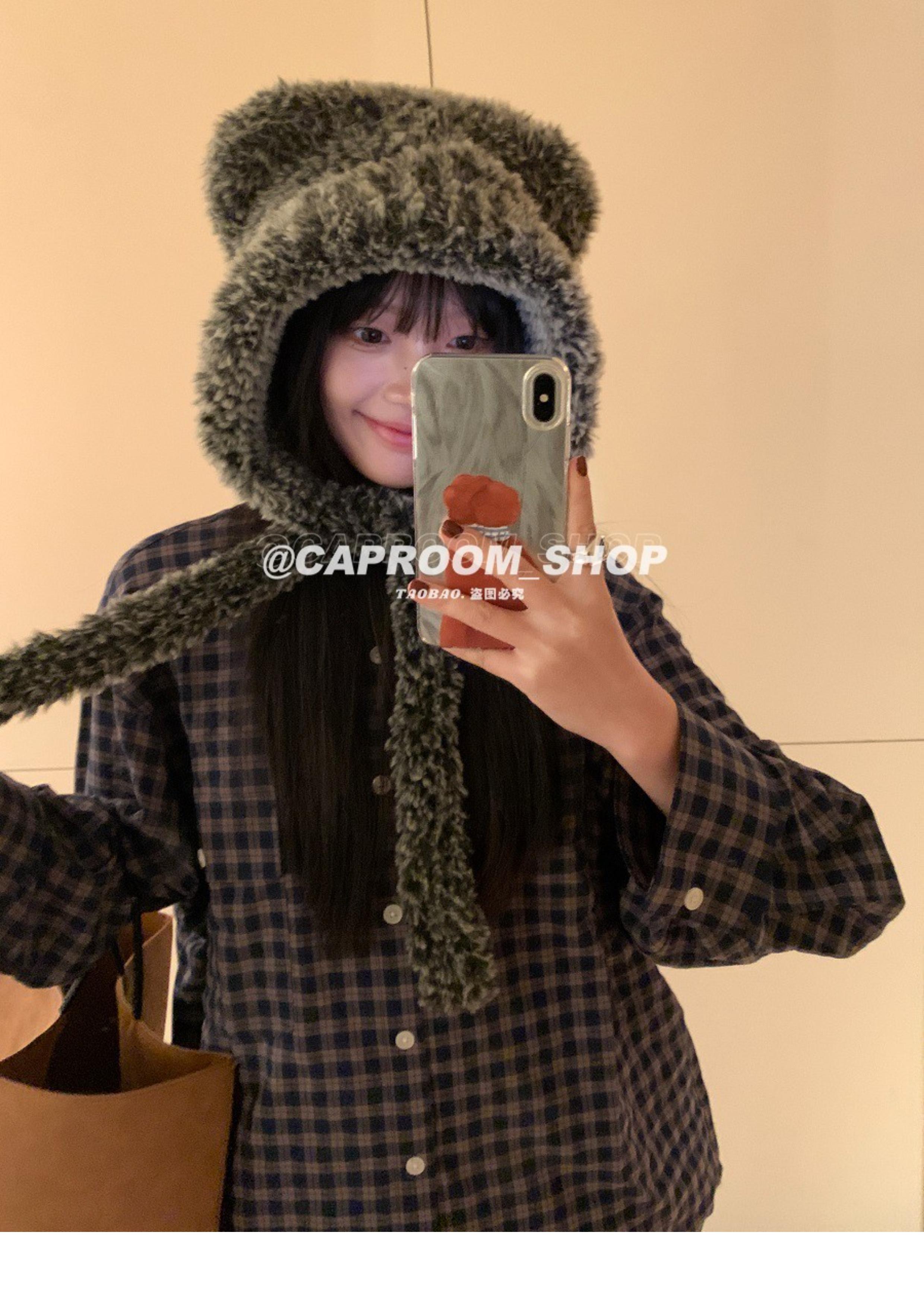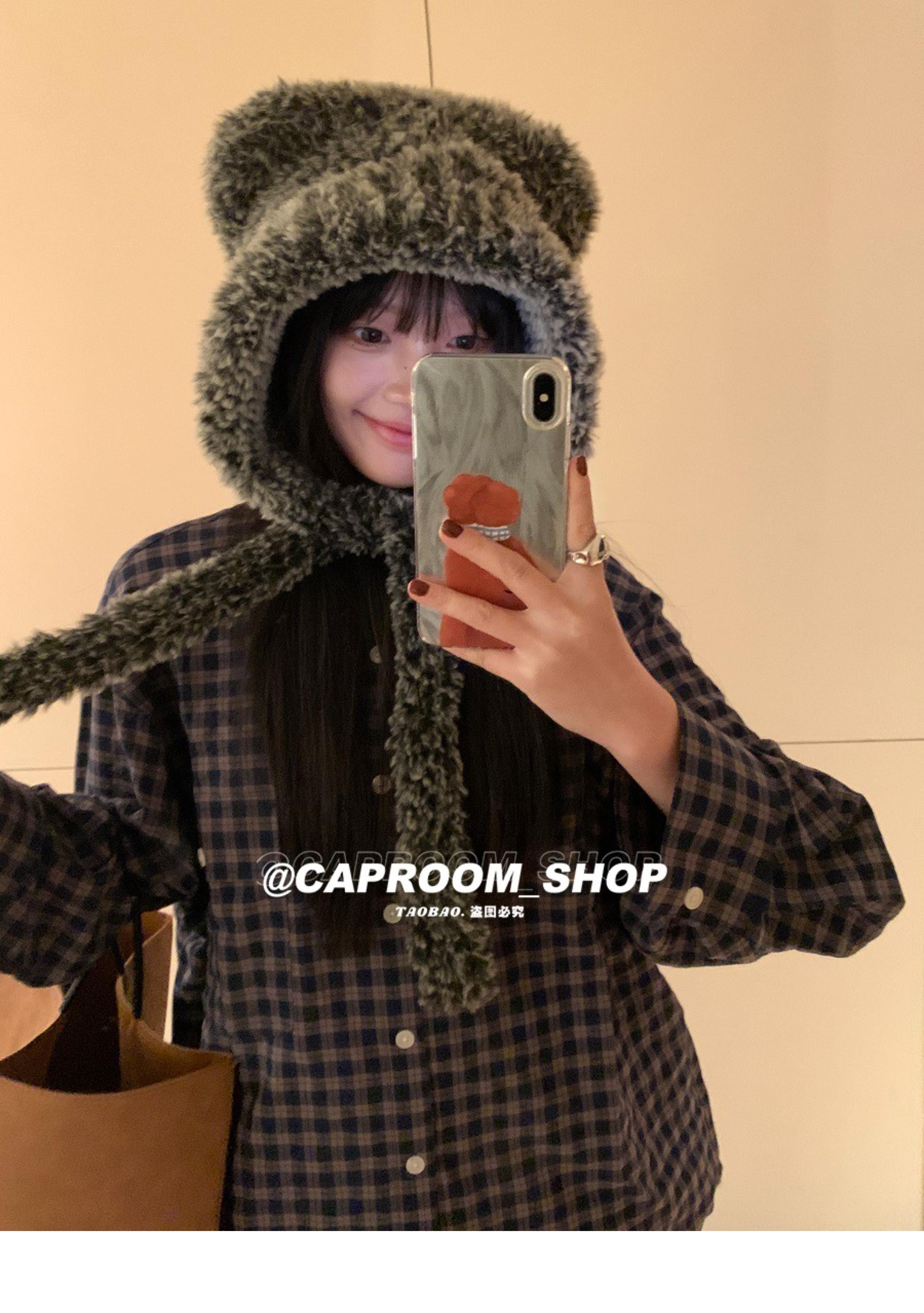Gorro de invierno para mujer con orejas de oso, esponjoso y grueso, con cabeza grande y protección para las orejas, ideal para ciclismo de cara pequeña.