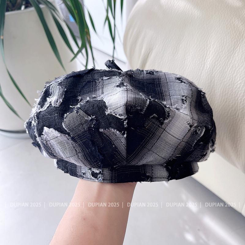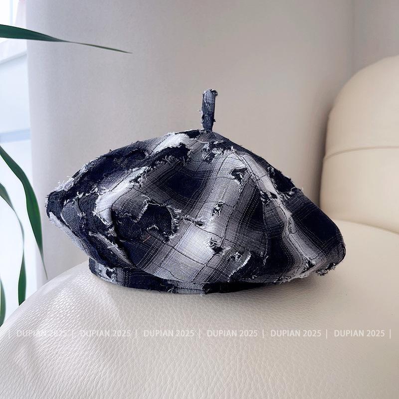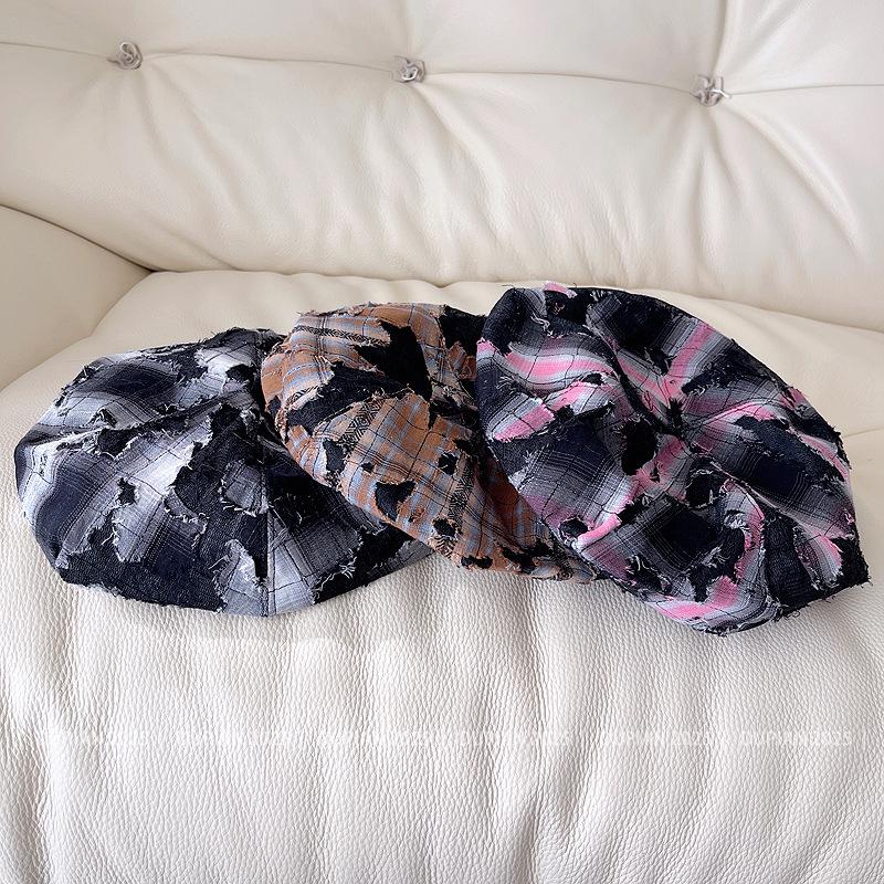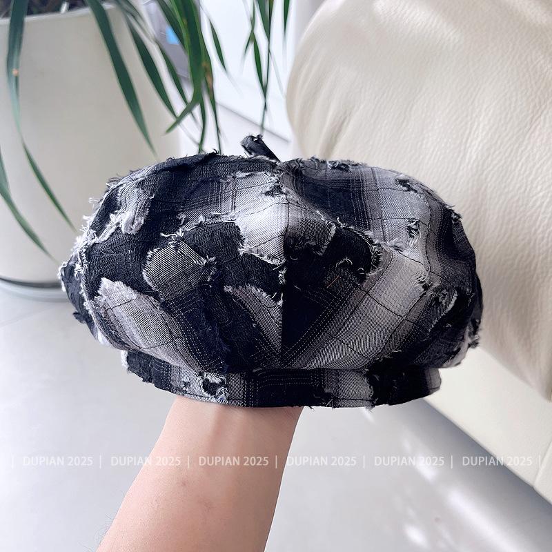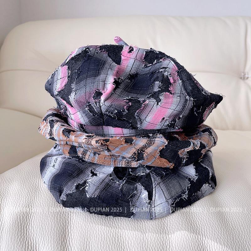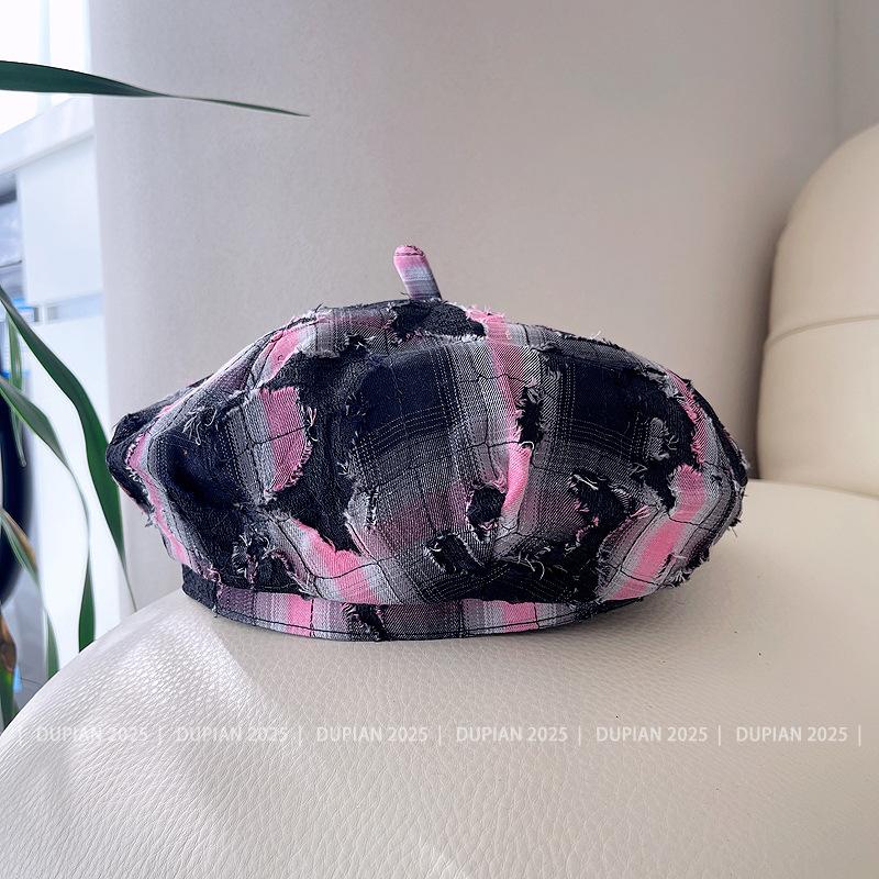 Boina de Moda a Cuadros de Encaje Roto 2025 para Mujer Primavera y Verano Nicho Versátil Sombrero de Pintor Elegante a la Moda Sombrero de Calabaza