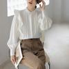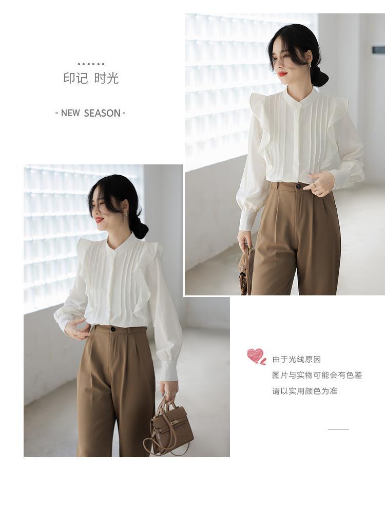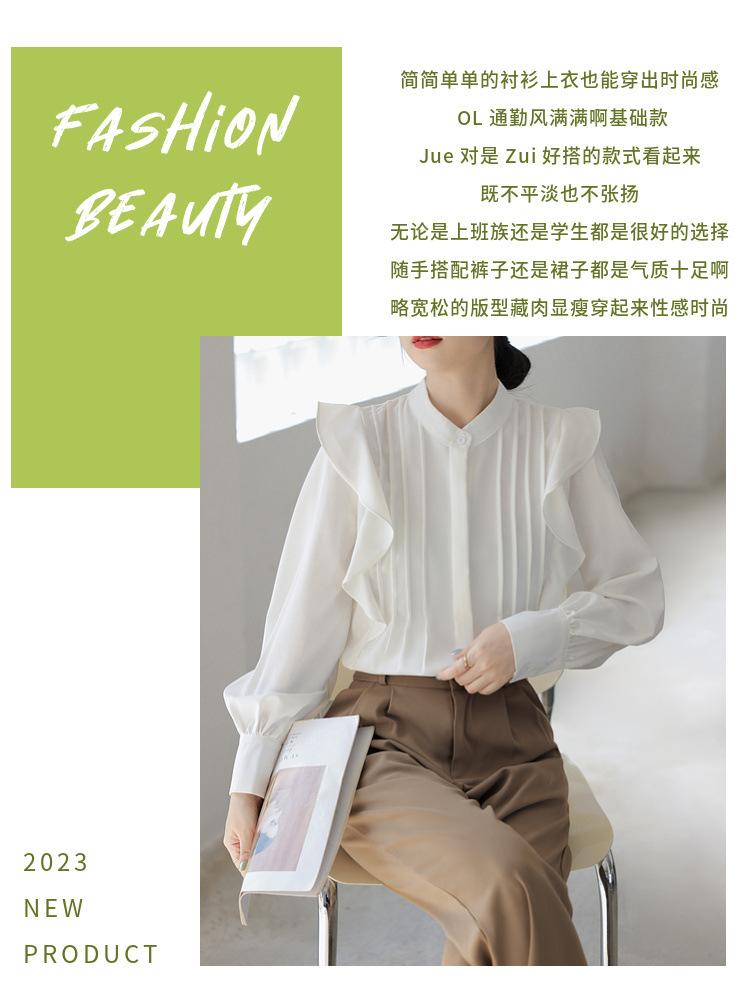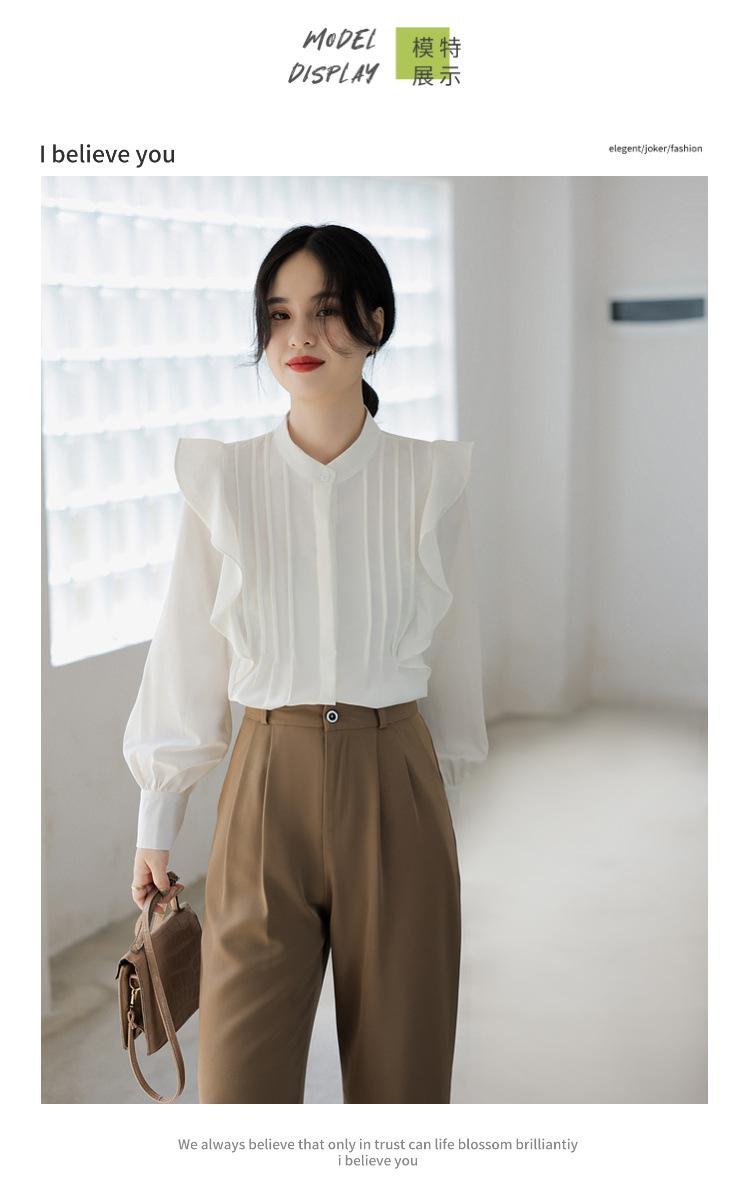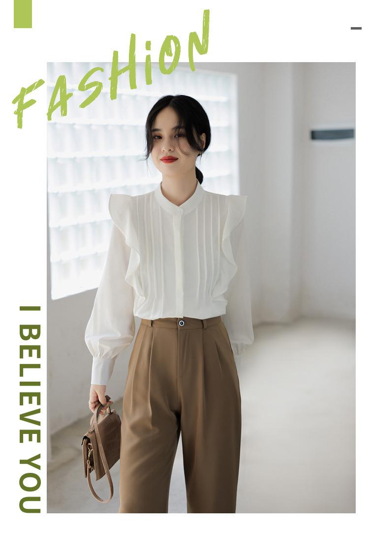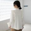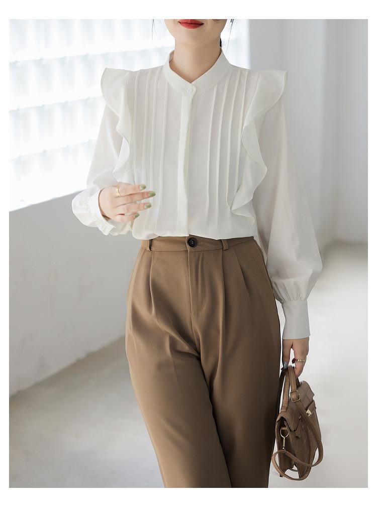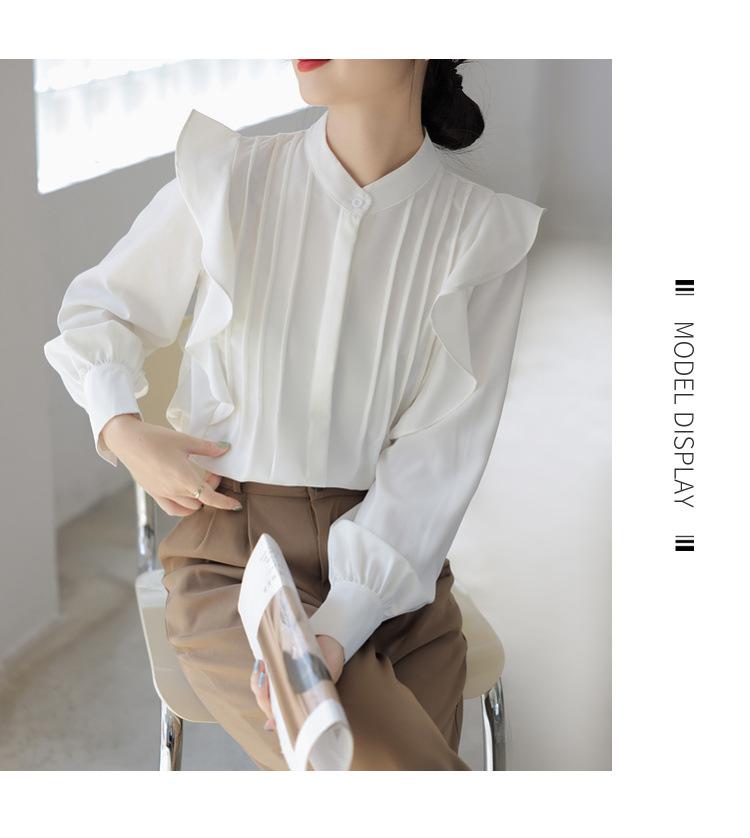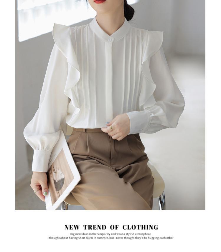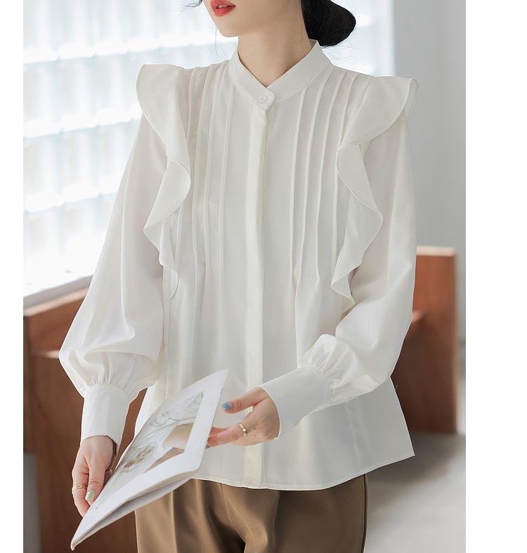 Camisa de Chifón Blanco Francés con Volantes de Manga Larga para Mujer 2025 Primavera y Otoño Nueva Moda Diseños Tops