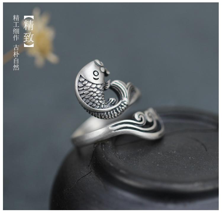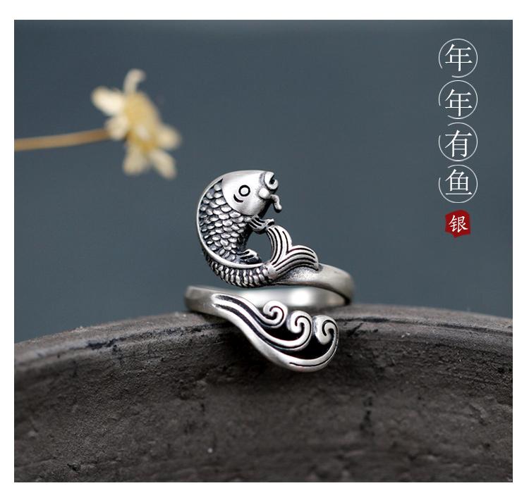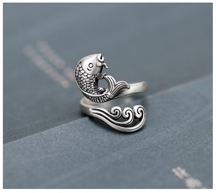 Anillo de Pescado de Año Nuevo 2024 Apertura para Mujer Oro y Plata Koi Retro Tendencia Nacional Clásico Casual Joyería de Anillo Personalizado