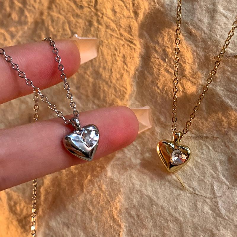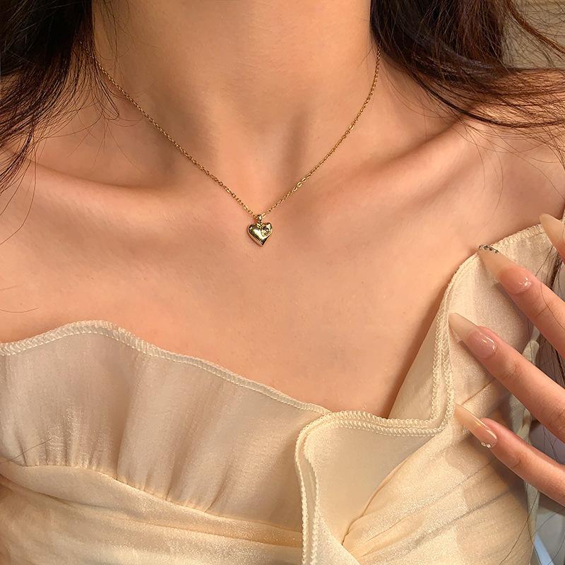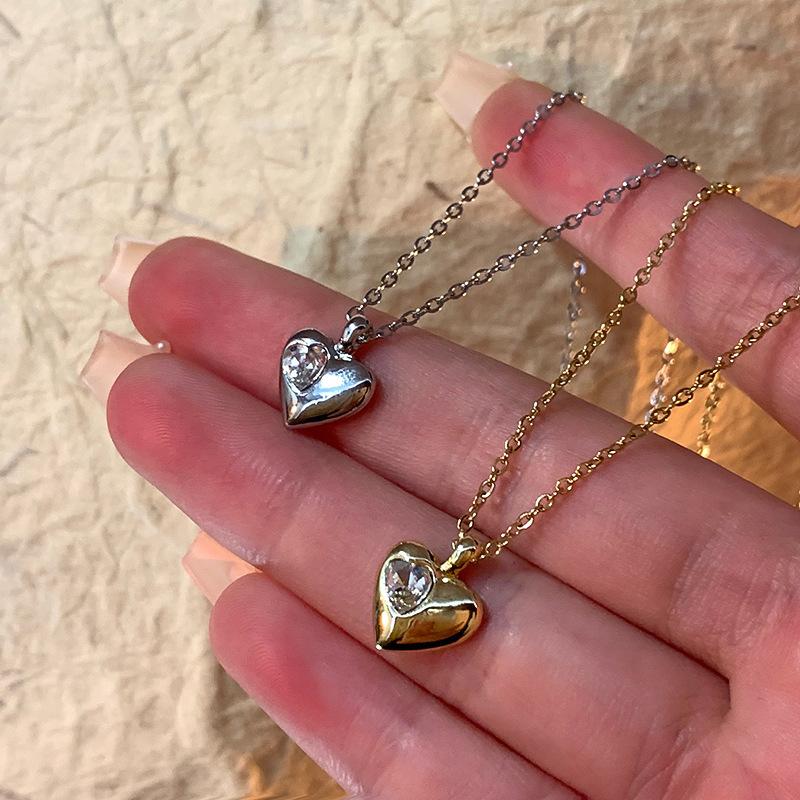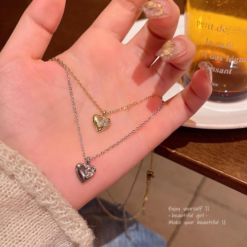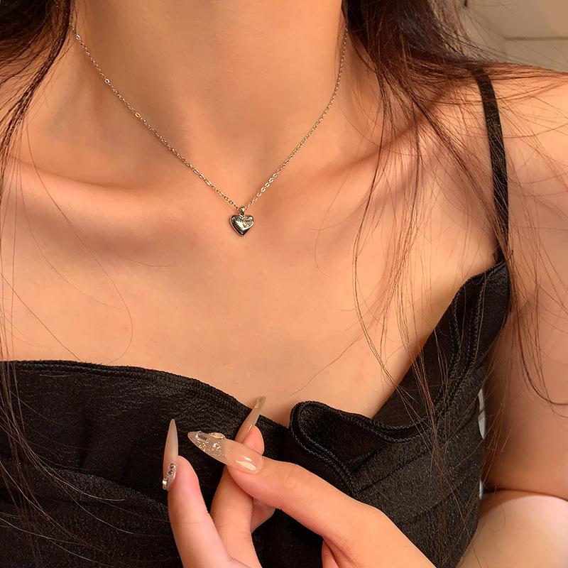 Collar de Amor de Zirconia Simple Super Brillante Estilo Popular Coreano para Mujer Cadena de Clavícula Nicho de Lujo Ligero Estilo Frío Collar de Celebridad de Internet