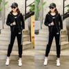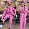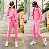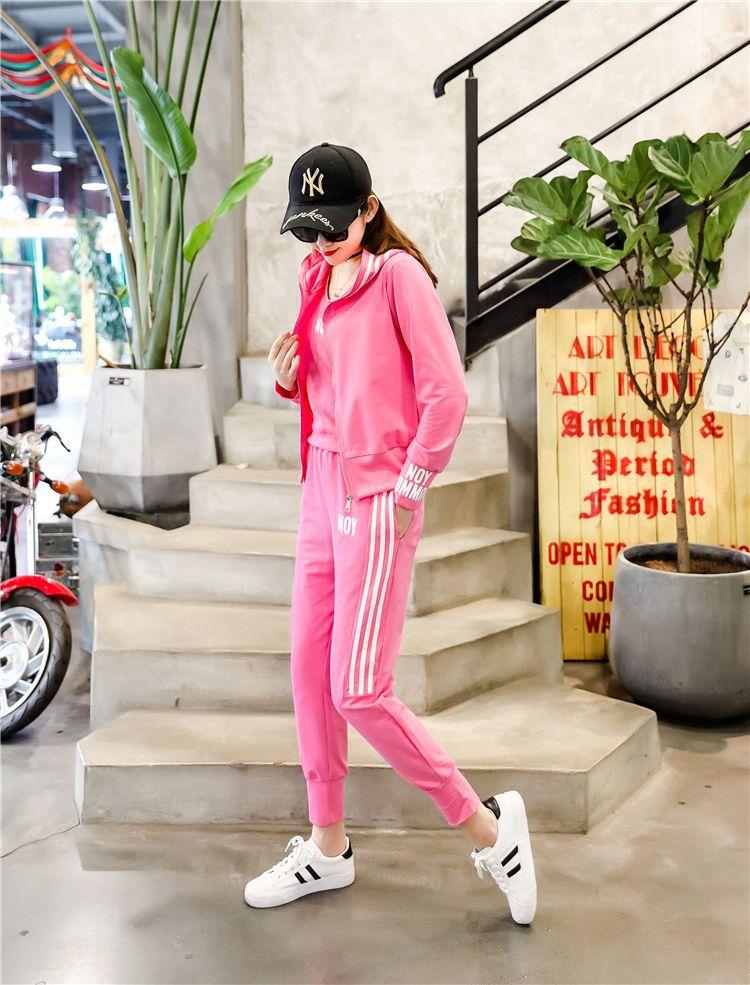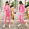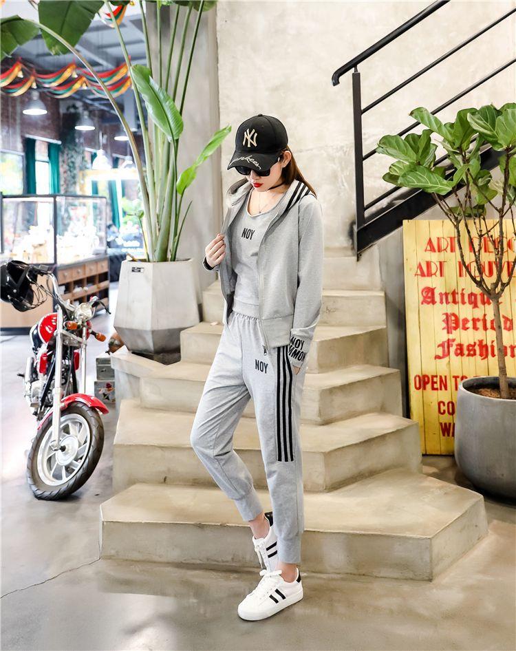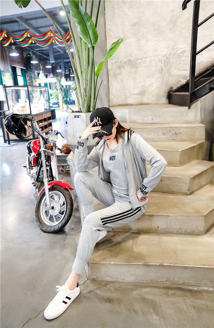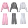 [Conjunto de tres piezas] Primavera y otoño 2024 Net Red Cross-border Europa y América nueva moda cremallera capucha suéter traje de rayas mujeres