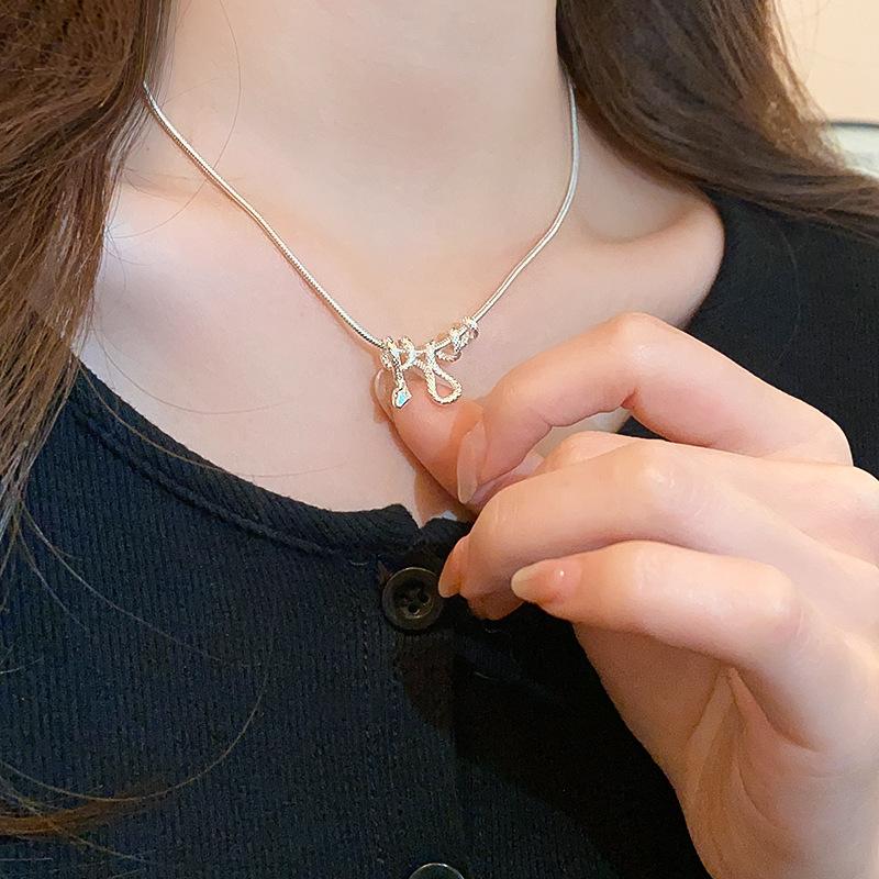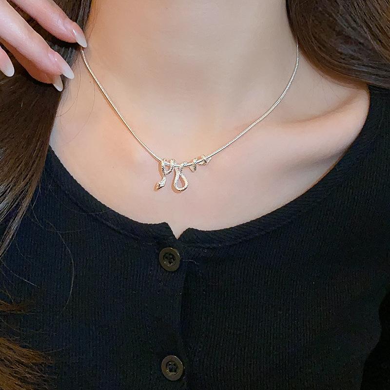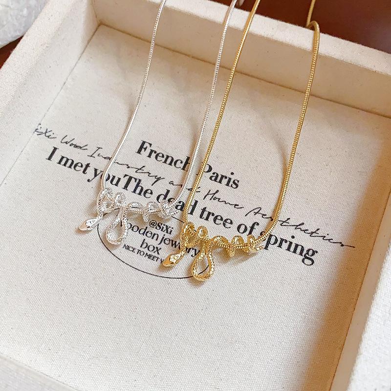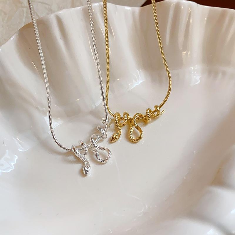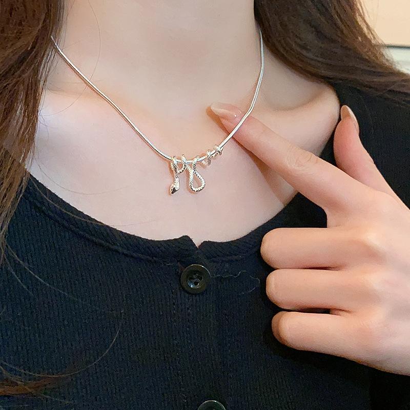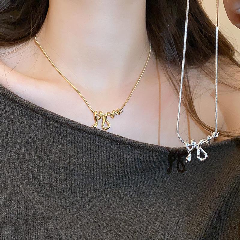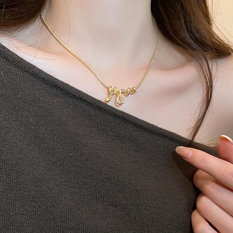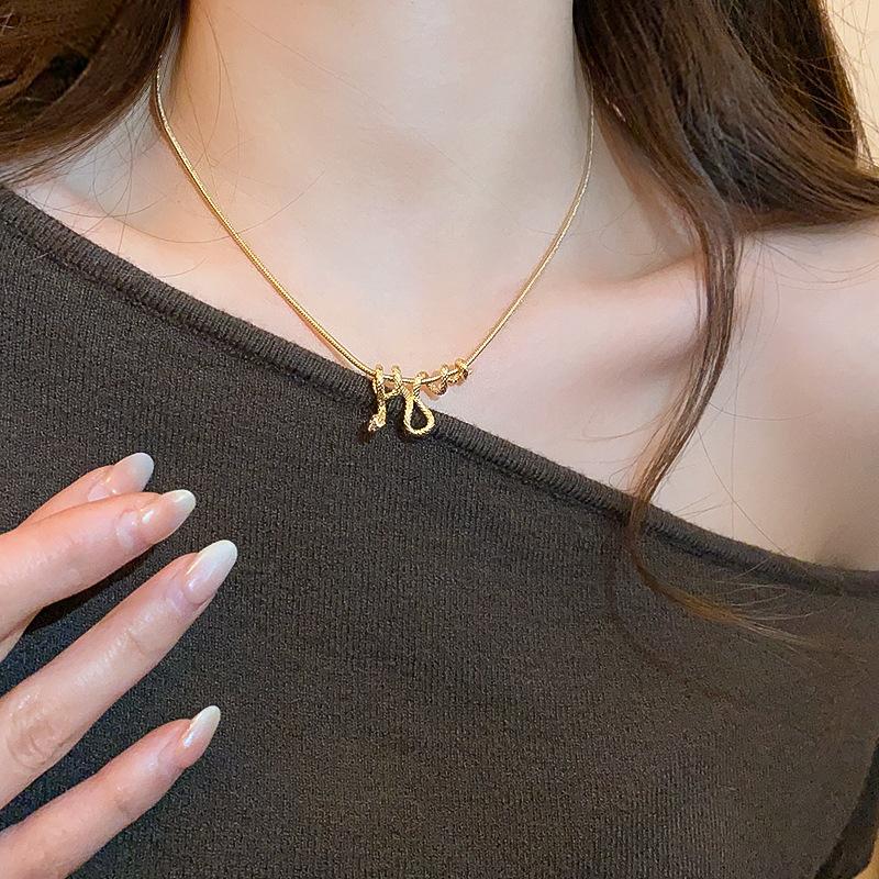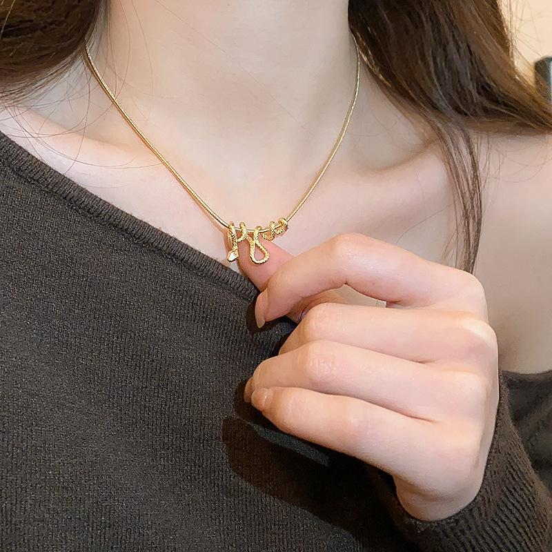 Collar de oro auténtico con diseño de serpiente pequeña, chapado en oro y arena, accesorios de moda sencillos para el día a día, joyería ligera de lujo que combina con todo, sentido de alta gama para mujer.