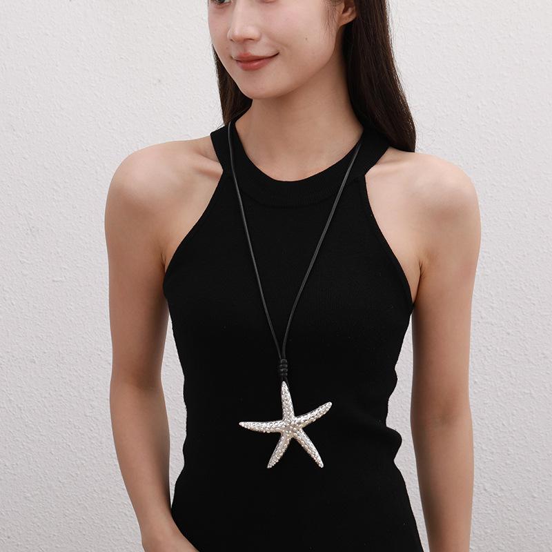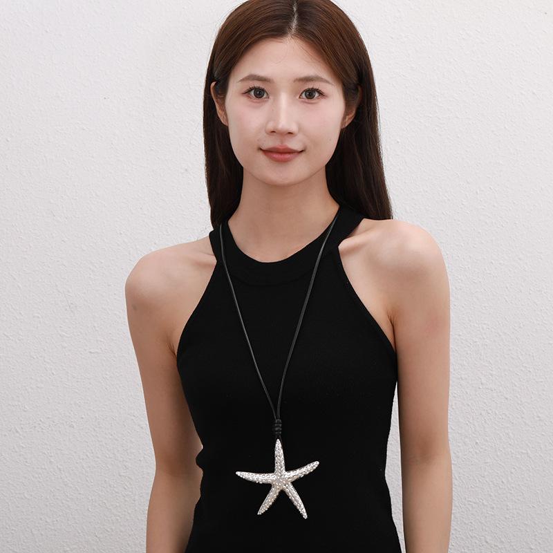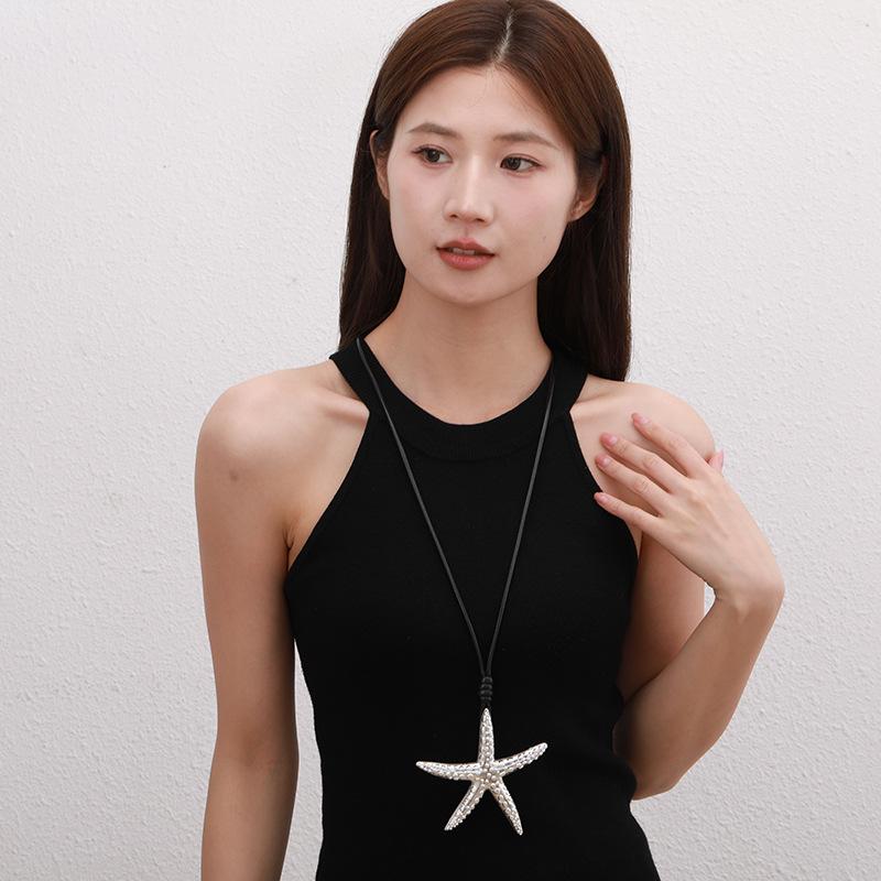Nuevo Amazon para collar largo transfronterizo con colgante de estrella de mar, cadena de suéter de moda para damas con personalidad, venta al por mayor en Europa y Estados Unidos
