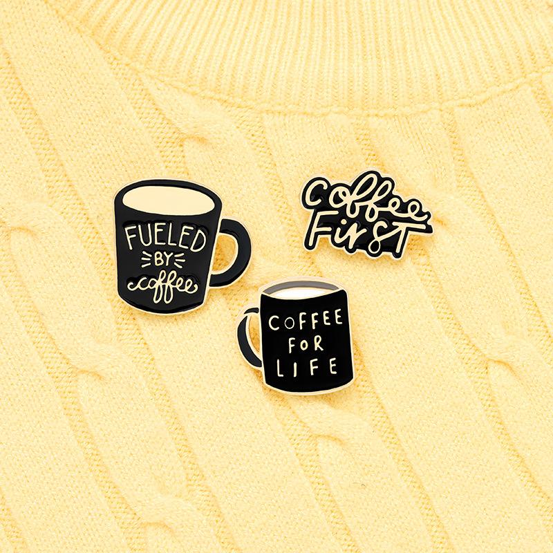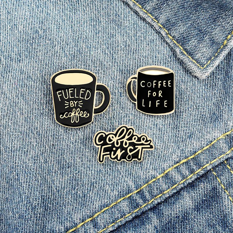 Broche de Aleación con Forma de Taza de Café con Letra Creativa de Dibujos Animados Europeos y Americanos, Esmalte Goteado de Aceite Personalizado, Insignia de Letra Inglesa