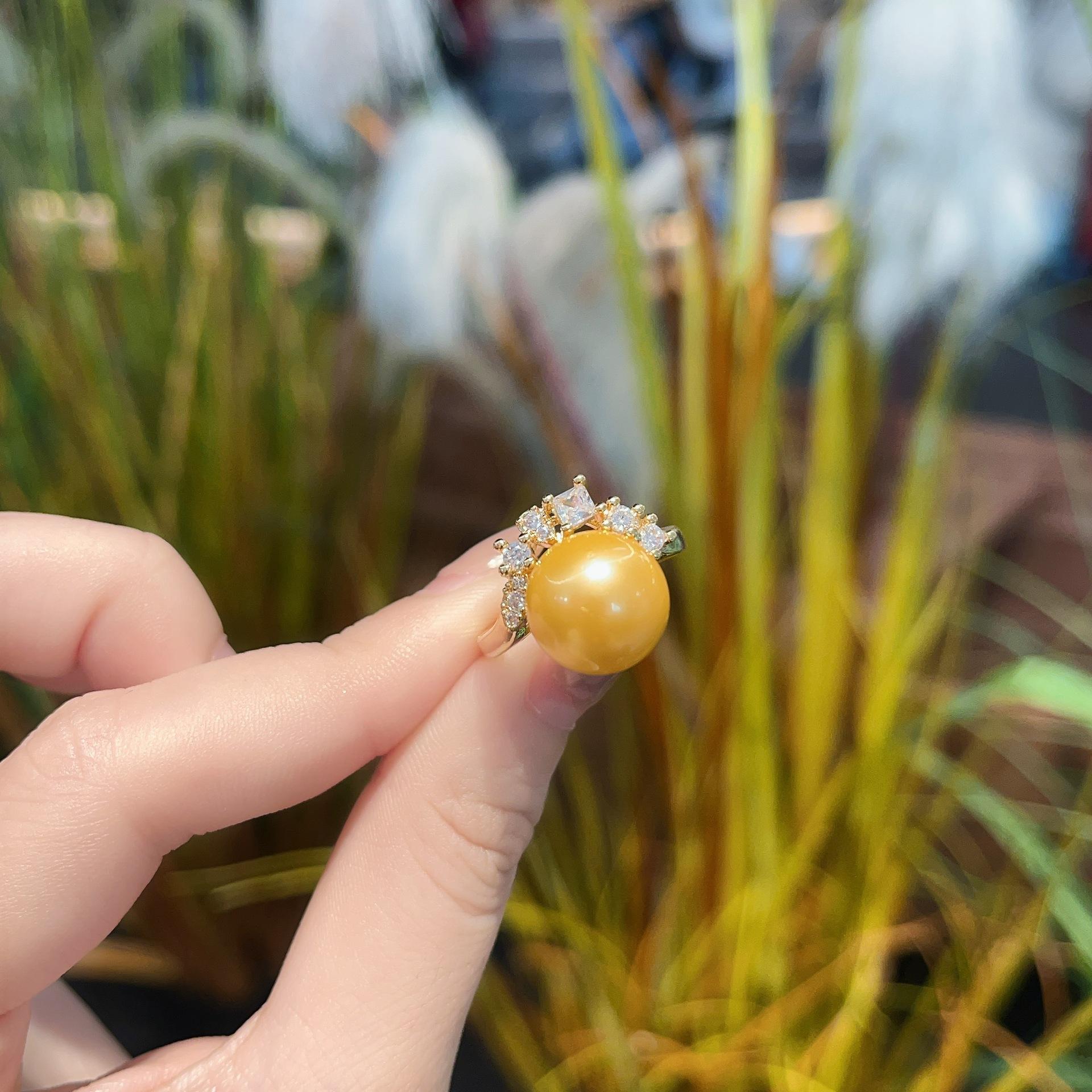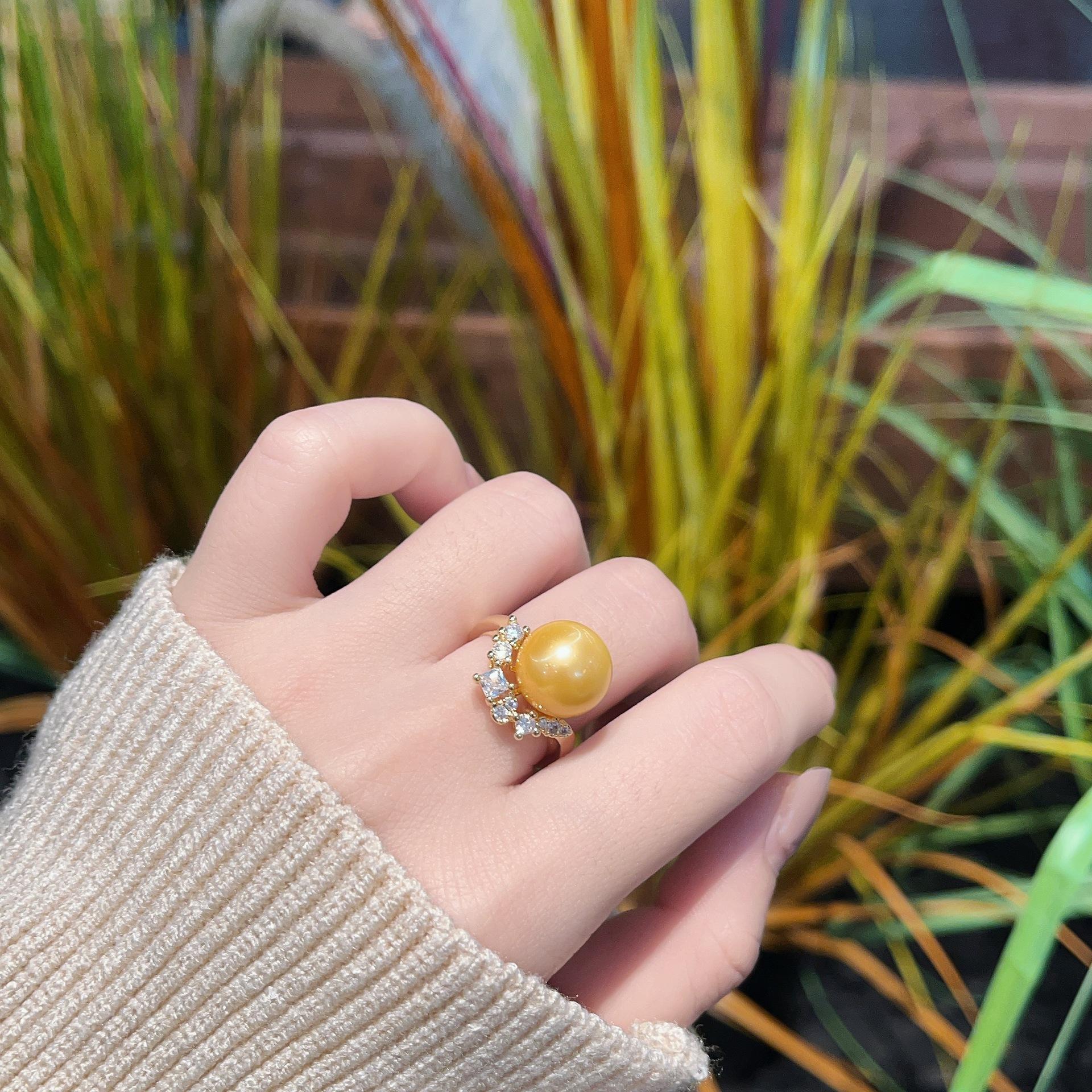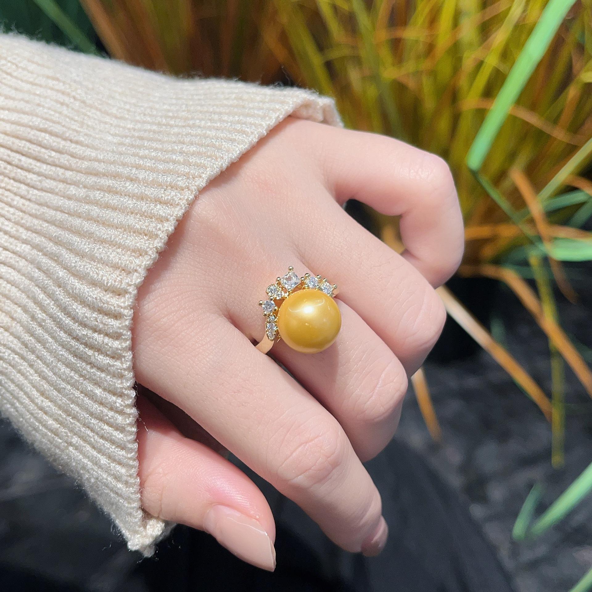 2025 Nuevo Anillo de Perla de Concha de Diamante de Alto Carbono para Mujer con Zirconia de Diamante Completo Abierto Fresco y Elegante Anillo Versátil Joyería