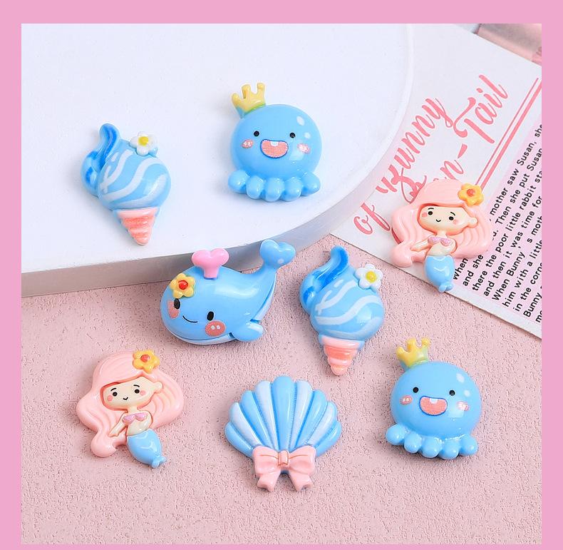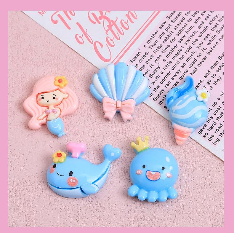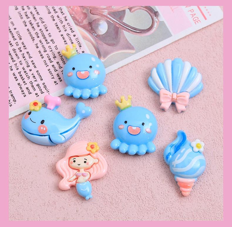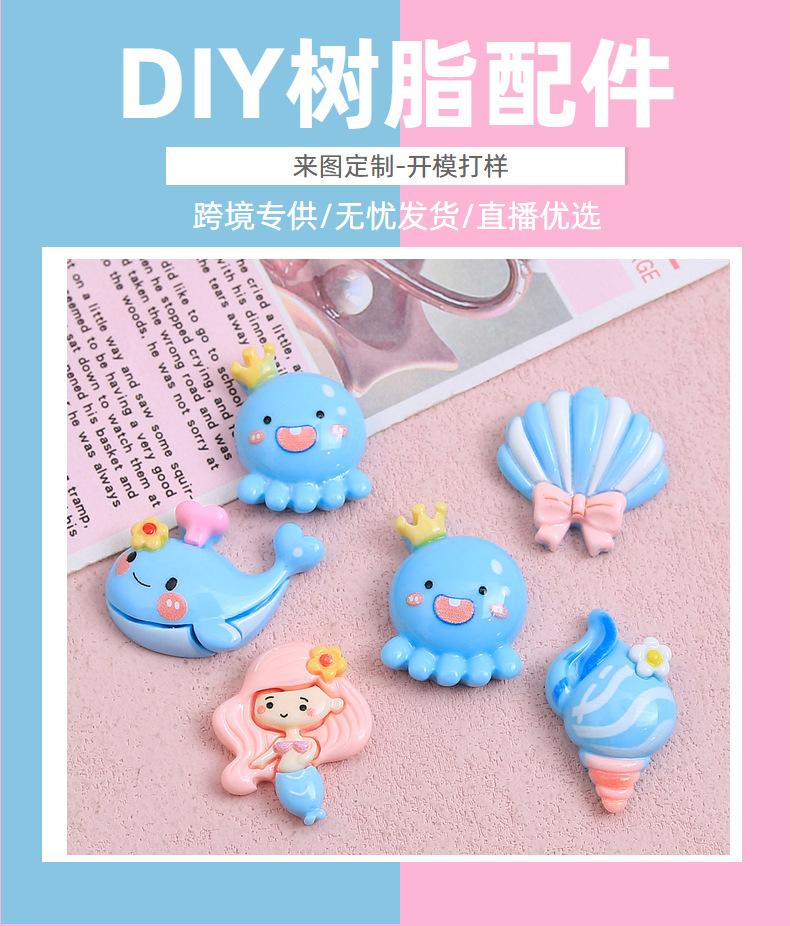 Serie Océano Azul de Dibujos Animados Creativo Hecho a Mano DIY Pegamento de Crema Accesorios de Resina Pequeños Accesorios Materiales para Joyería Venta al por Mayor