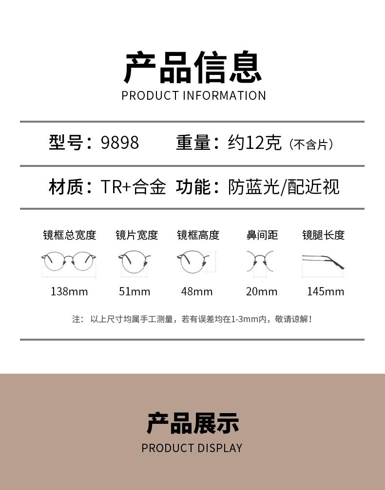 Las gafas ultraligeras para miopía de mujer se pueden combinar con la cantidad de monturas negras lisas, monturas de ojos pequeños, gafas planas ligeras en línea 51