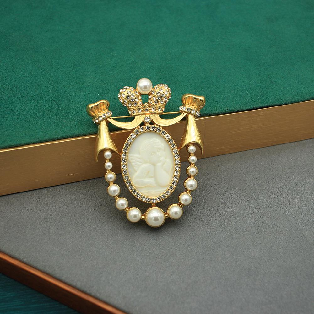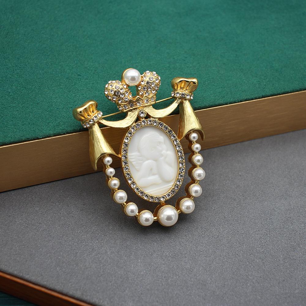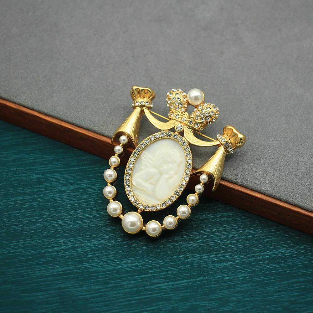 Broche Vintage Tallado Concha Ángel Estilo Palacio Europeo y Americano Florencia en stock Venta al por Mayor Pin de Alta Gama Jane