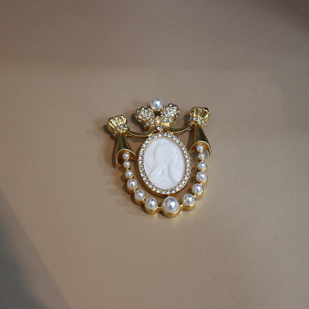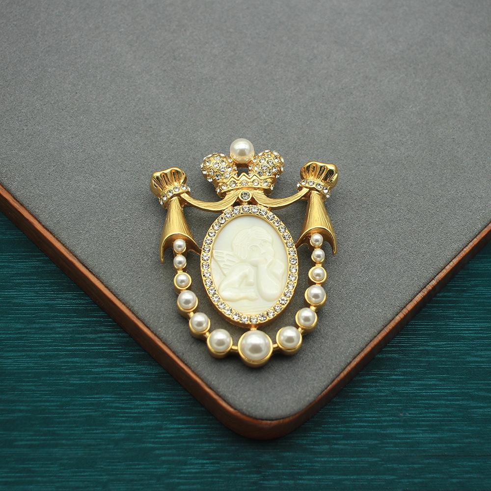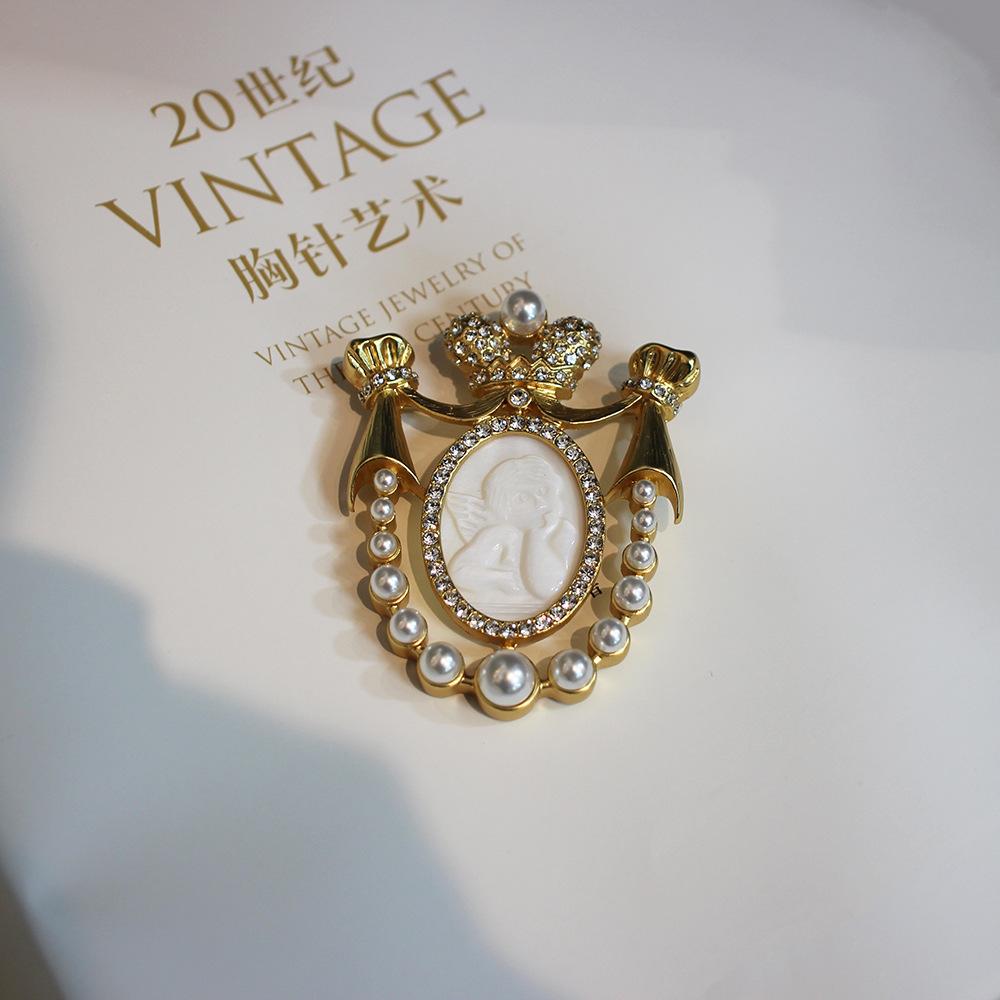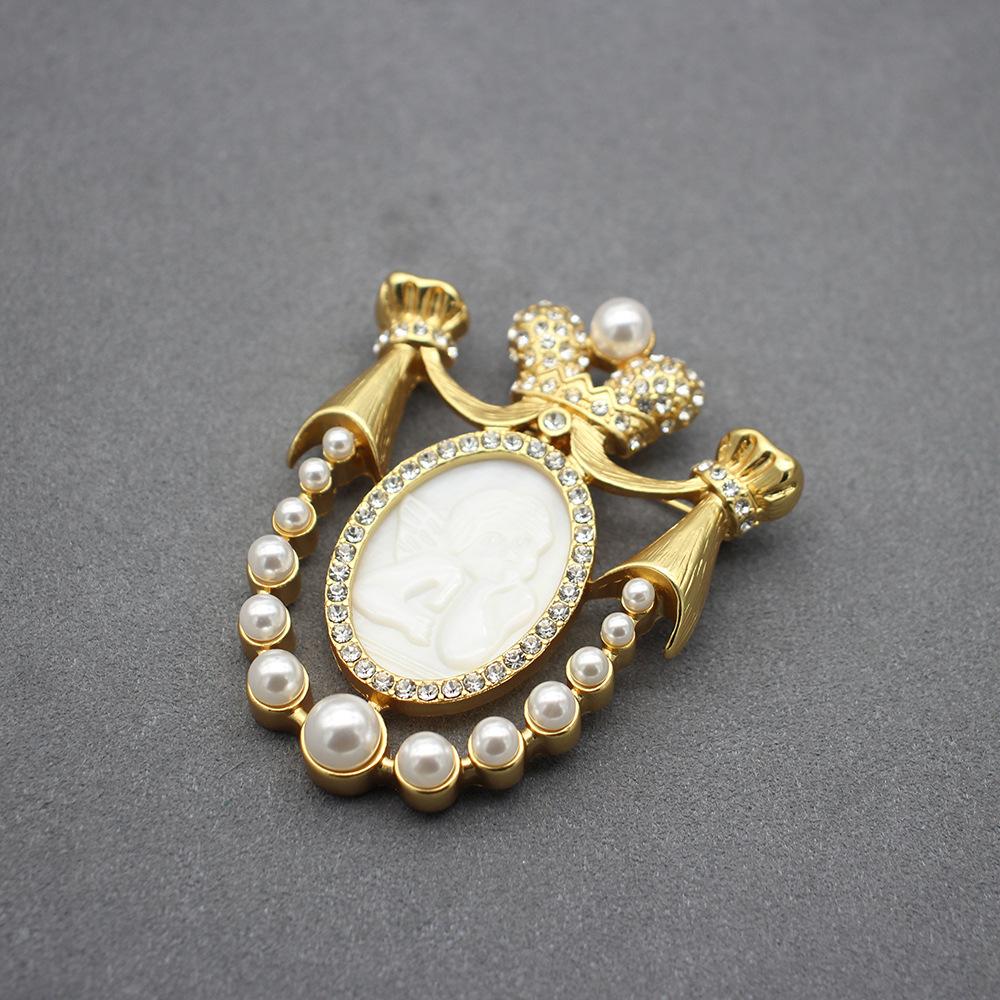 Broche Vintage Tallado Concha Ángel Estilo Palacio Europeo y Americano Florencia en stock Venta al por Mayor Pin de Alta Gama Jane