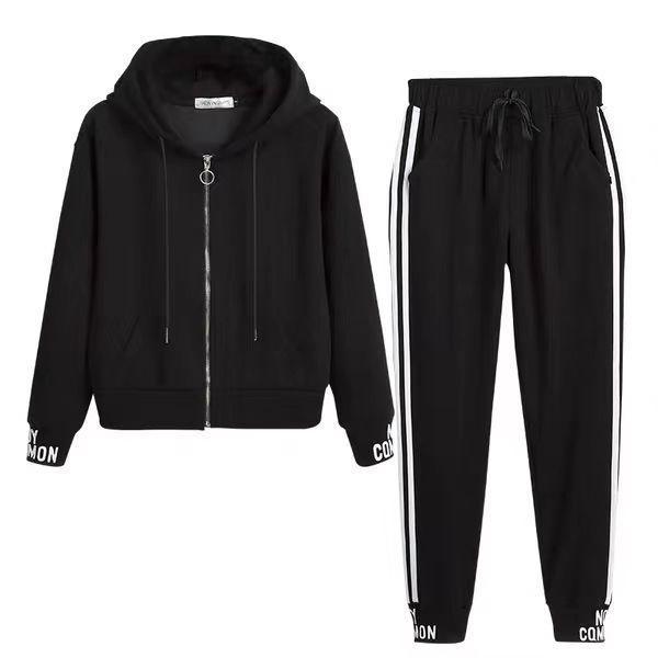 Traje Deportivo Moda Mujer Suelto Talla Grande 2025 Primavera y Otoño Nuevo Delgado Casual Sudadera de Manga Larga con Capucha Conjunto de Dos Piezas