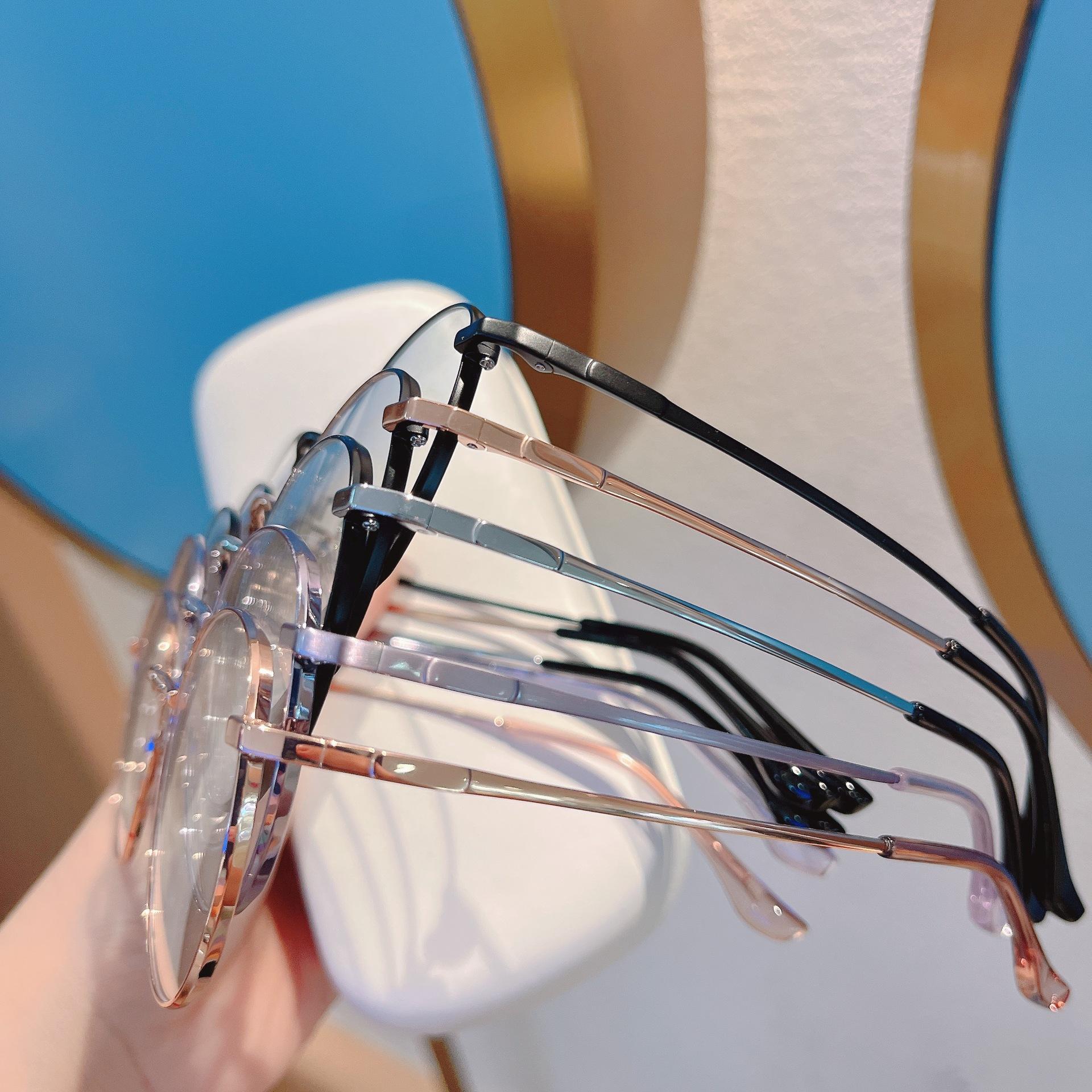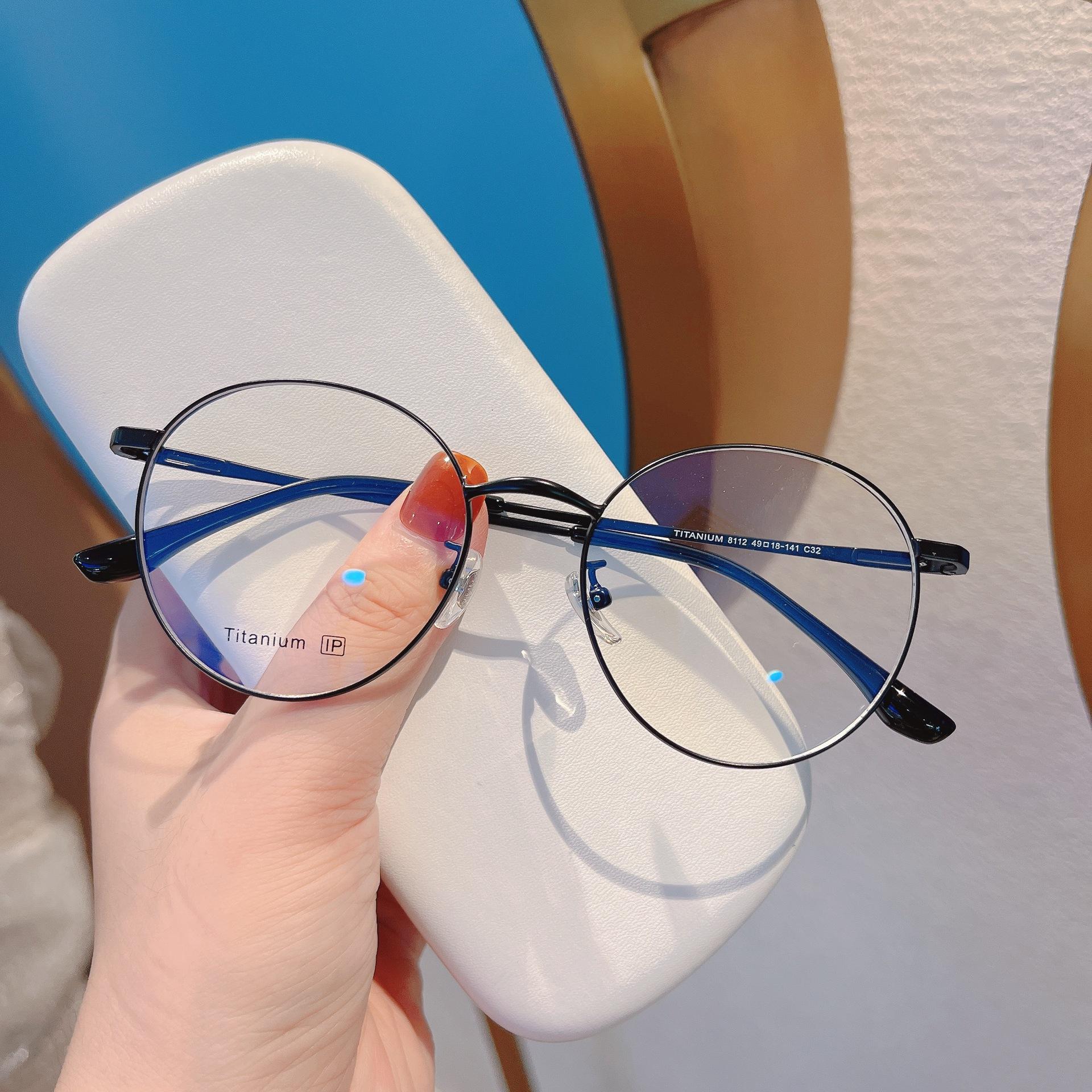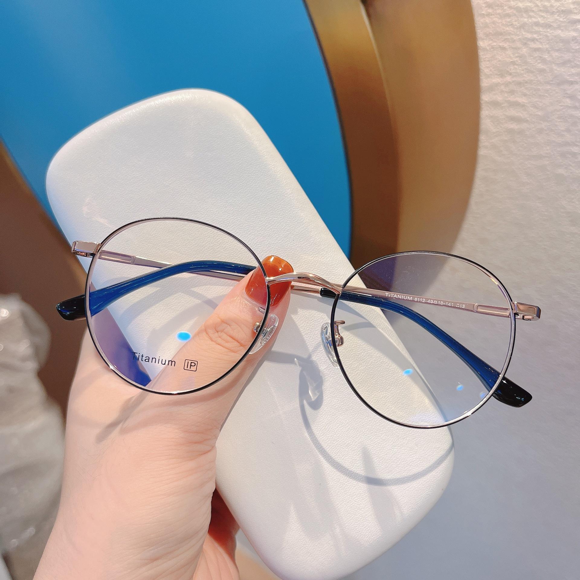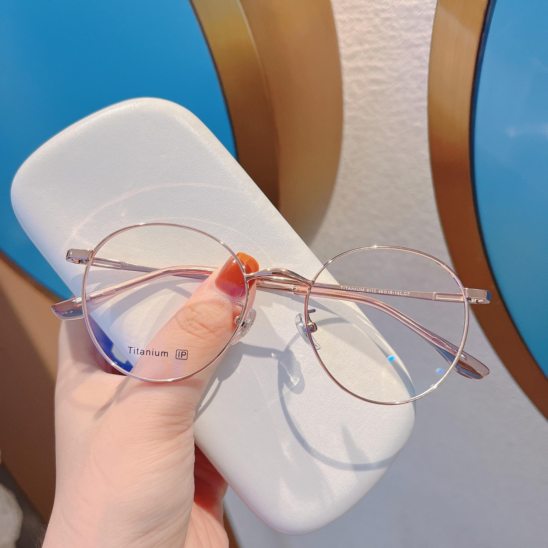Ultraligero semi-titanio moda libro rojo pequeño explosiones 49 hombres y mujeres pequeños sin montura de maquillaje redondo con miopía gafas Danyang 8112