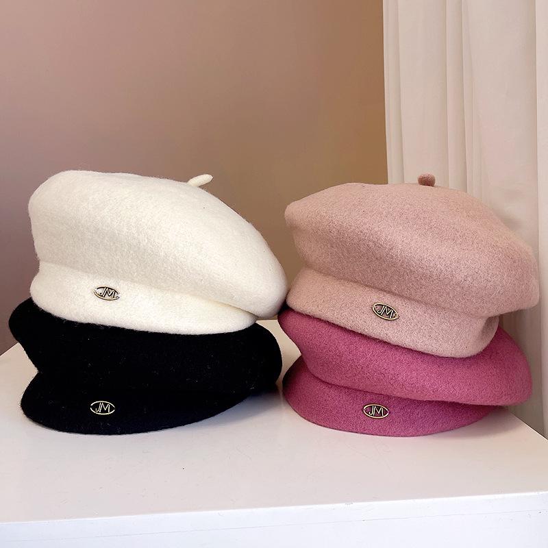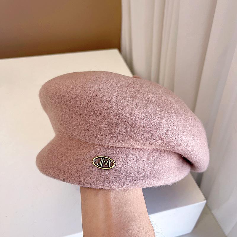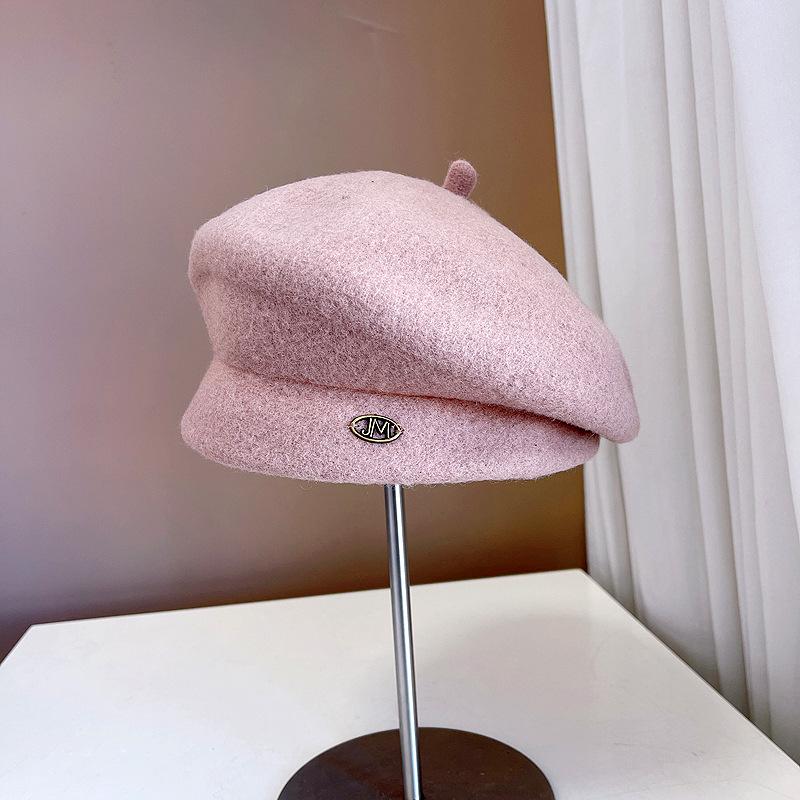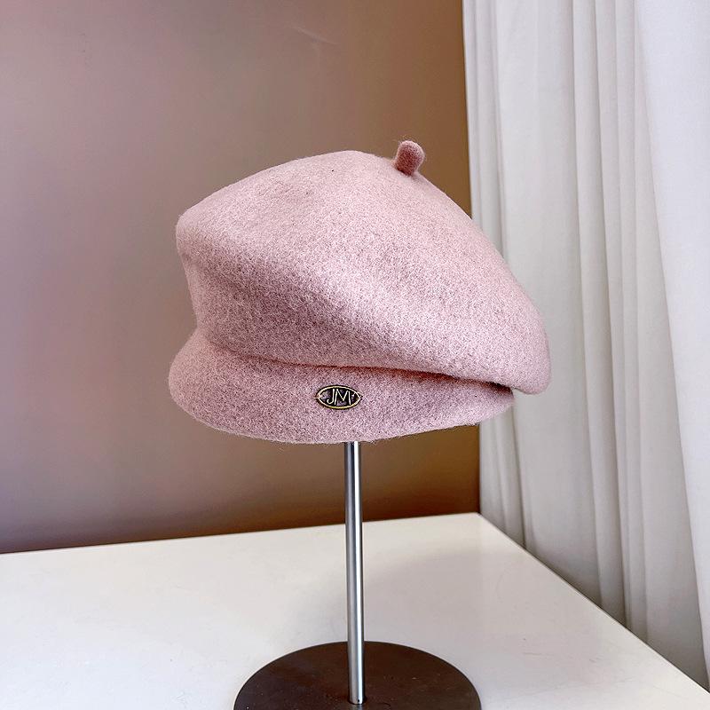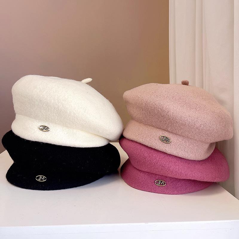 Boina de lana retro artística de estilo japonés para otoño e invierno, para mujer, de color liso, combinable, cálida, estilo pintor, elegante y a la moda, con forma de calabaza.