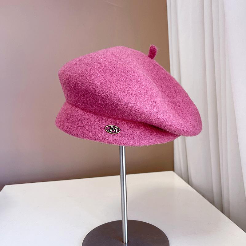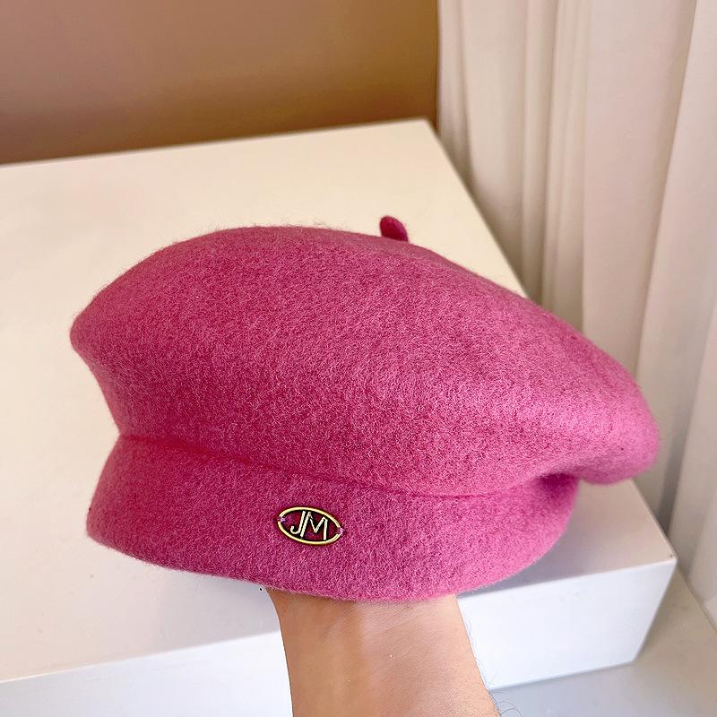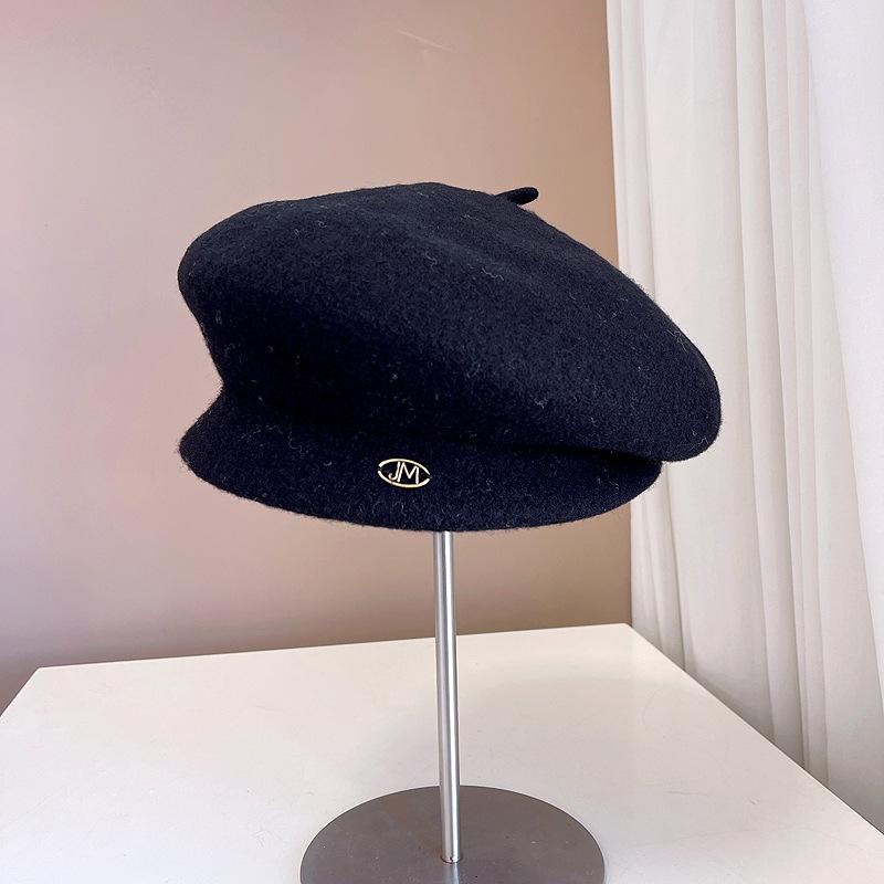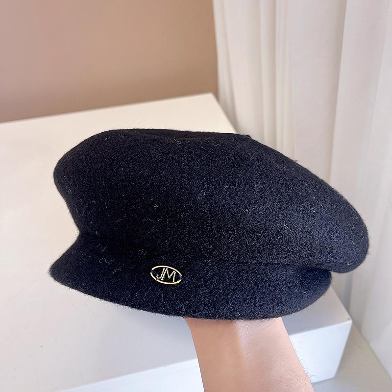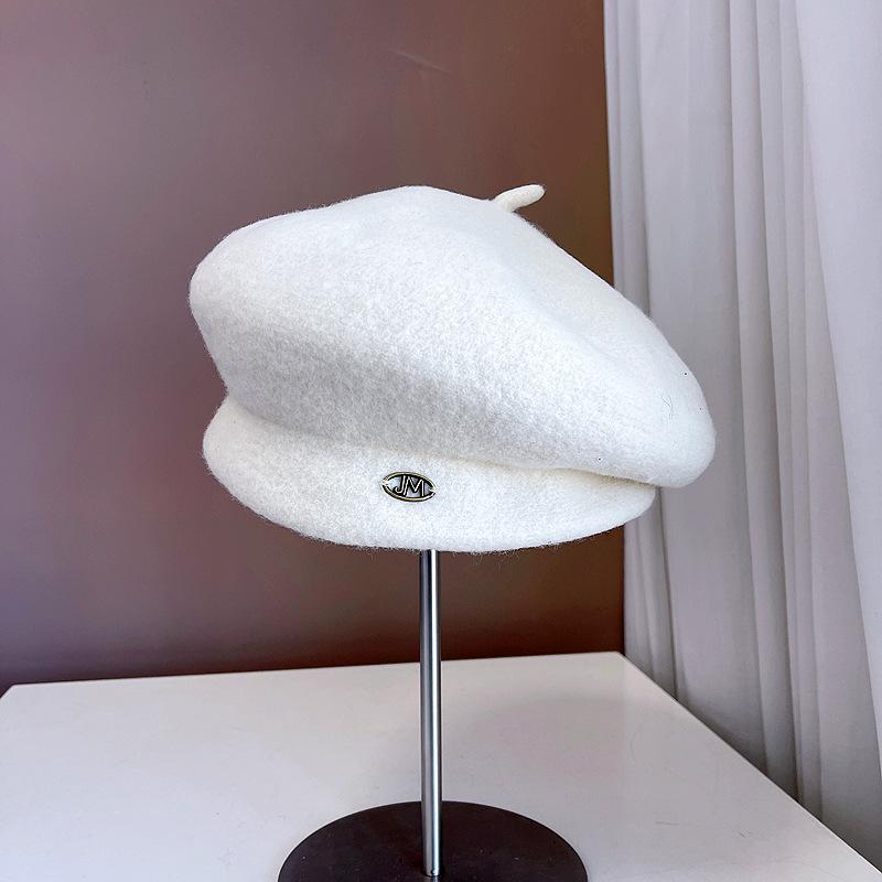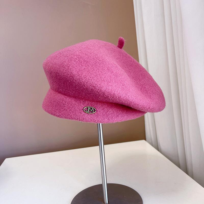Boina de lana retro artística de estilo japonés para otoño e invierno, para mujer, de color liso, combinable, cálida, estilo pintor, elegante y a la moda, con forma de calabaza.