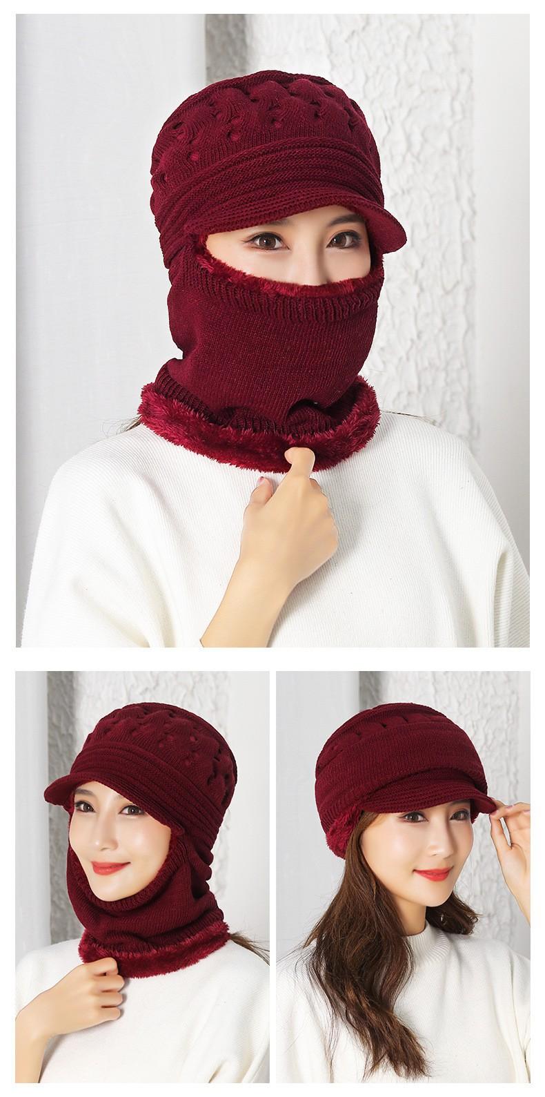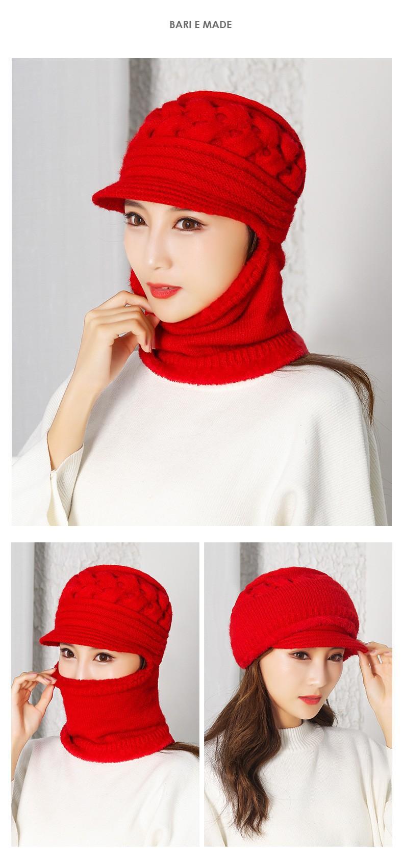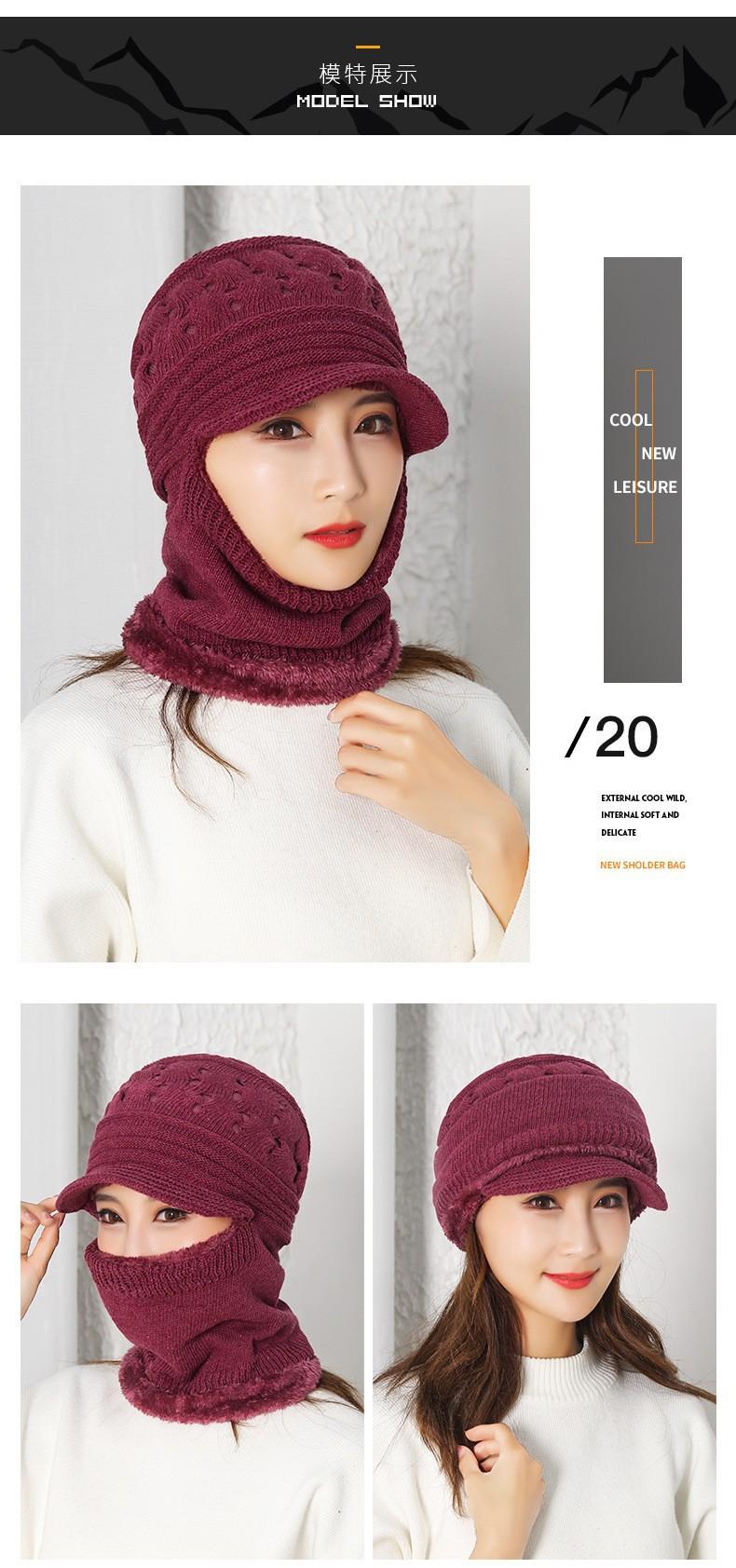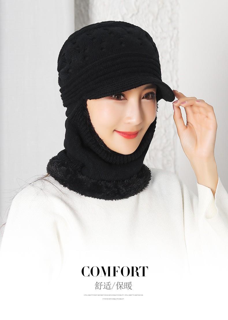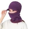 Gorro de punto cálido de terciopelo de invierno para mujer, resistente al frío, con protección para las orejas y el cuello, de lana integrada, gorro de montar para madres en invierno.