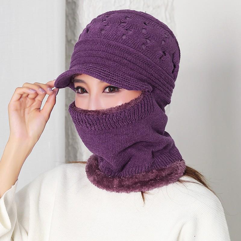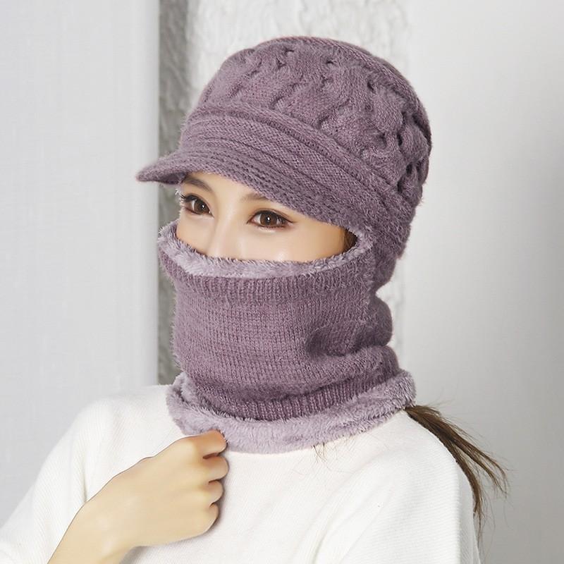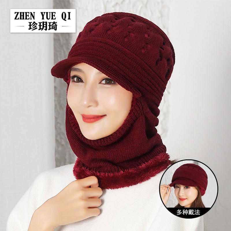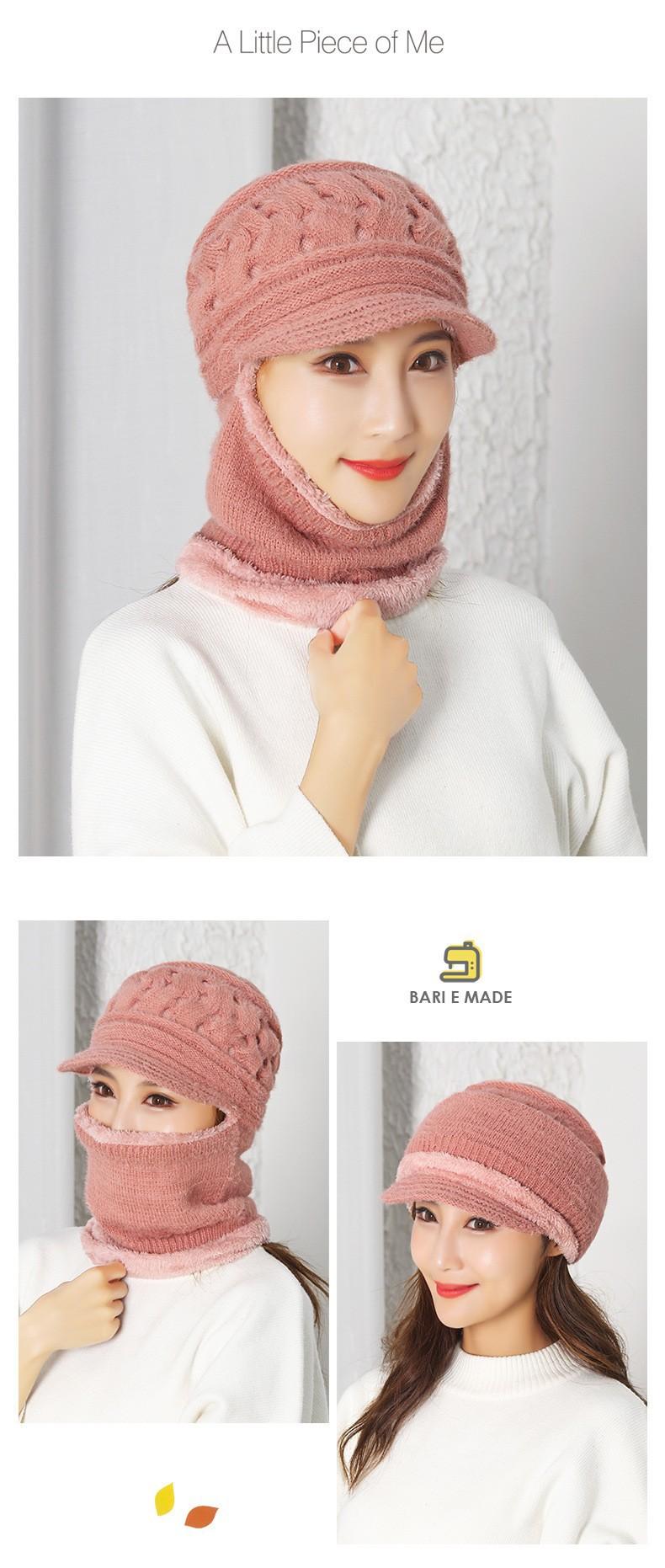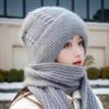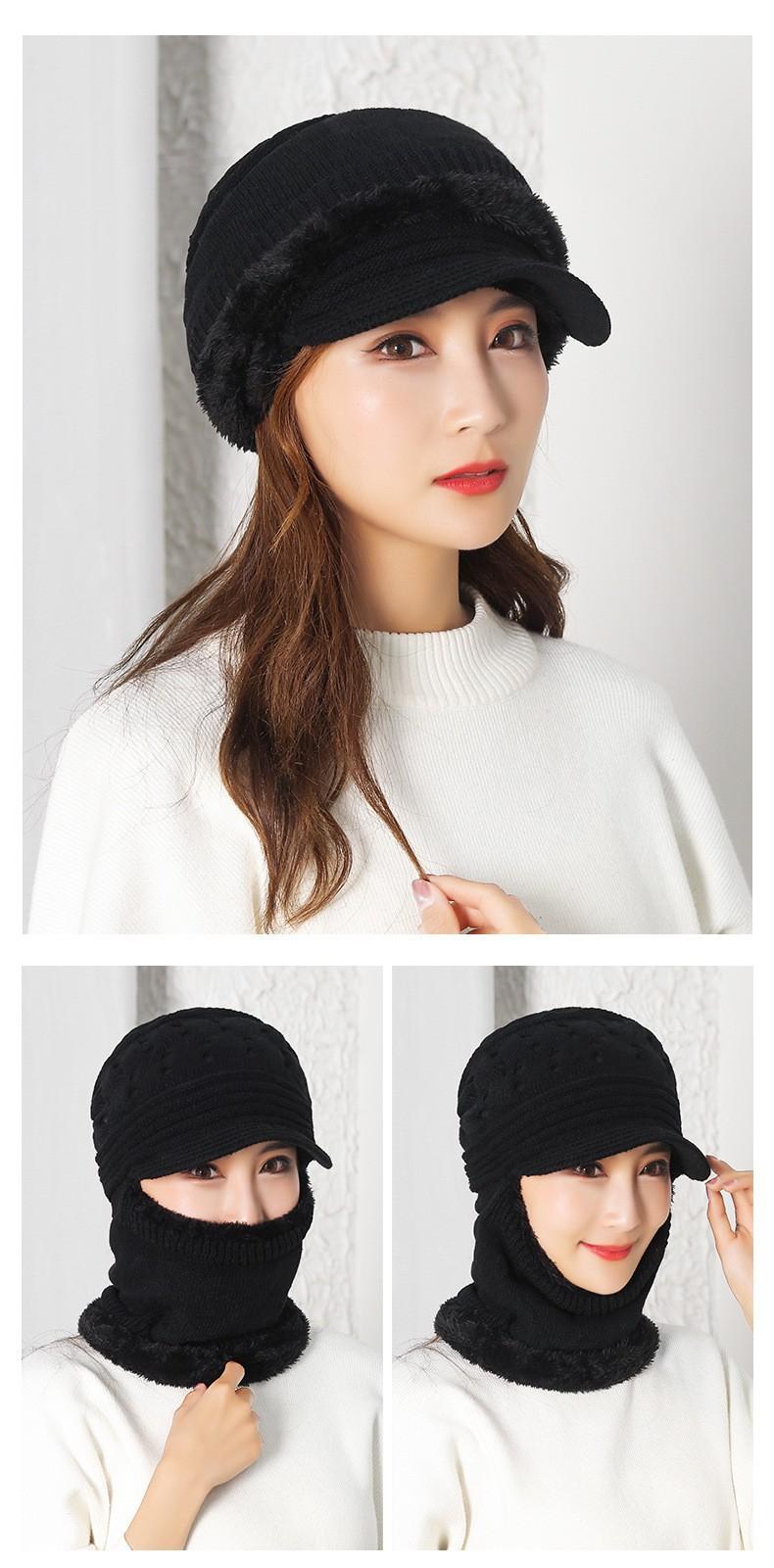 Gorro de punto cálido de terciopelo de invierno para mujer, resistente al frío, con protección para las orejas y el cuello, de lana integrada, gorro de montar para madres en invierno.