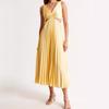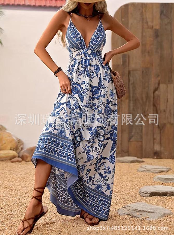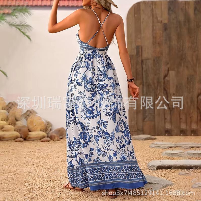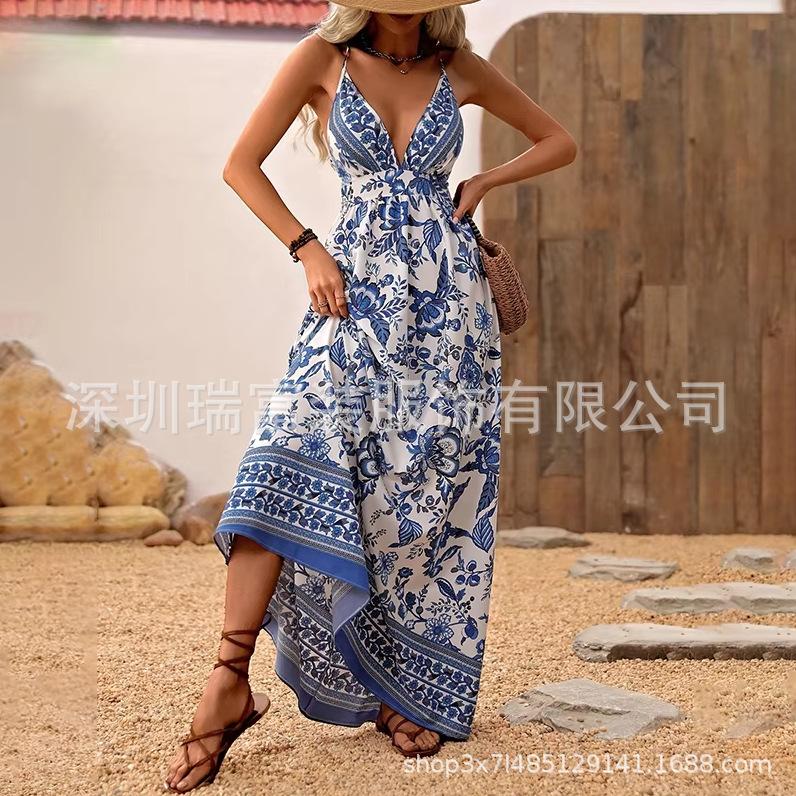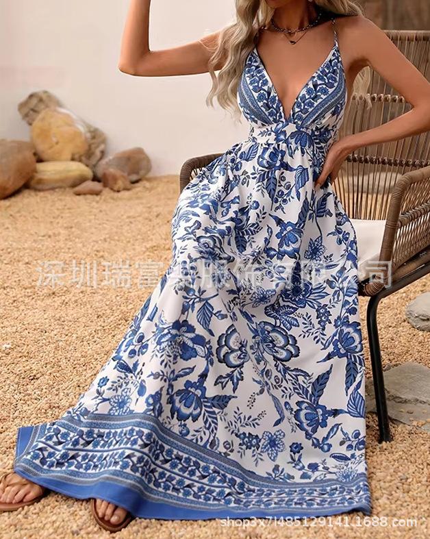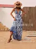 Vestido azul elegante de verano 2025, sin mangas, con escote en V profundo y espalda descubierta, estilo retro, de cintura media