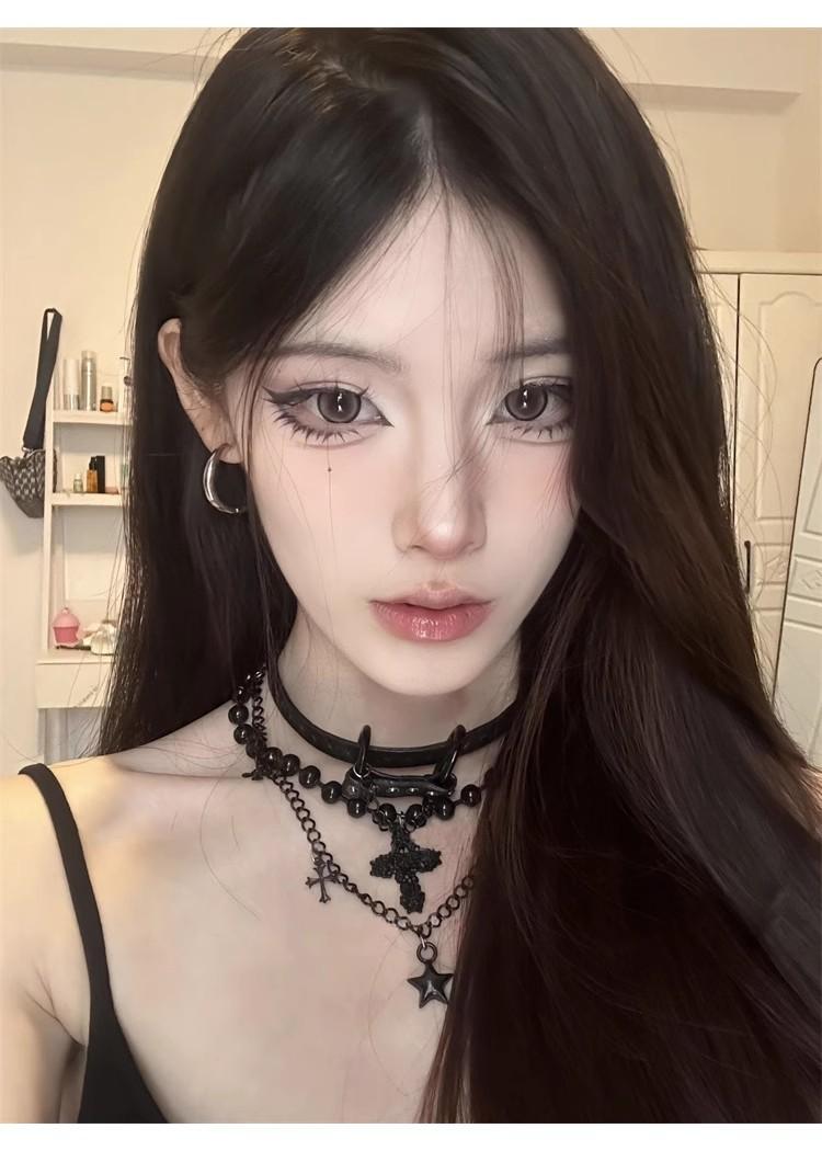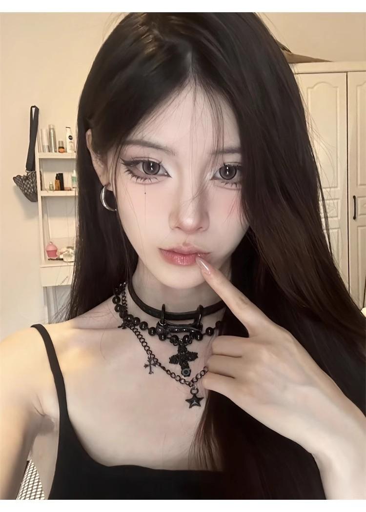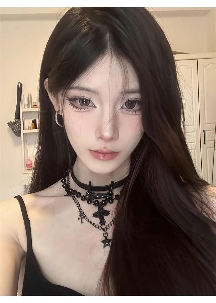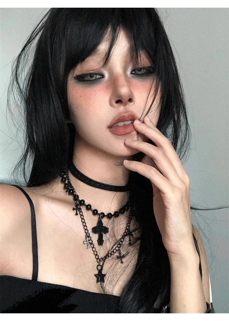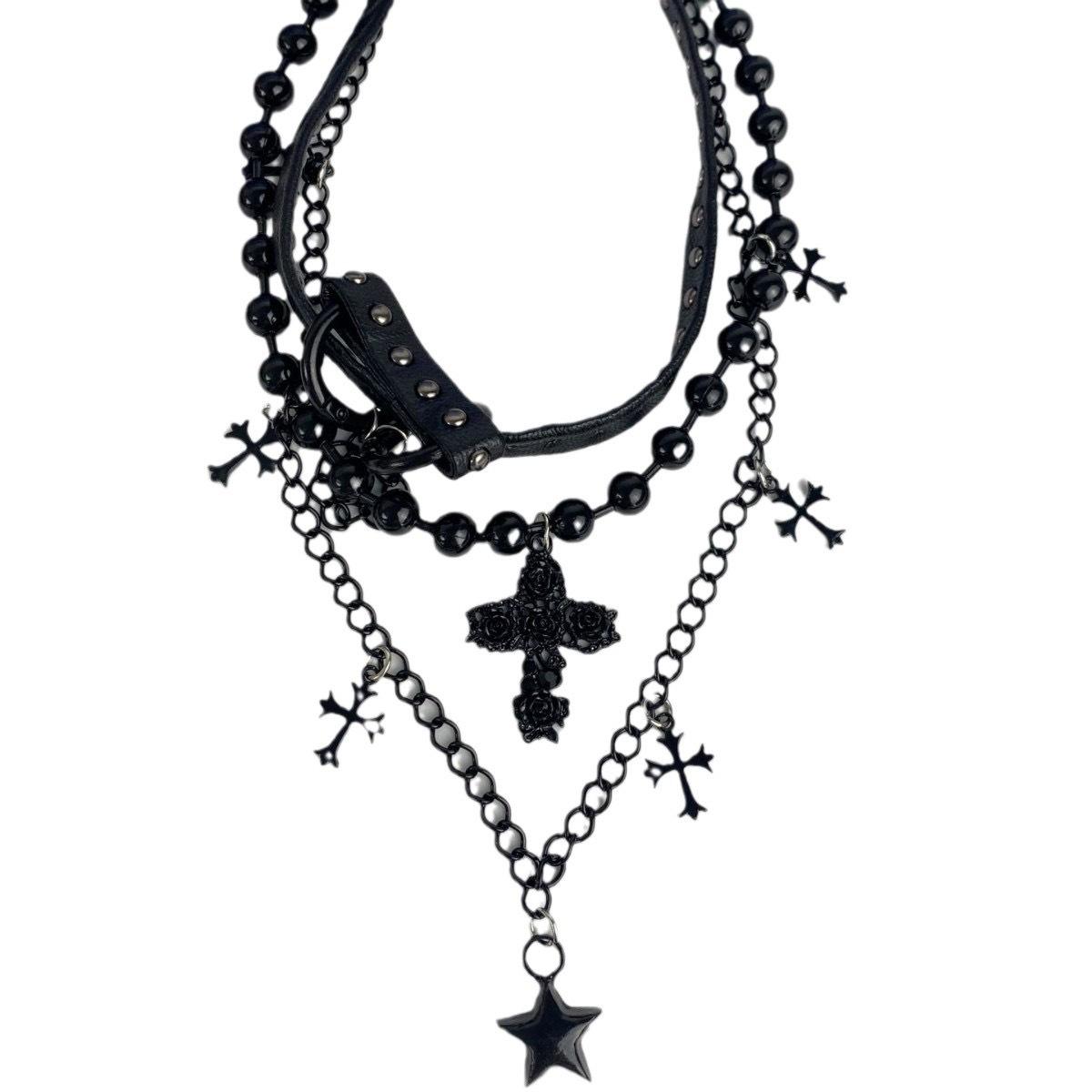 Collar de múltiples capas con cruz estilo gótico, estilo retro punk, con cuentas y cadena de clavícula.