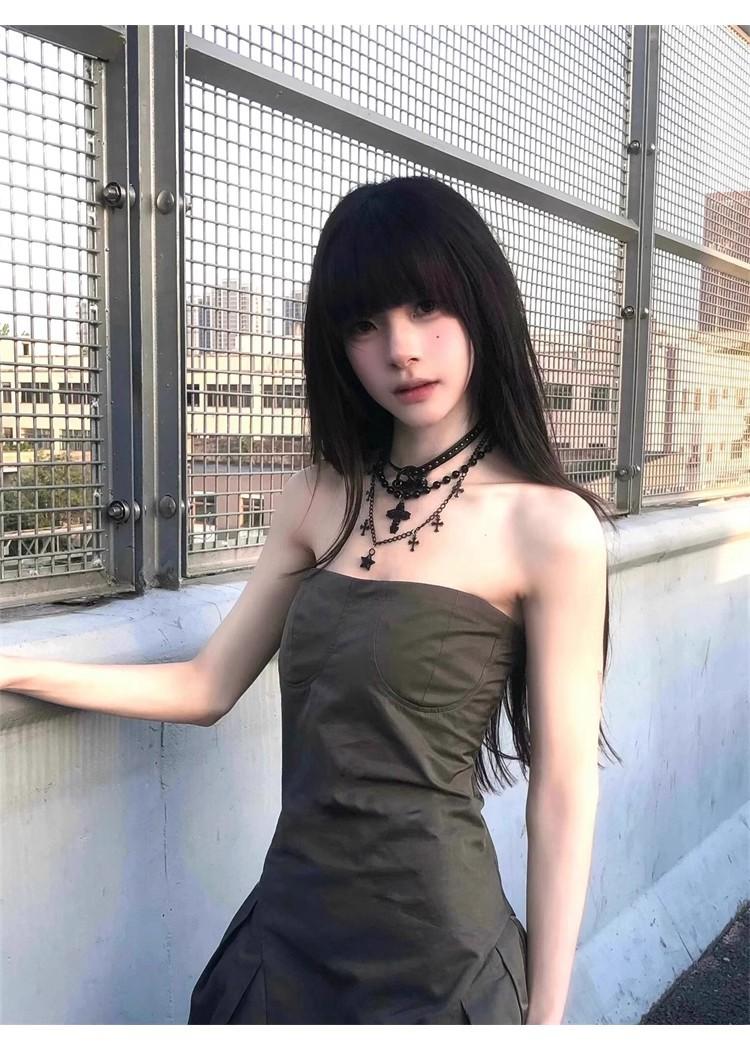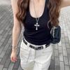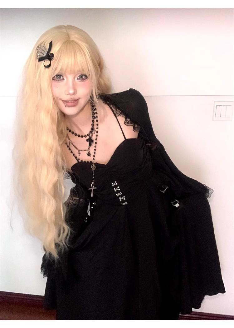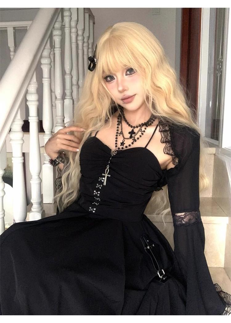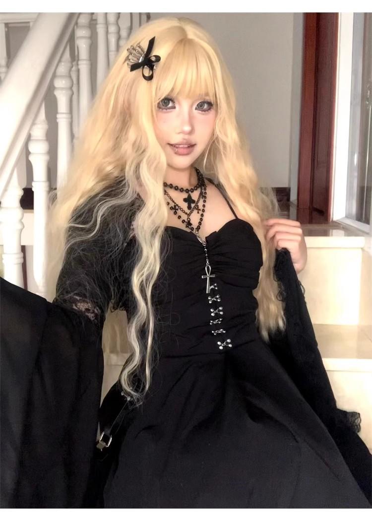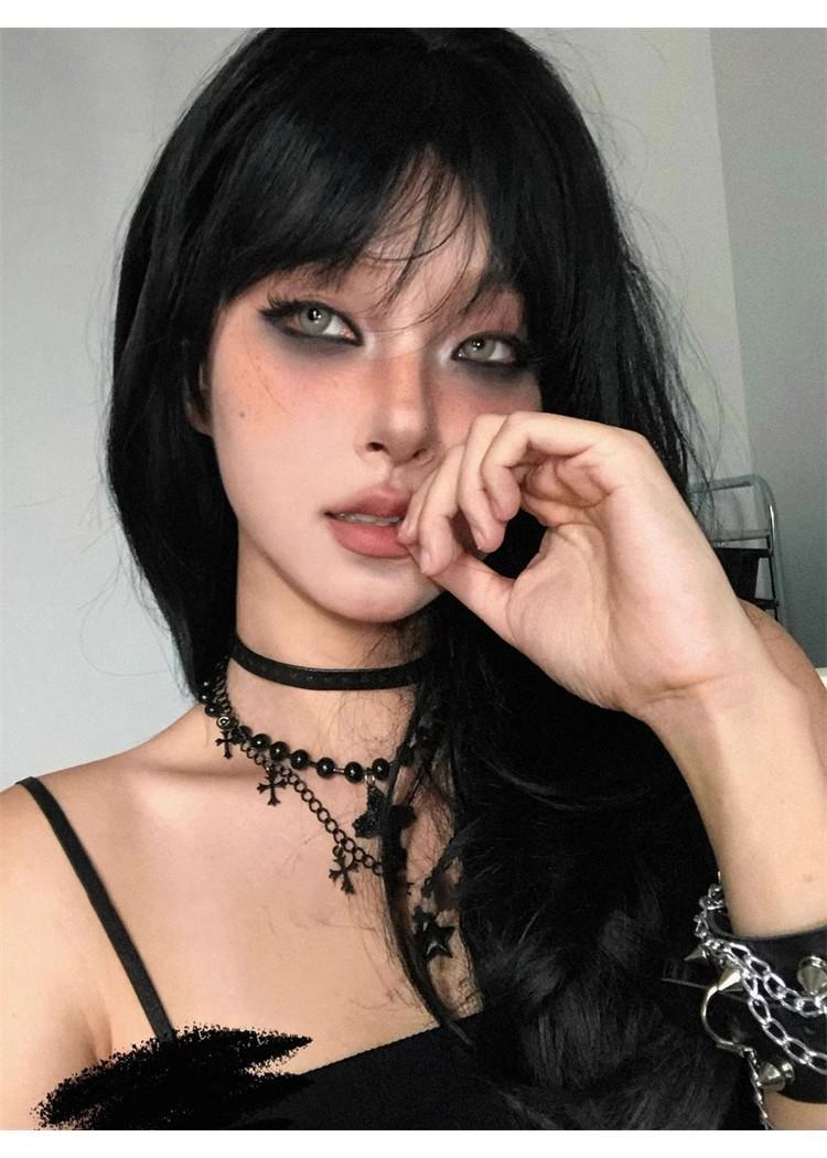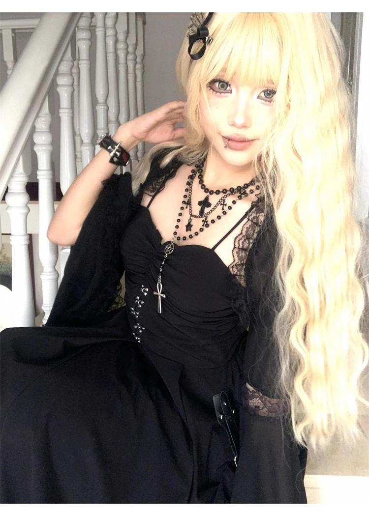 Collar de múltiples capas con cruz estilo gótico, estilo retro punk, con cuentas y cadena de clavícula.