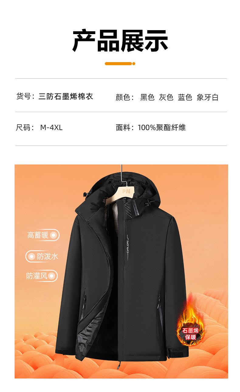 Ropa de Carga de Grafeno Chaquetas Acolchadas de Algodón con Capucha Impermeables y Cortavientos para Hombre Forro Polar Engrosado Traje de Montañismo Marca Trendy Ropa de Carga Calentada Algodón